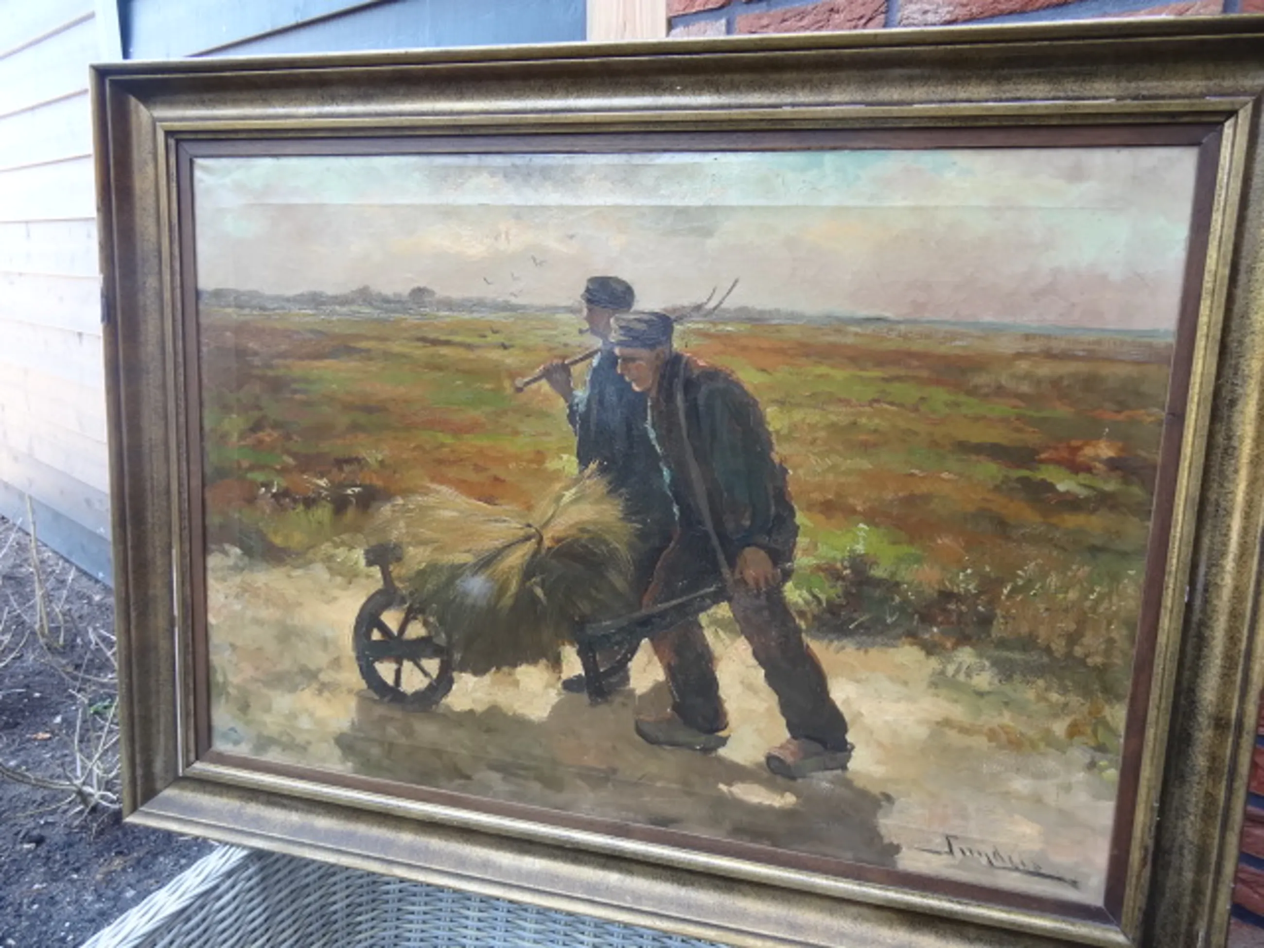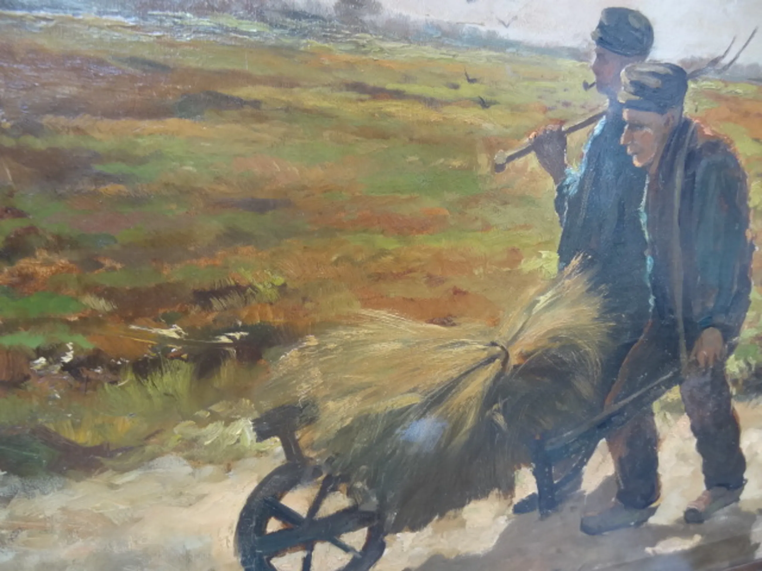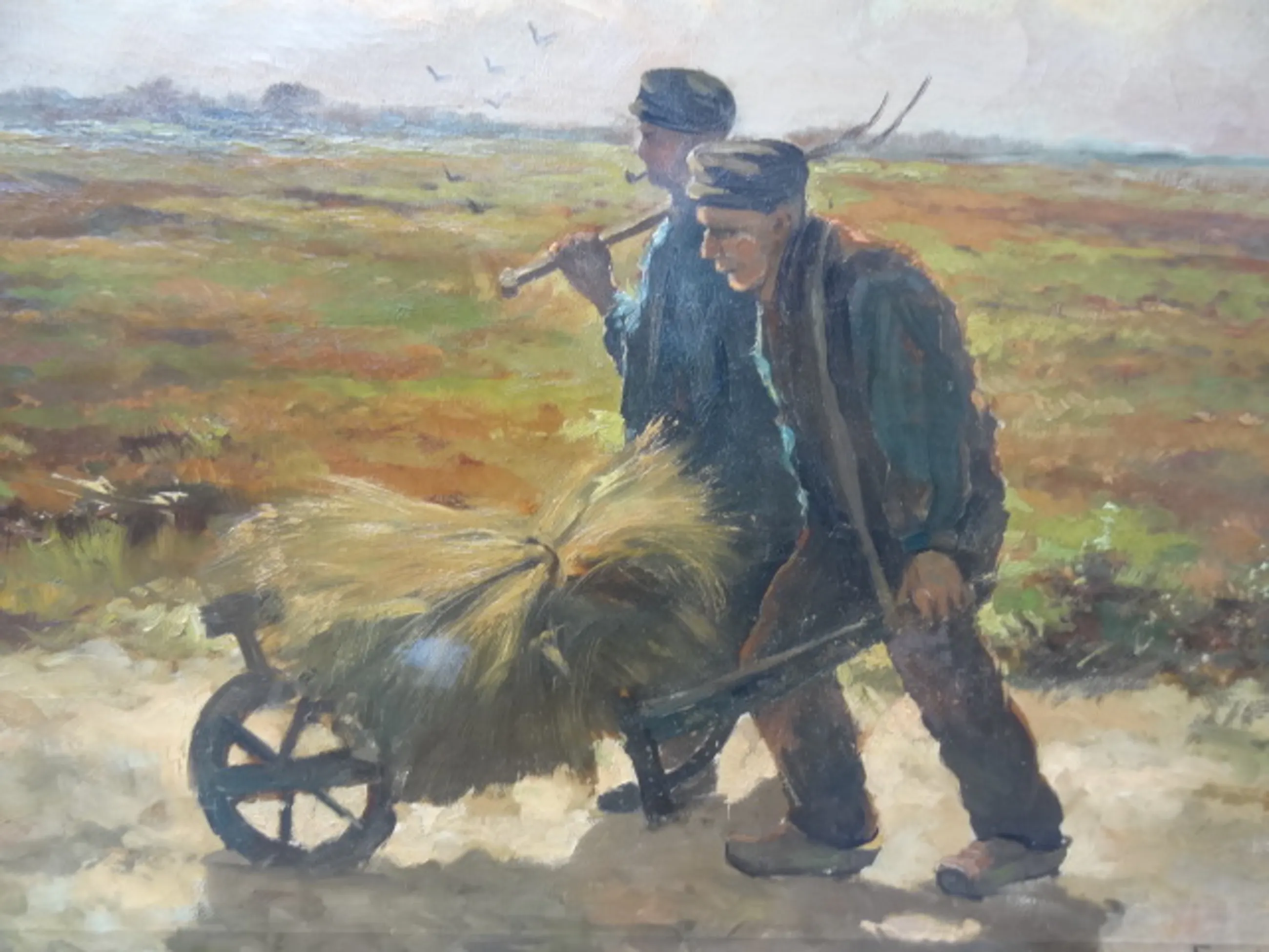Prachtig sfeervol schilderij van twee vermoeide boeren op weg naar huis.