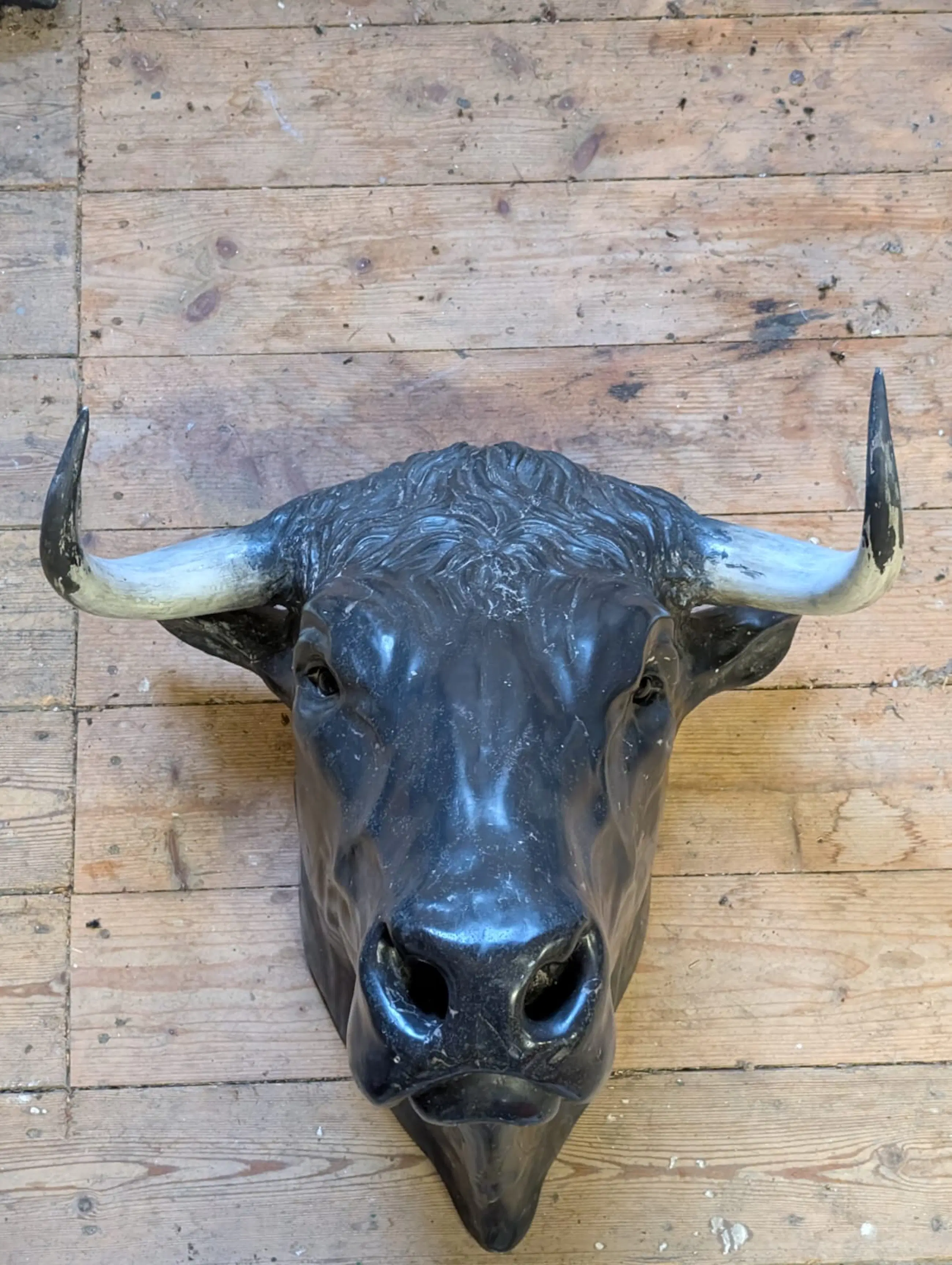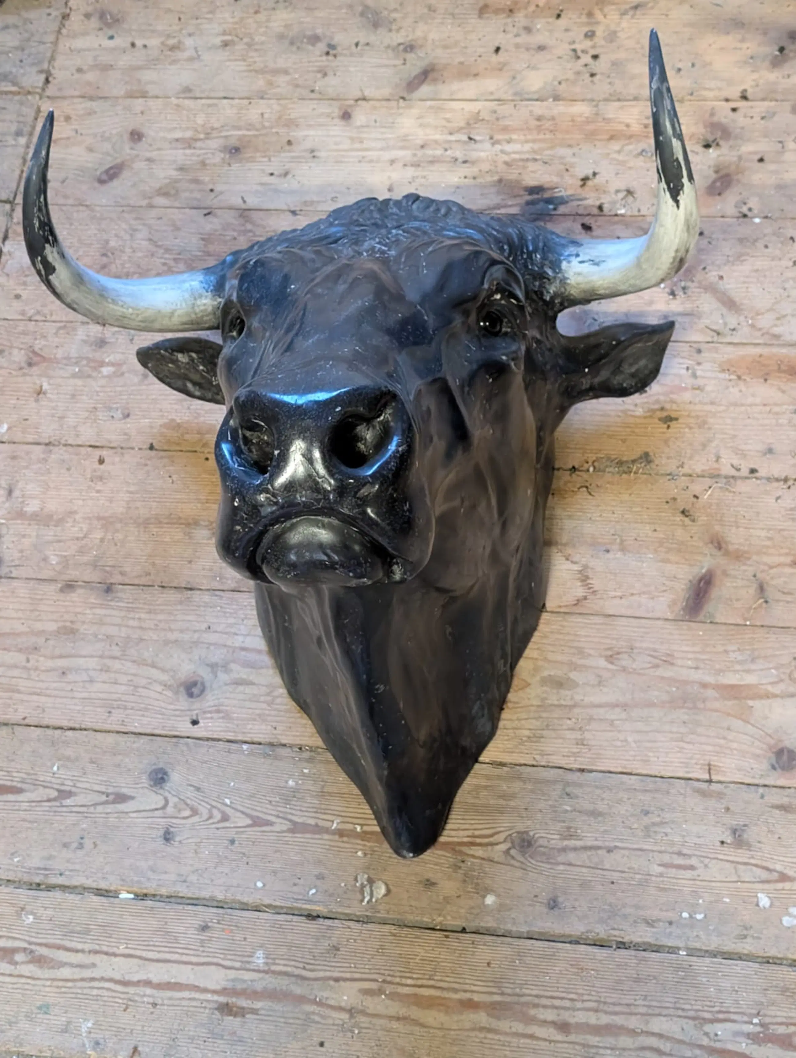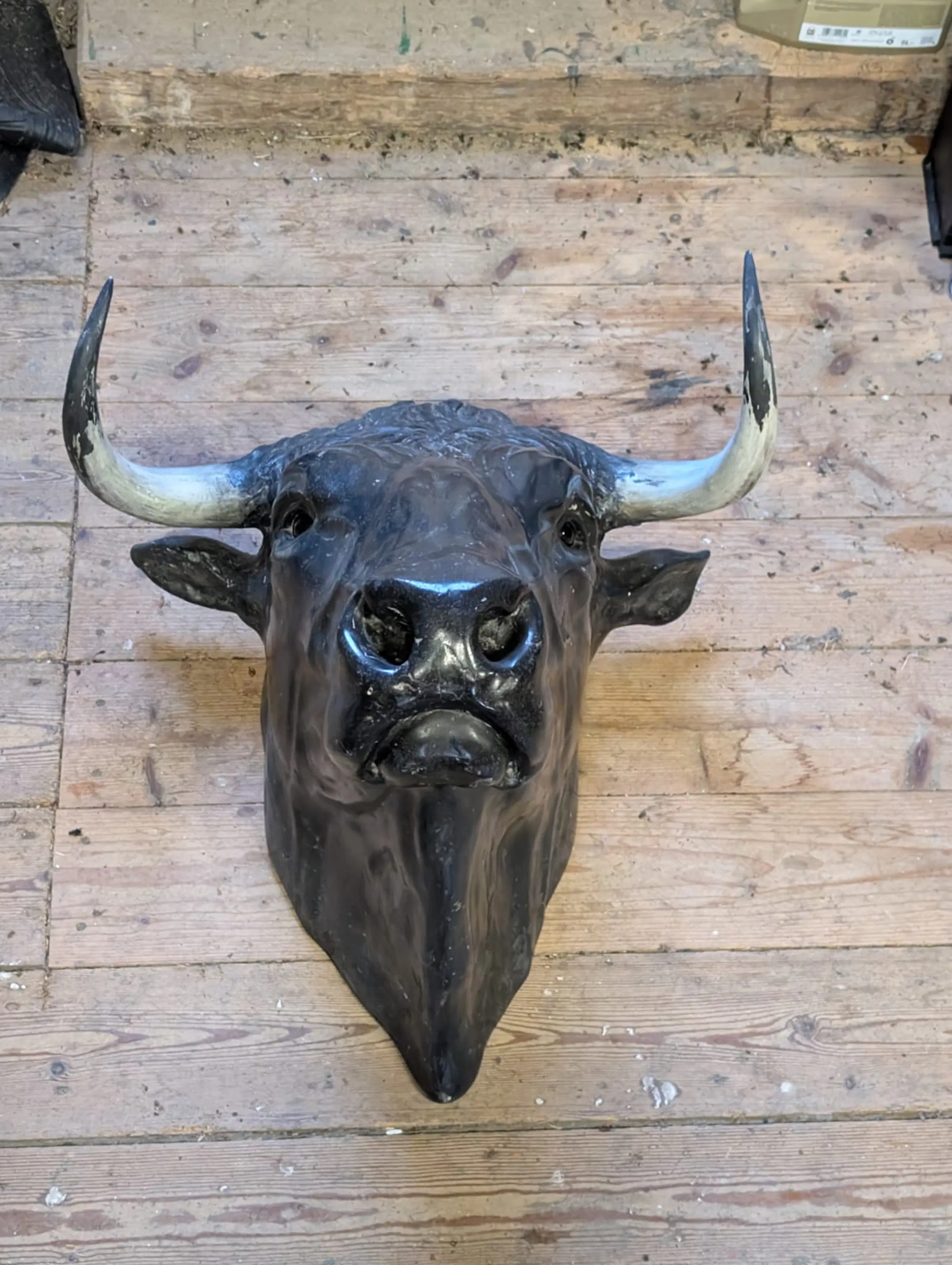 Wegens verhuizing naar kleinere woning en komst van kleine kinderen helaas geen ruimte meer voor. Goed onderhouden en geen schade. Gemaakt van Marmer Composiet. Ogen van Onyx edelsteen. Geleverd met dikke bout om aan de wand te bevestigen. klein stukje van deze bout is afgebroken maar het geheel heeft jarenlang veilig aan de muur gehangen.