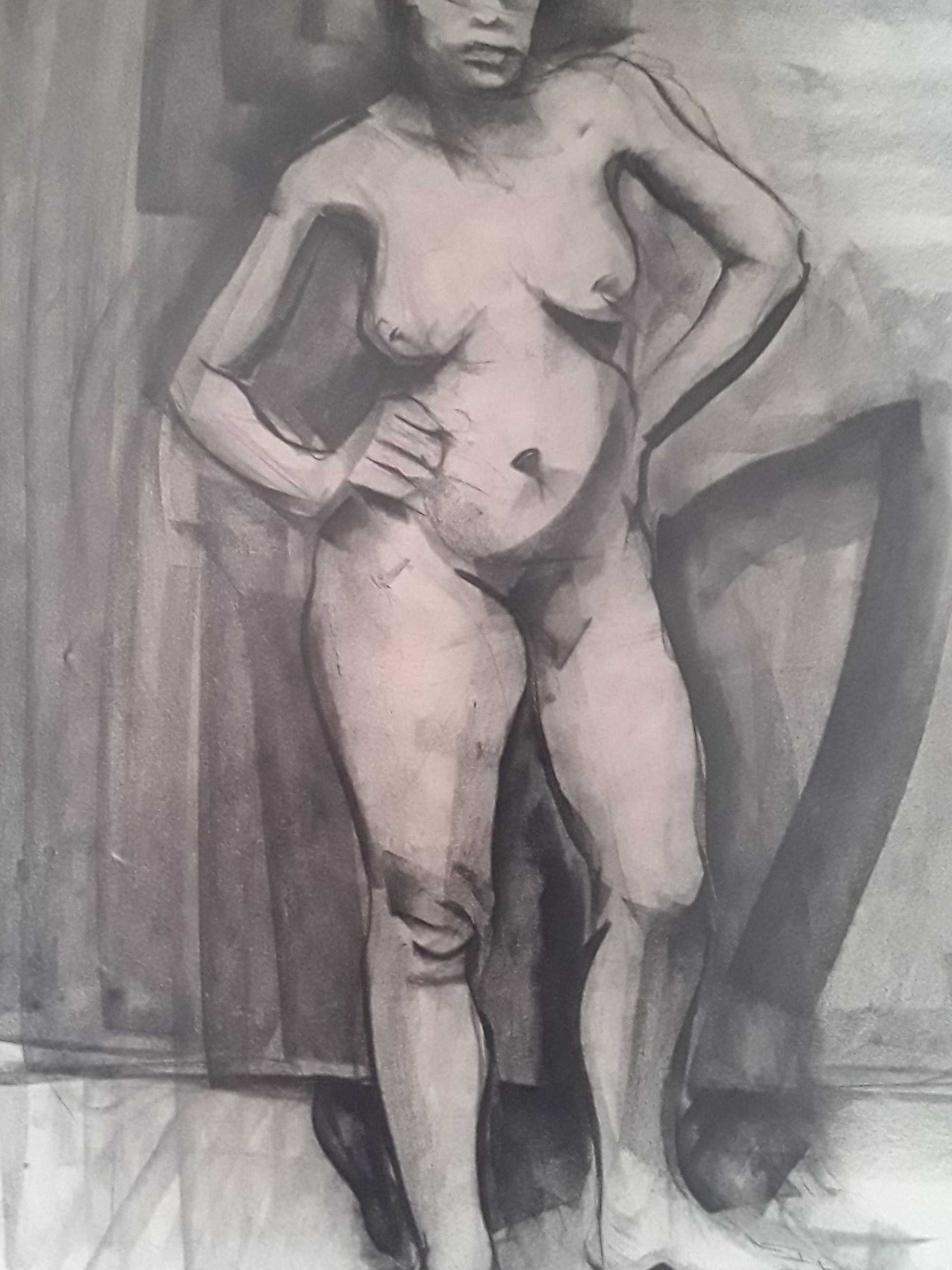 Chris Tonbreeker - Vrouwfiguur 1 krijttekening - Verkocht