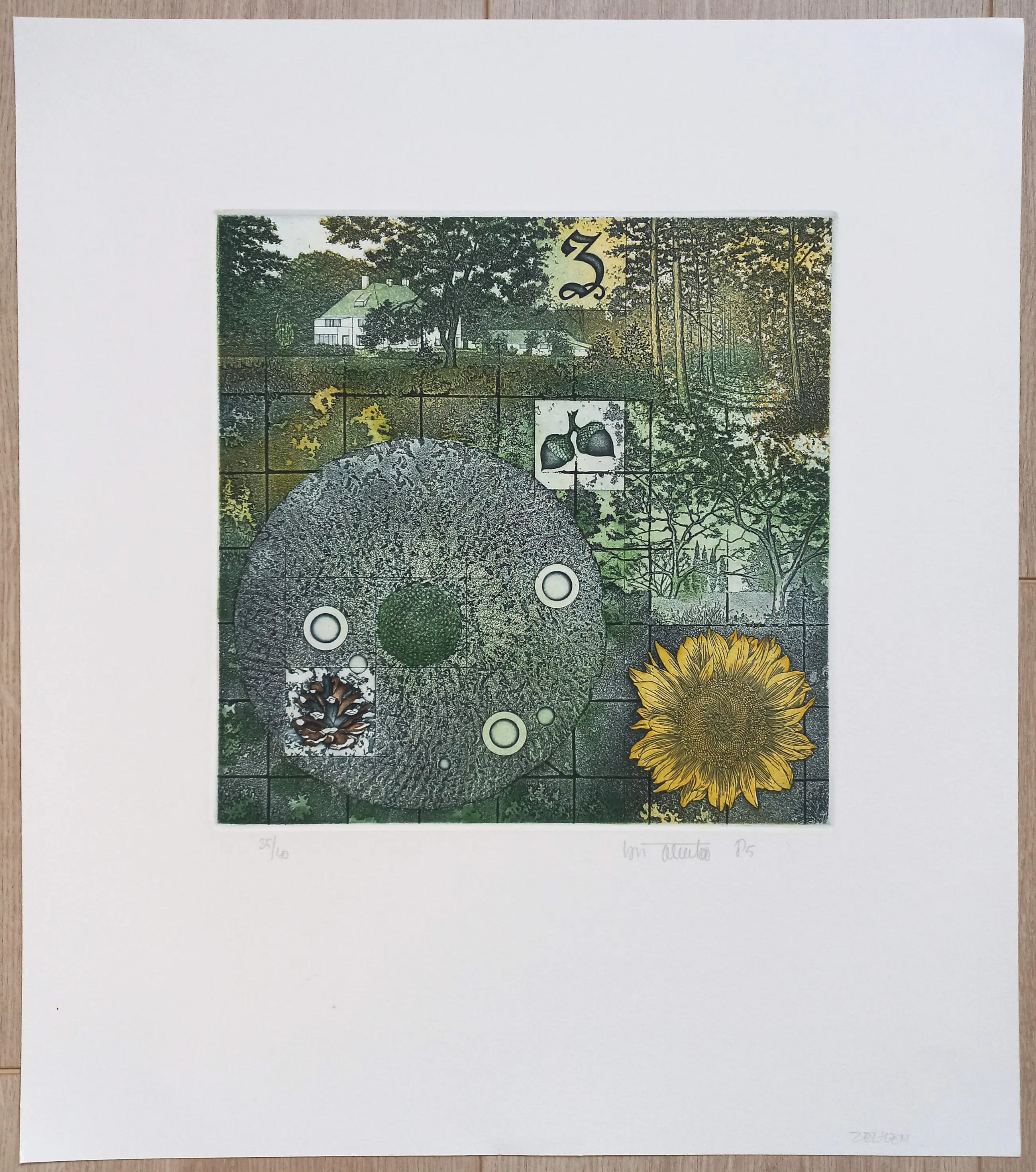 Afmetingen: 44cm x 38cm (blad), 24cm x 24cm (ets)
