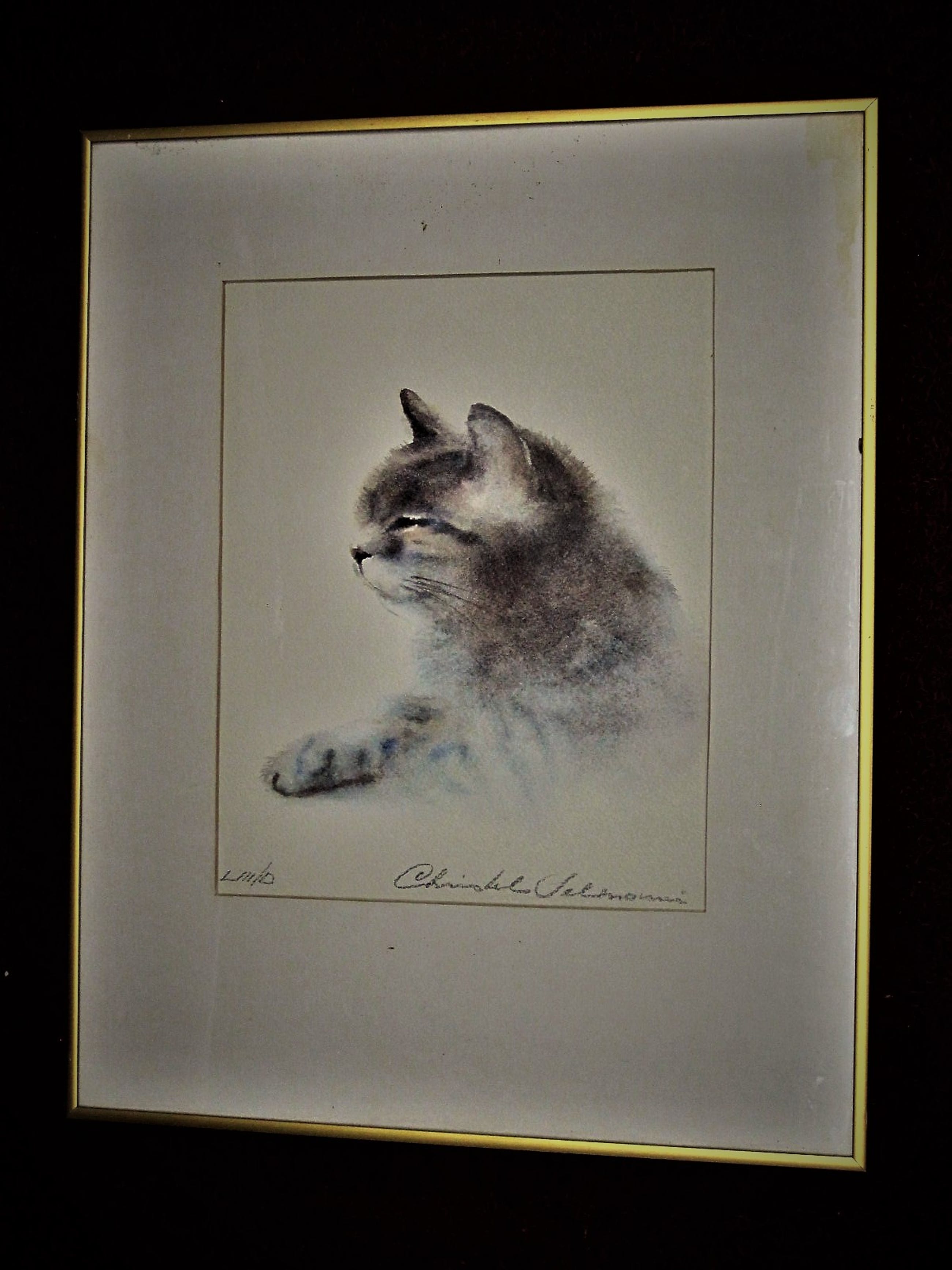 Christel Selmouni - Fraai impressionistisch Pastel(krijt) van een liggende poes - gesigneerd - Verkocht
