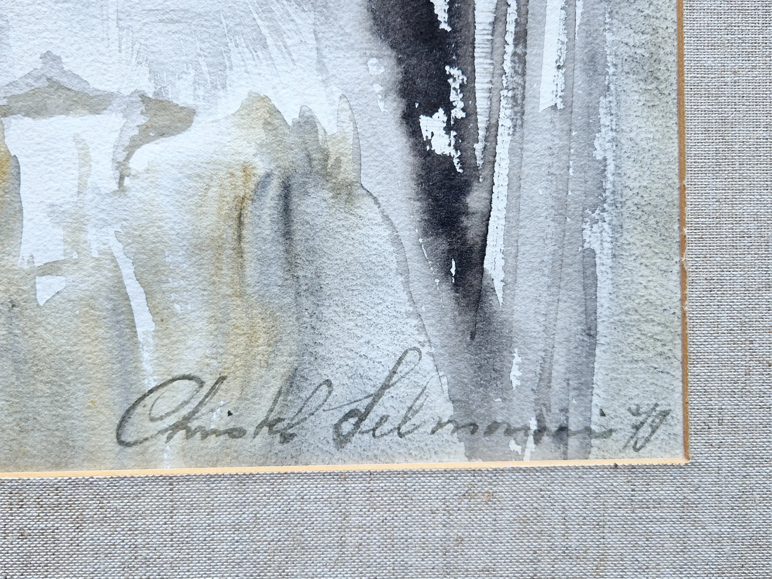 Gesigneerd: met aquarel rechtsonder
