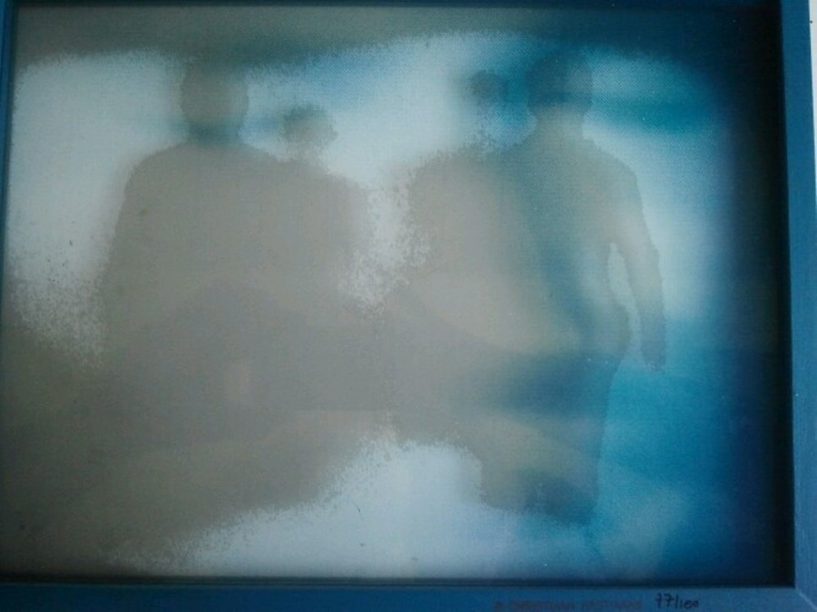 Techniek; Zeefdruk op glas. dubbelzijdig bedrukt.