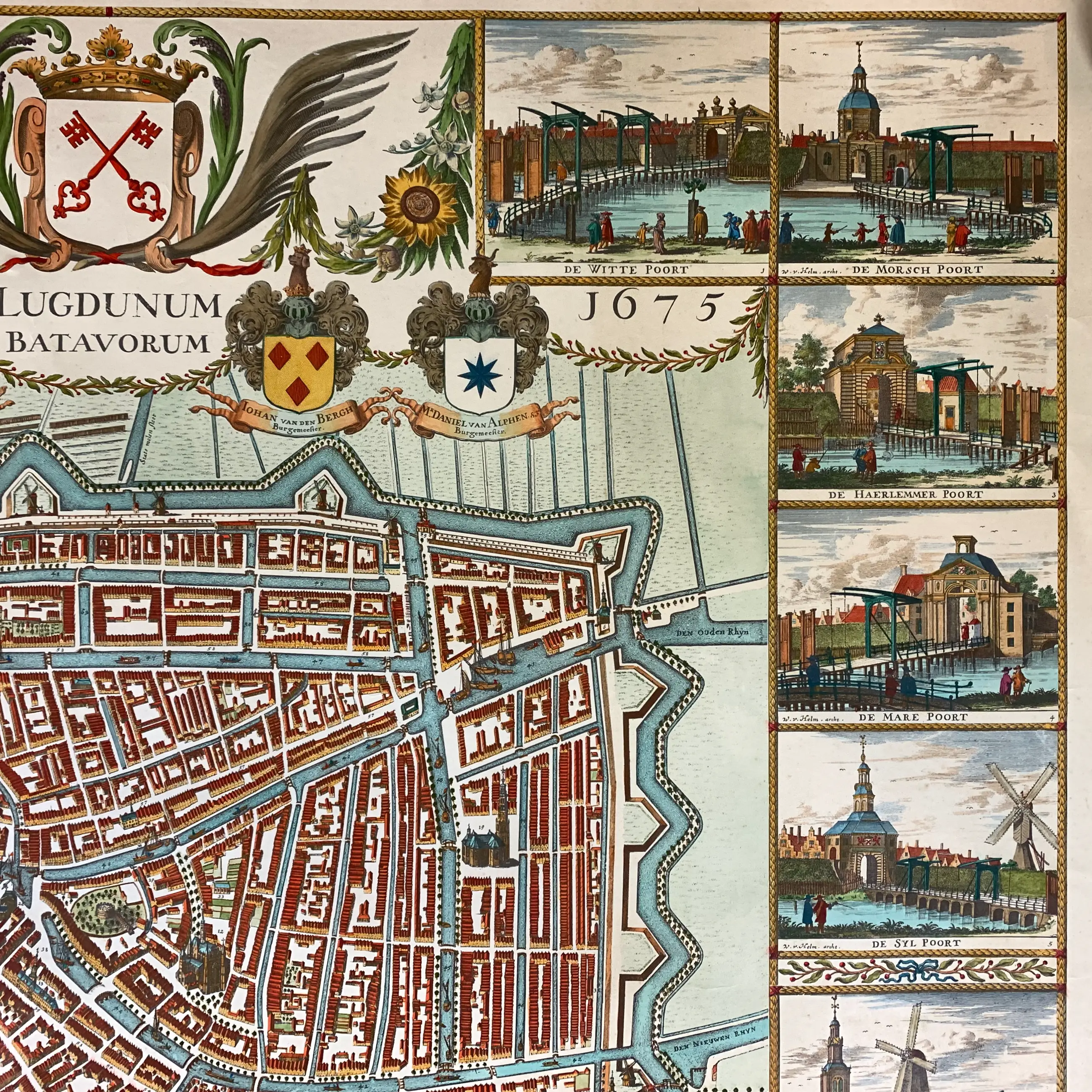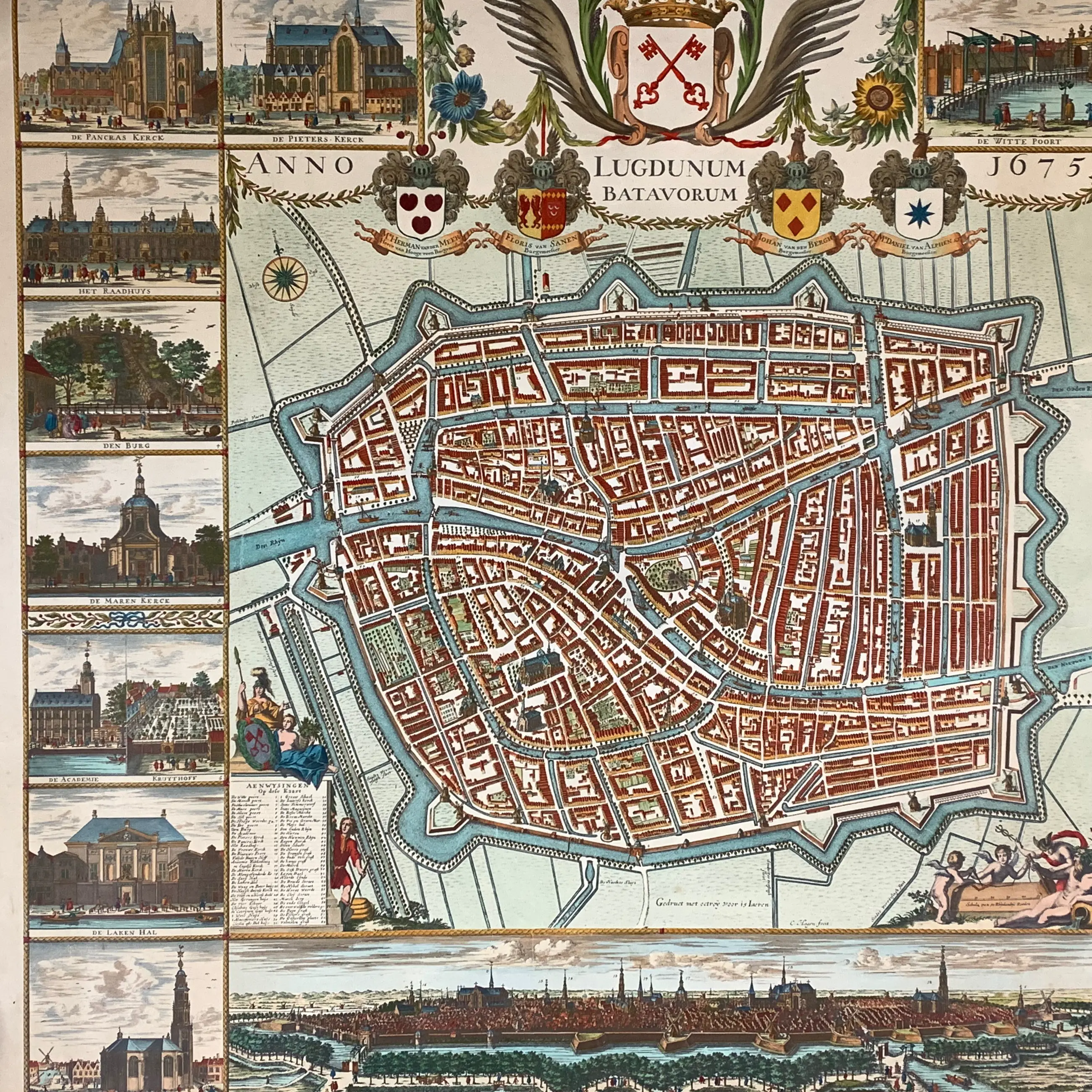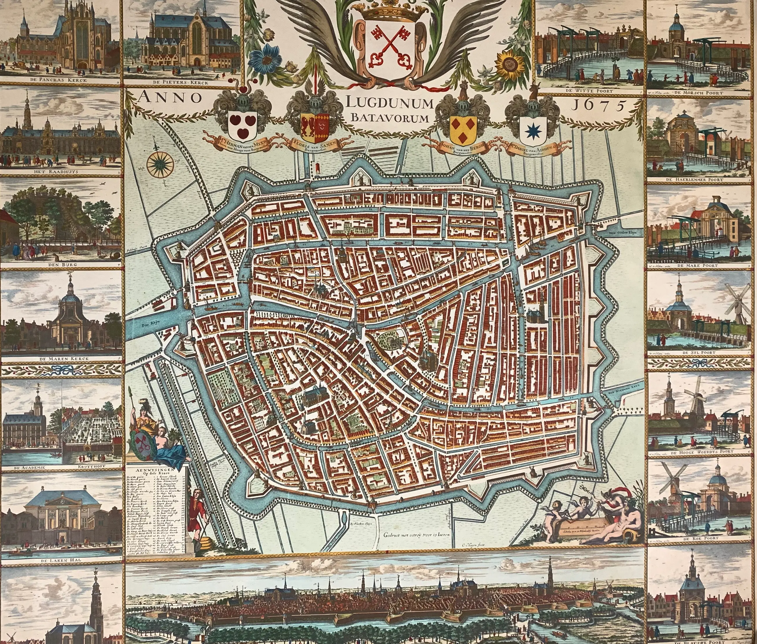 Plattegrond van Leiden naar C. Hagen, 17e eeuw. Gedruct met octrooi voor 15 Laeren. Afmetingen: 91×122 cm. Fecit C. Hagen. Wordt verzekerd verzonden in een stevige kartonnen koker.