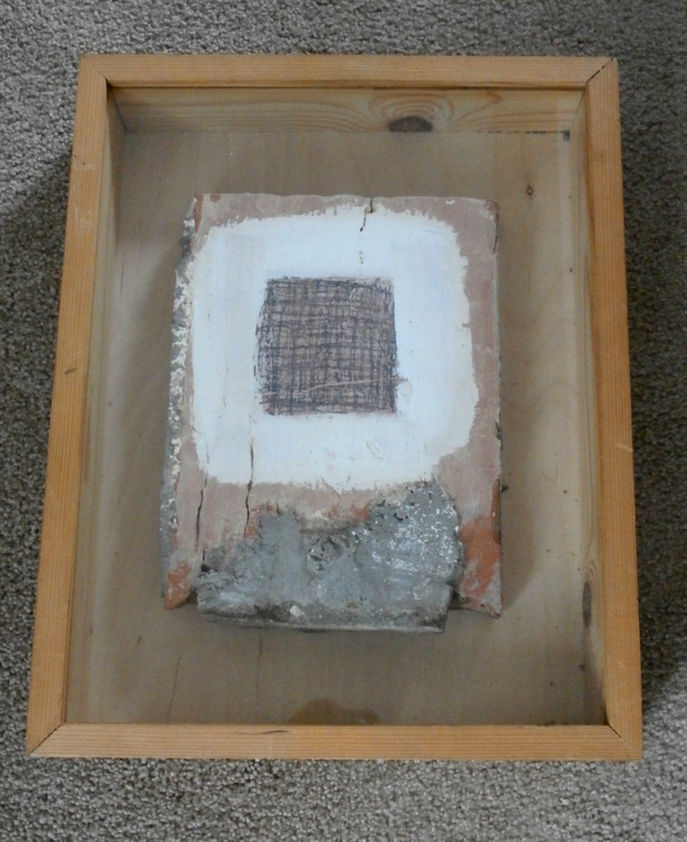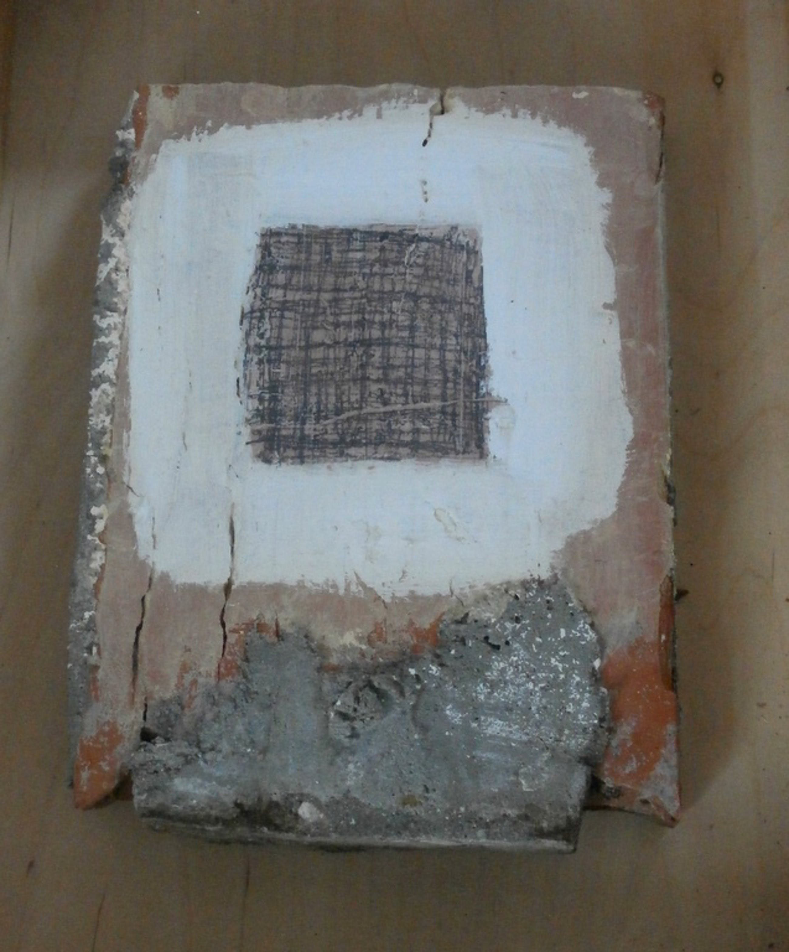 Het werk van Damsté wordt gekenmerkt door het gebruik van uiteenlopende materialen die hij op een vaak strenge manier rangschikt in zijn composities. Dit werk is daar bij uitstek een goed voorbeeld van. In dit werk maakt hij gebruik van het grove materiaal steen die hij bewerkt heeft met witte verf en in het midden van het witte gedeelte een tekening op heeft gemaakt.