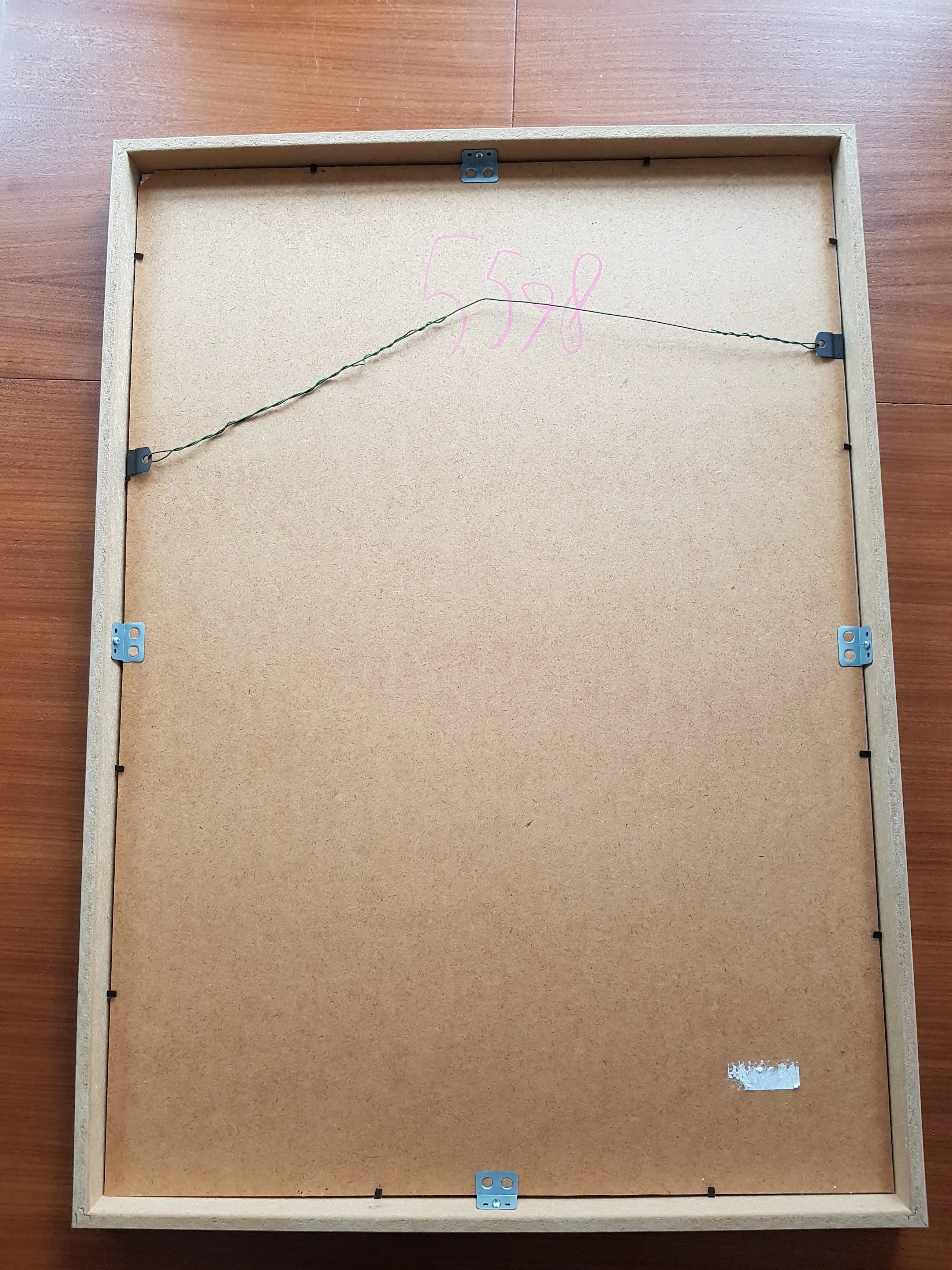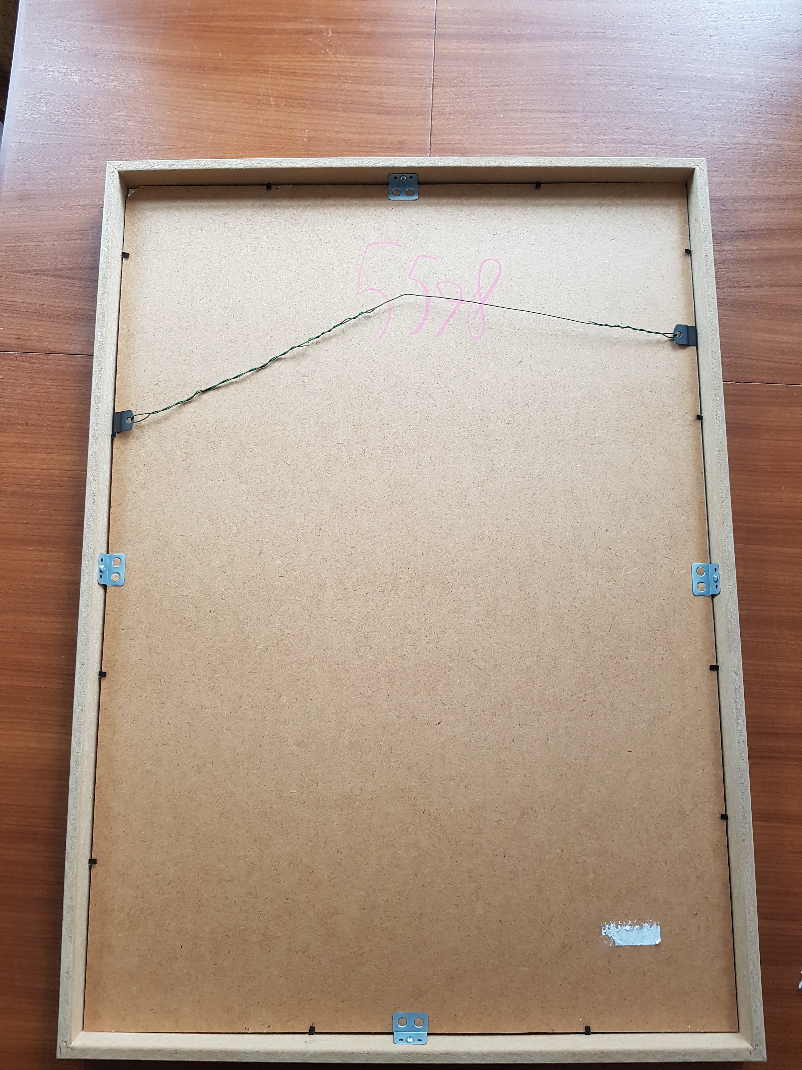 Mooi ingelijst alleen zit het werk ietwat gebobbeld in de lijst maar dit is te verhelpen.