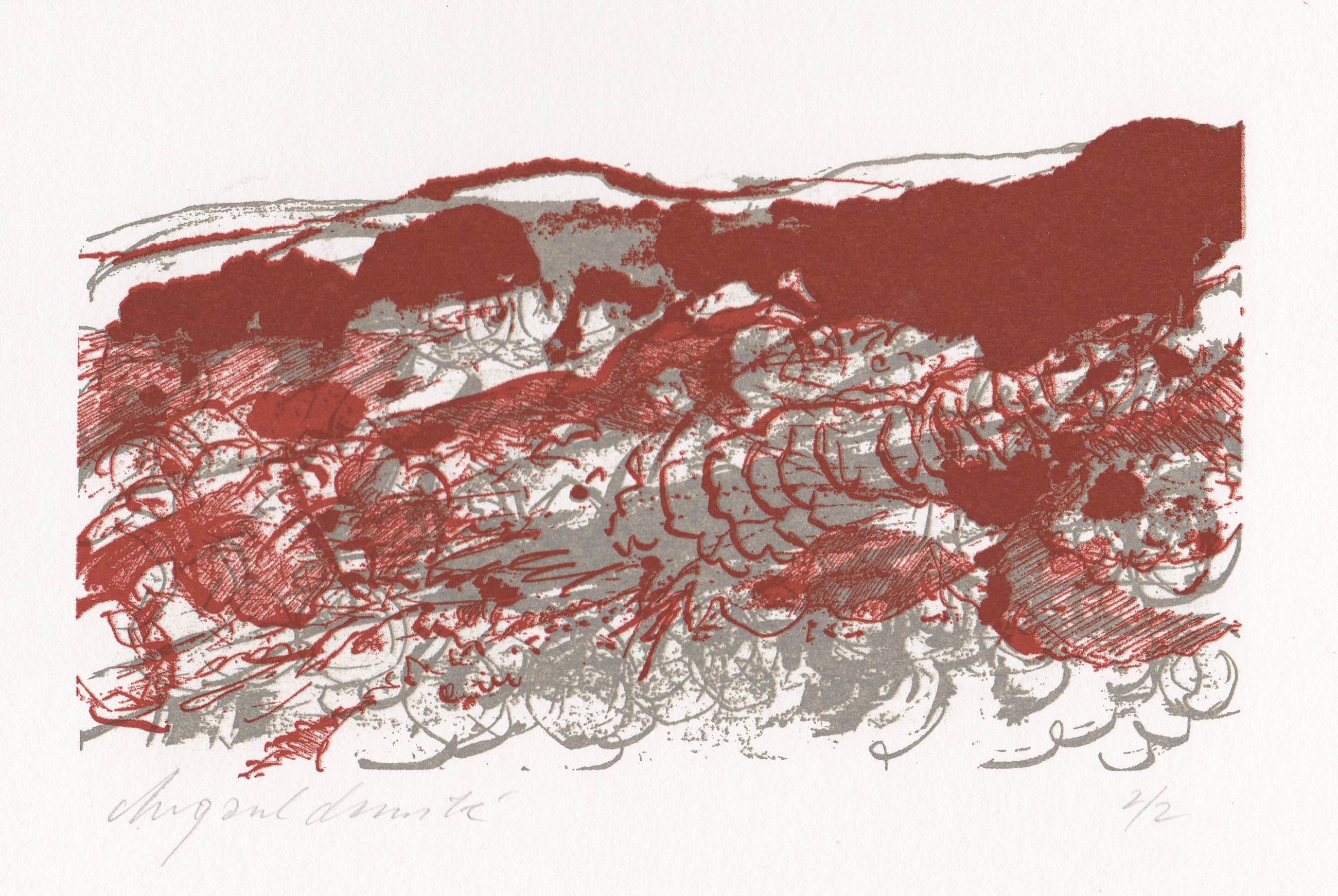 7 verschillende versies van een landschap; vermoedelijk proefdrukken. beeld: 13 x 19 cm; blad 19 x 21,5 cm; alle bladen genummerd 2/2 en gesigneerd met potlood.