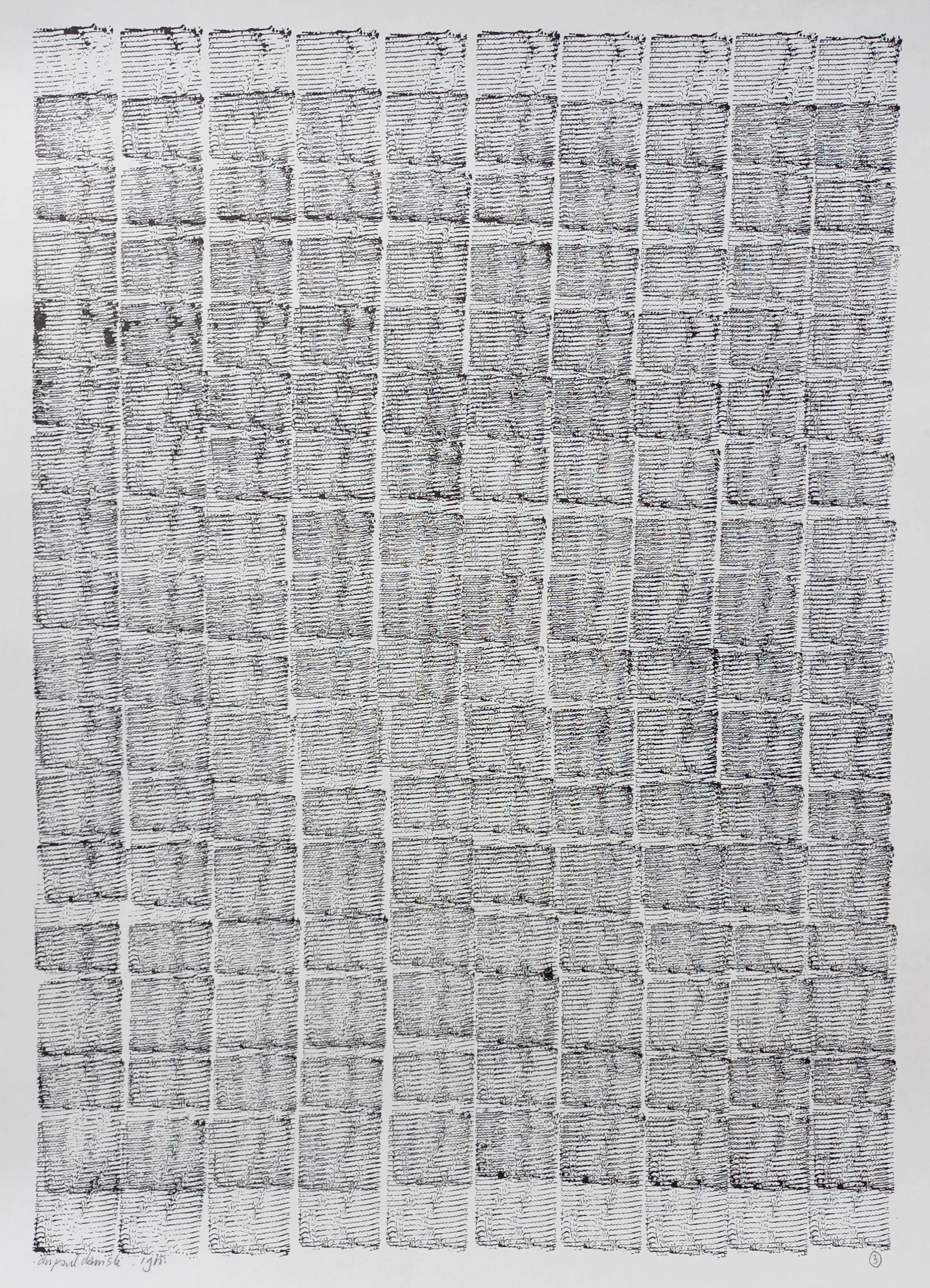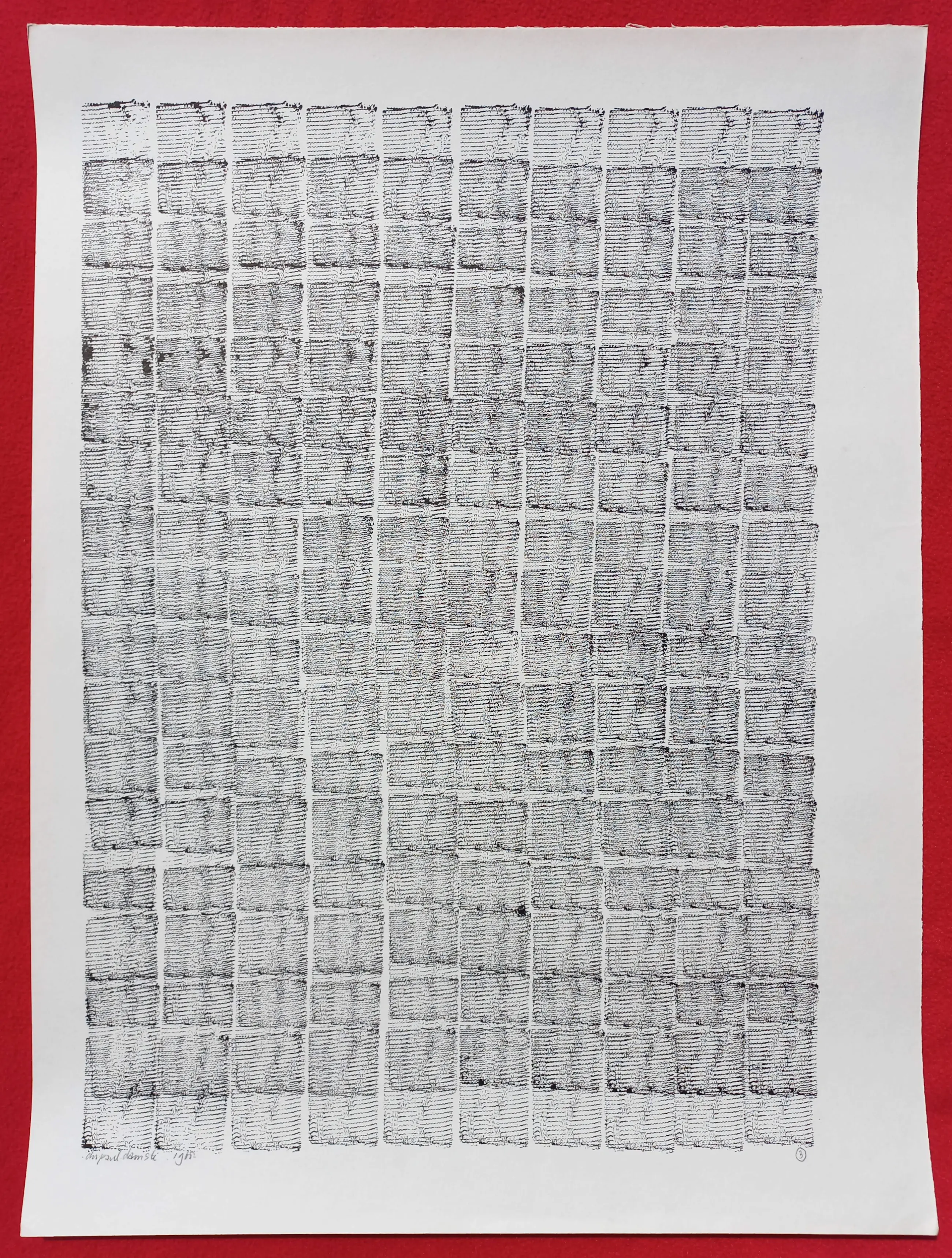 Zeer mooi Zero-achtig werk van Christiaan Paul Damsté. Inkttekening op papier opgebouwd uit bijna tweehonderd stempelafdrukken, met potlood voluit gesigneerd en gedateerd (1968) linksonder en met nummer “3” rechtsonder. In zeer goede conditie.