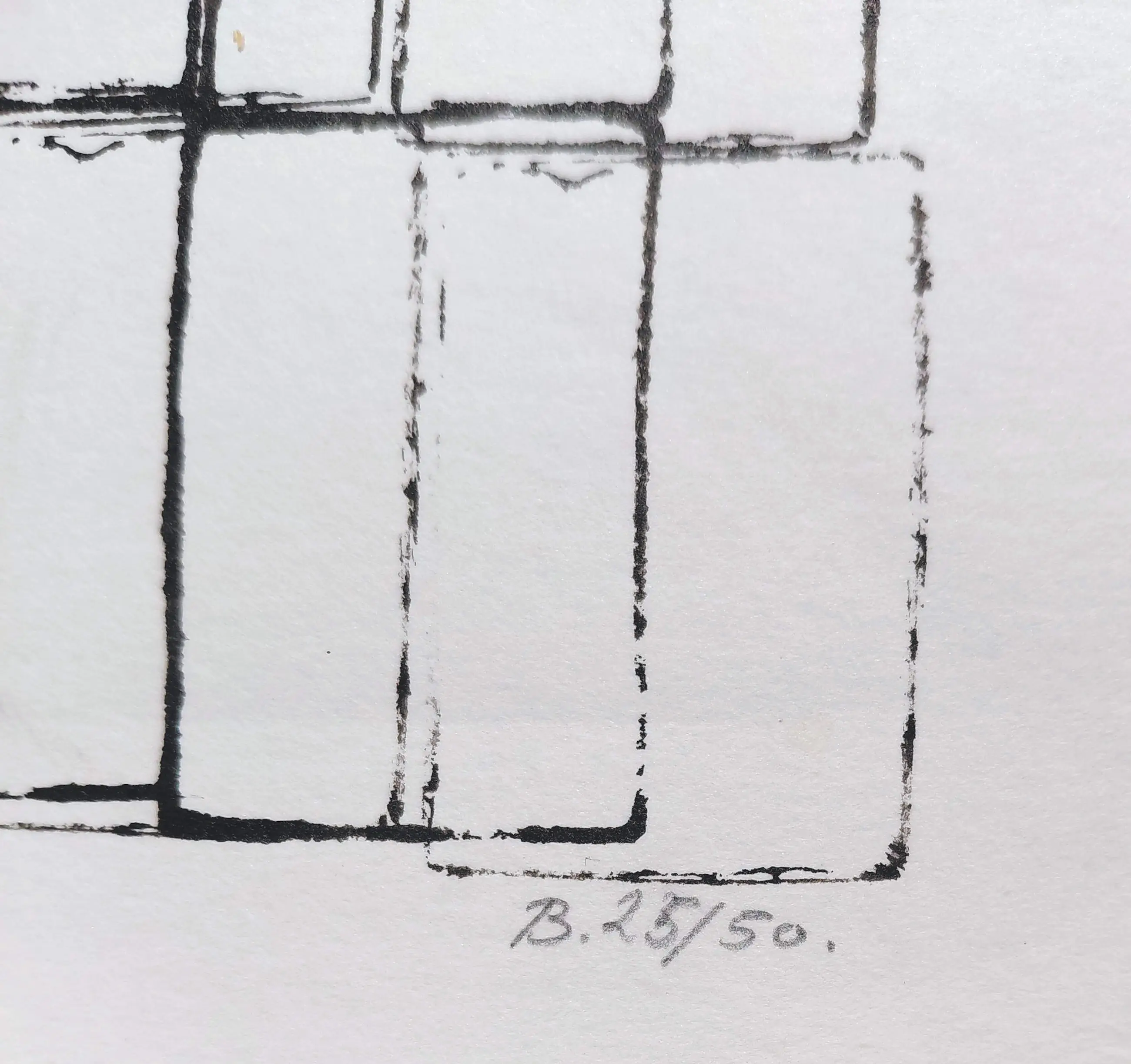 Mooi Zero-achtig werk van Christiaan Paul Damsté. Inkttekening op papier opgebouwd uit honderden stempelafdrukken, met potlood voluit gesigneerd en gedateerd (1968) linksonder en met nummer “B 25/50” rechtsonder. In zeer goede conditie.