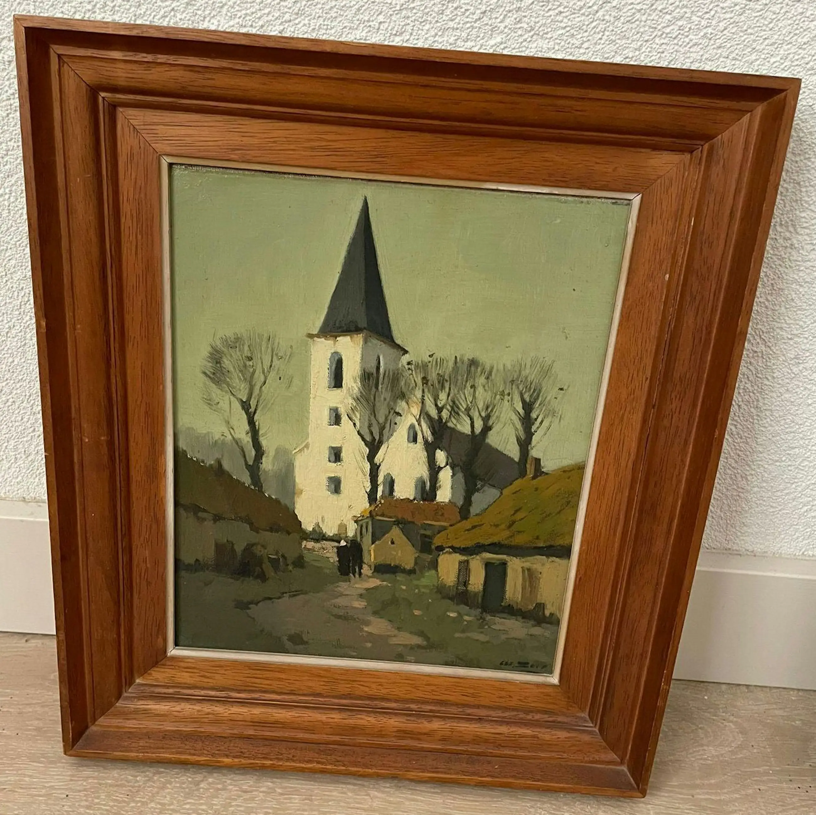 Details: Kunstenaar: Christiaan (Chris) Soer (1882–1961) Techniek: olieverf op paneel Onderwerp: dorpsgezicht met kerk Signatuur: rechtsonder gesigneerd Periode: circa 1920–1940 Inclusief houten lijst