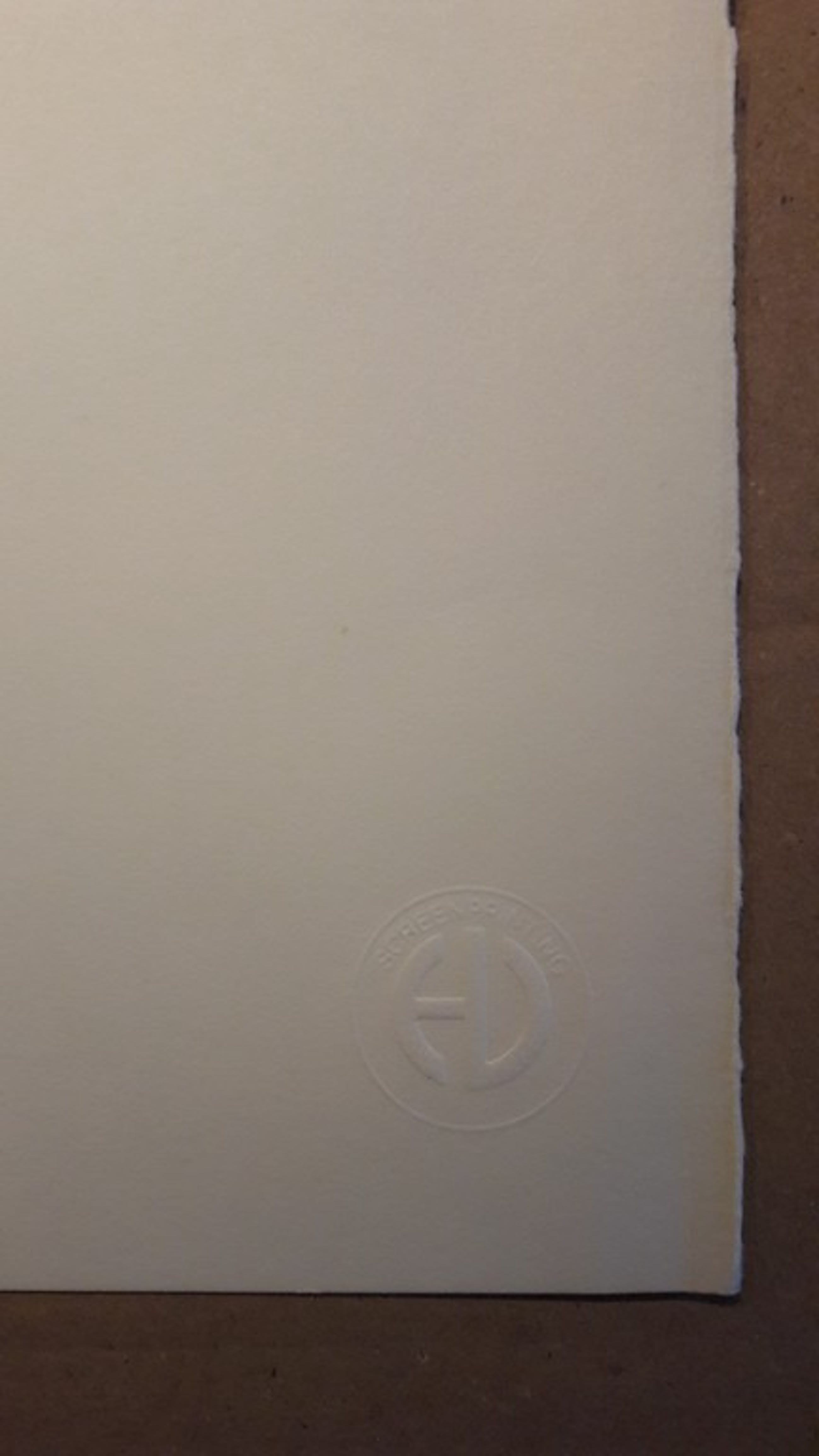 Op de laatste 3 foto's zijn de blindstempels en drukkersstempel zichtbaar in het handgeschepte 250 grams Simili Japon papier die op alle exemplaren aanwezig zijn (de foto's zijn voorbeeldfoto's en behoren in dit geval tot het andere exemplaar wat ik aan bied). Het aangeboden exemplaar zoals op de foto's heeft dezelfde stempels.