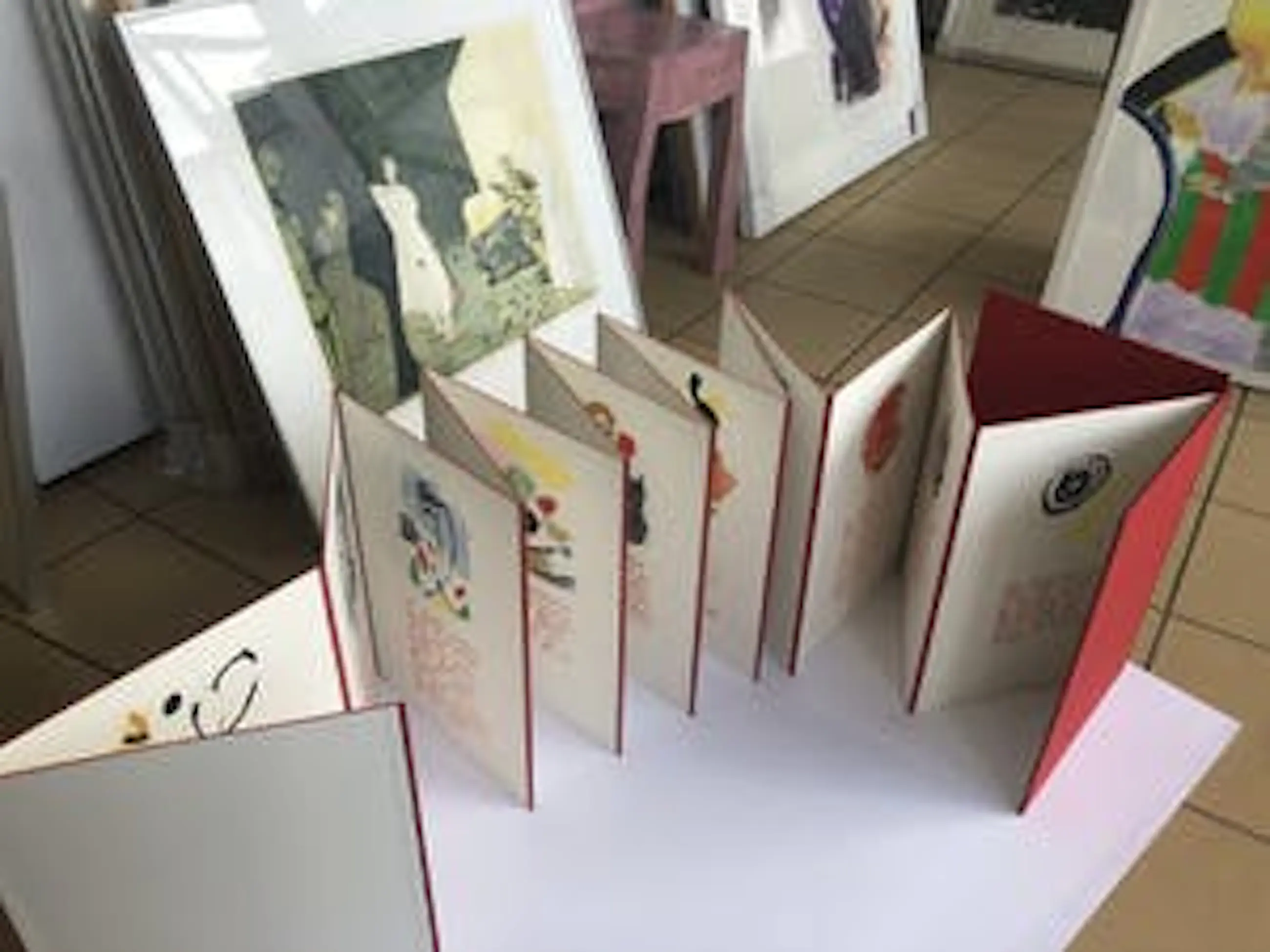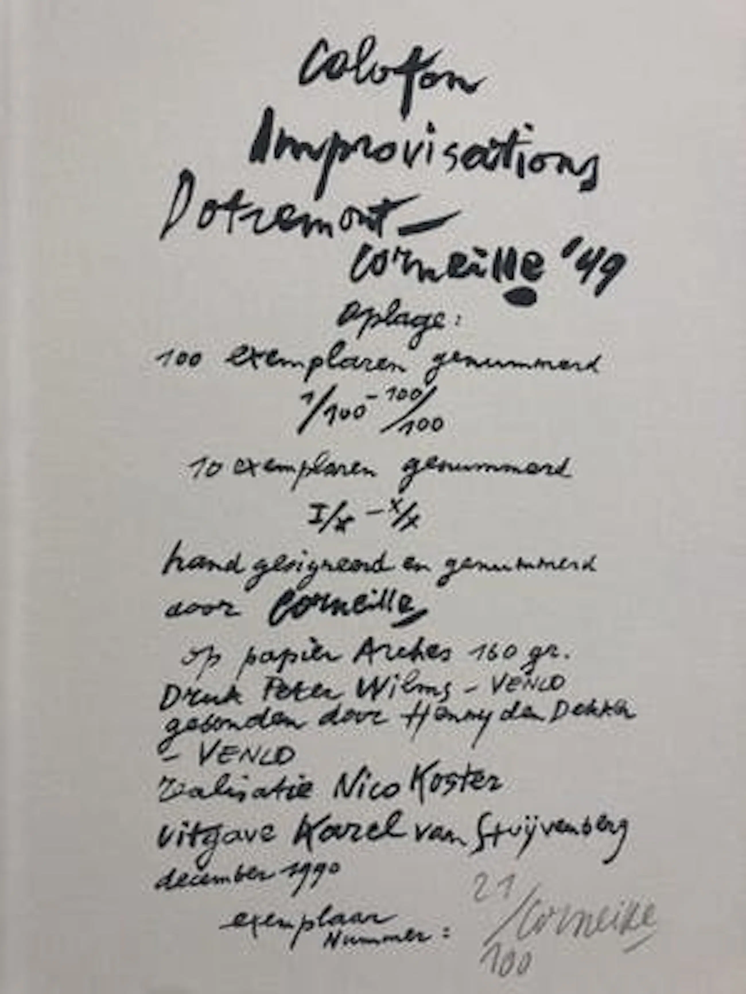 Deze mooie Leporello telt 14 bladen en een voor en achterblad gemonteerd als harmonica leporello en is gedrukt in 1990 dus alleen gesigneerd door Corneille. De Leporello zit in een fraaie hoes. Prachtig om uitgeklapt neer te zetten. Een verzamelaarsobject!