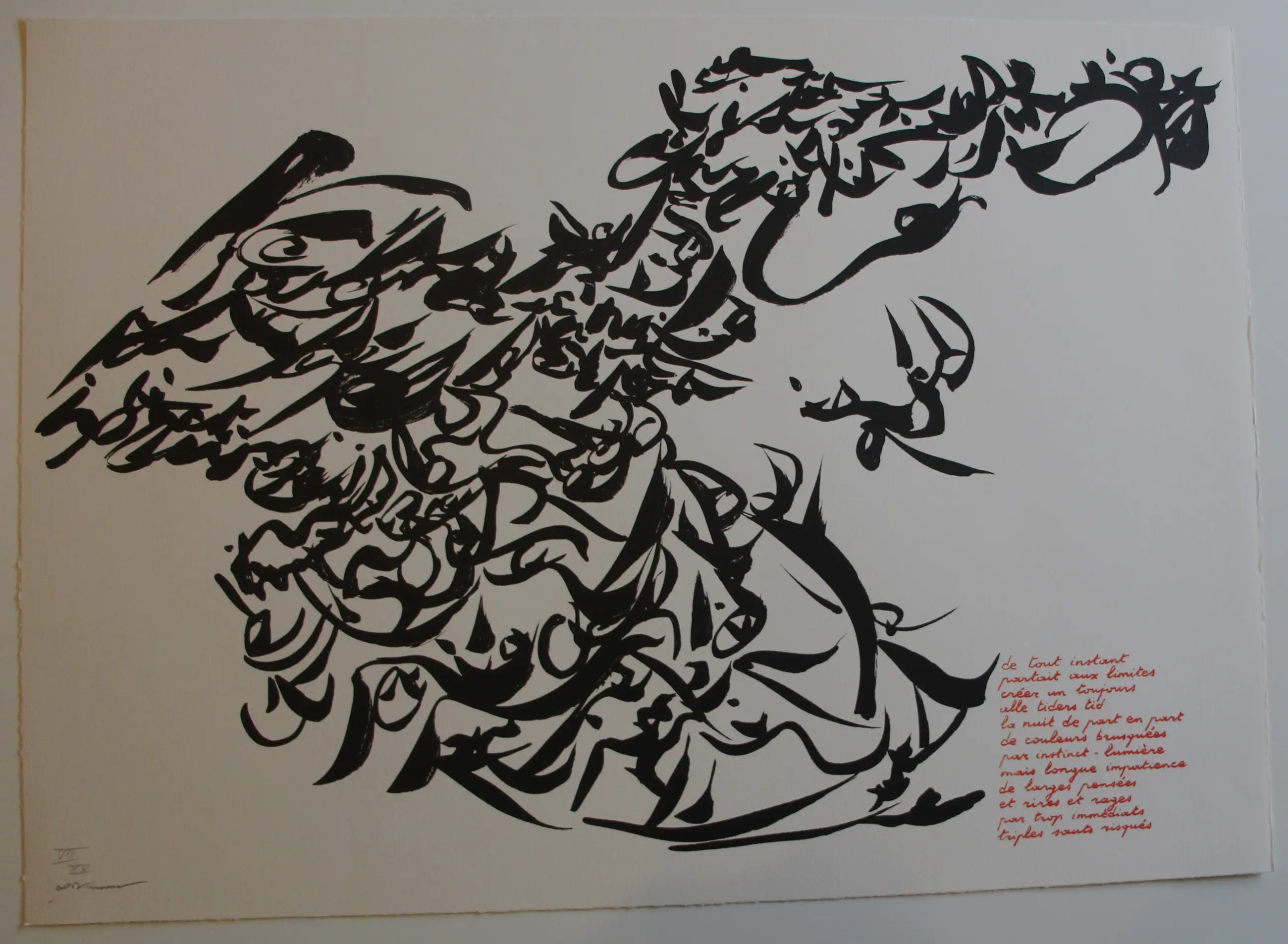 Litho van Christian Dotremont. Titel: De tot instant. Oplage: VIII/XX. Afmetingen blad: H54 x b75cm. Het werk is, links onderaan, met potlood gesigneerd door de kunstenaar. De authenticiteit van het, aangeboden, werk wordt volledig gegarandeerd. Een certificaat van echtheid kan, op aanvraag, worden gemaild.