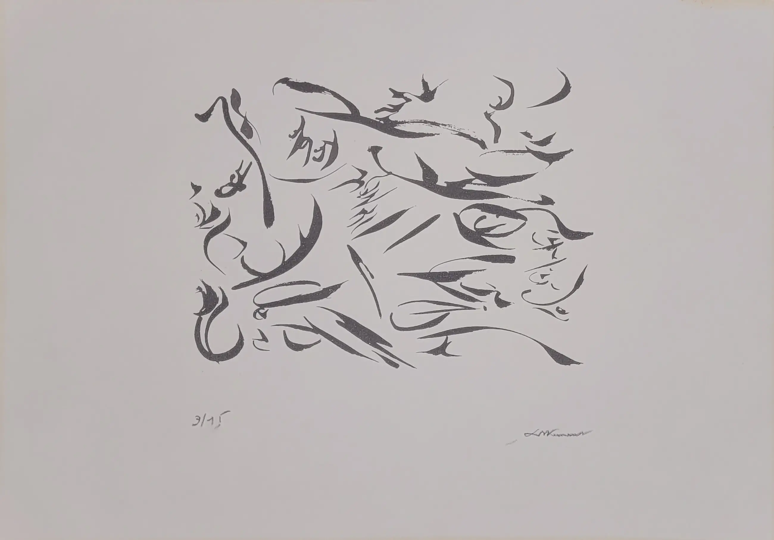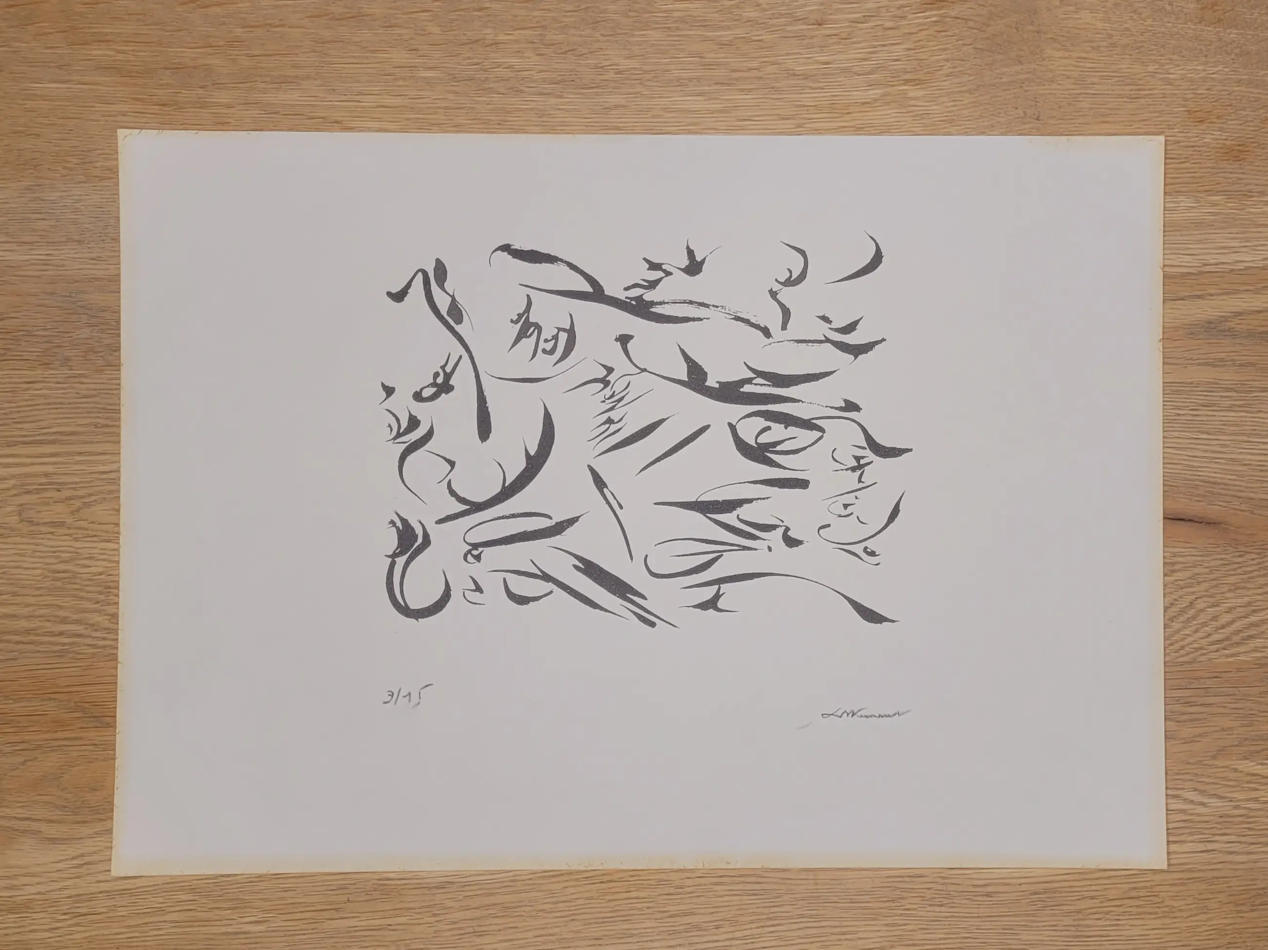 Christian Dotremont (1922–1979), Belgisch dichter en beeldend kunstenaar, was mede-oprichter van de CoBrA-beweging. Zijn logogrammen vormen een unieke kruising tussen kalligrafie, poëzie en abstracte kunst. In dit werk wordt het geschreven woord bevrijd van zijn leesbaarheid en krijgt het een autonome, visuele kracht. Het resultaat is een intens en persoonlijk kunstwerk dat zowel lyrisch als grafisch overtuigt.