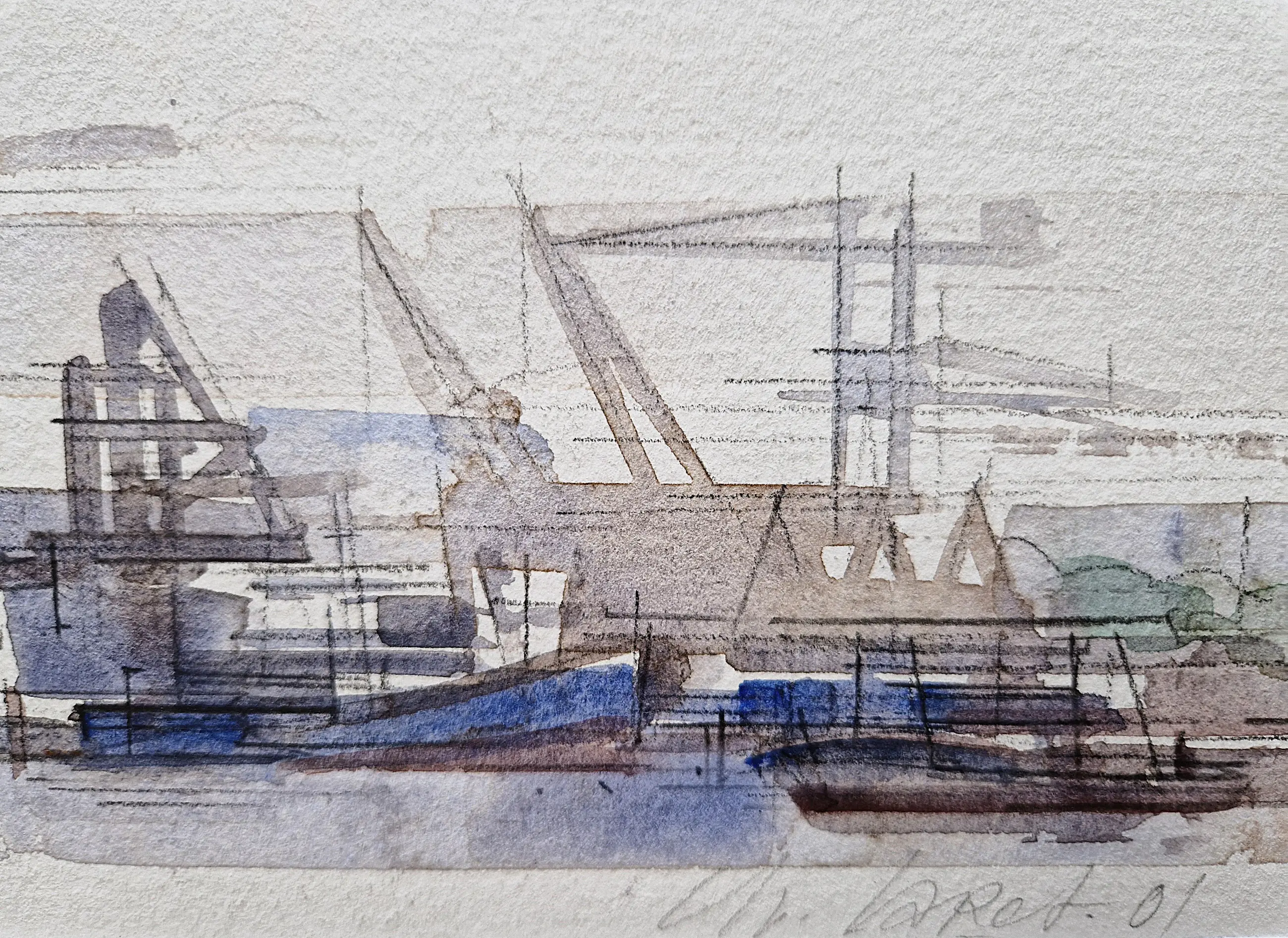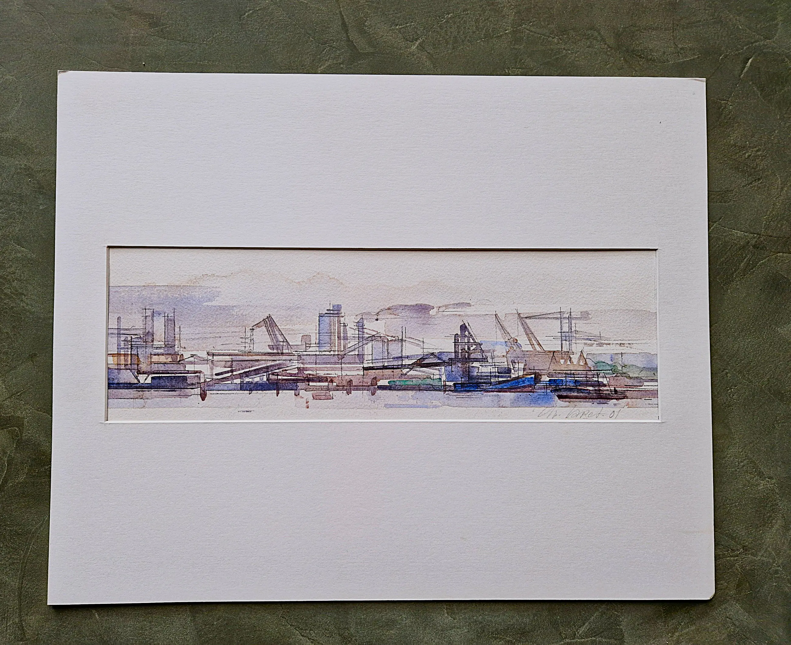 - Originele aquarel "Mercuriushaven Amsterdam"