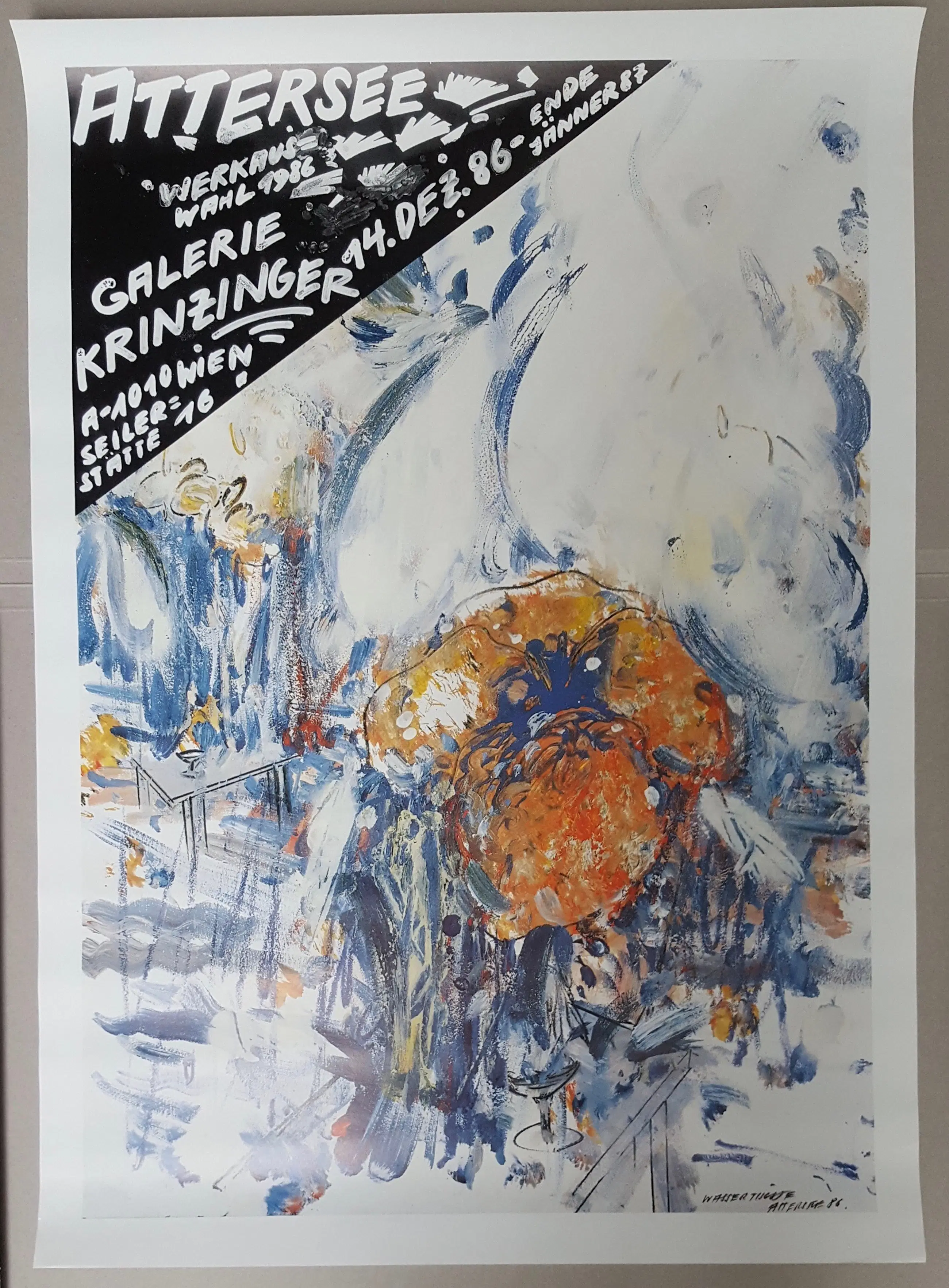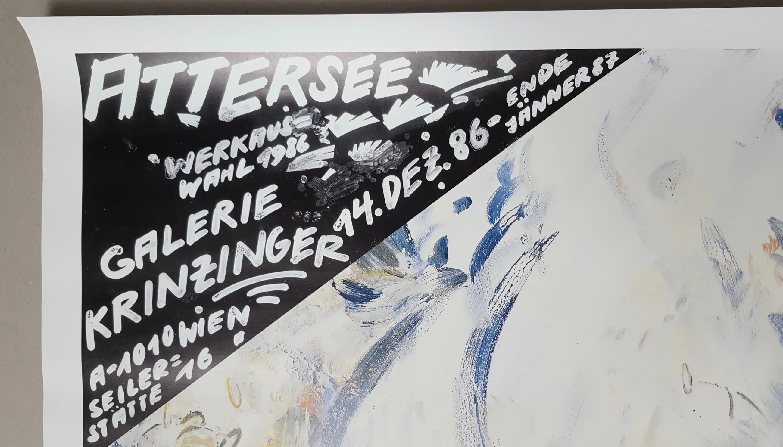 Deze poster van de Oostenrijkse kunstenaar werd gemaakt ter gelegenheid van een tentoonstelling in Galerie Krinzinger in Wenen in 1986.