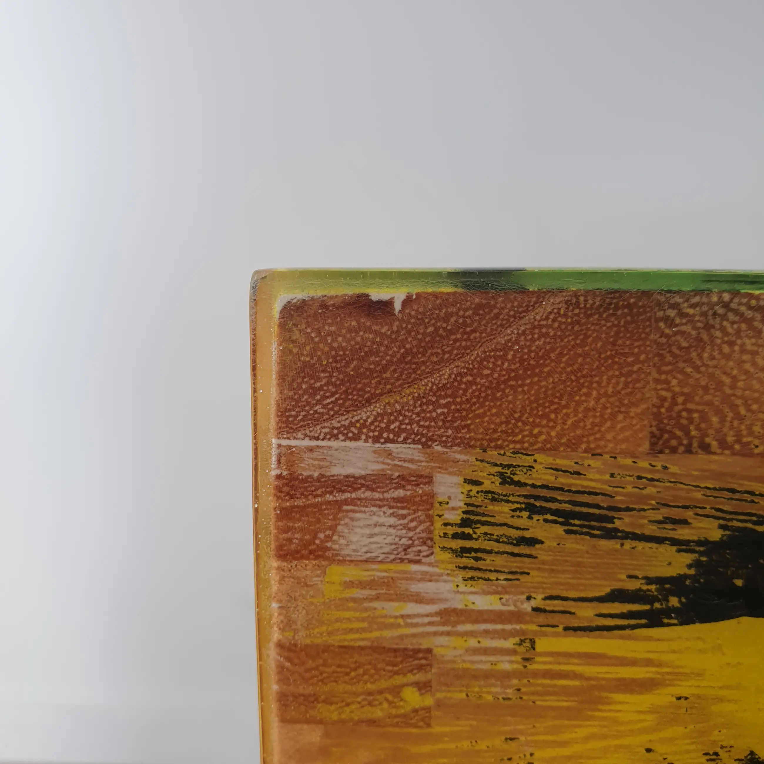 Beschildering is in een vintage urban stijl gemaakt ( verf bewust weg geschuurd, daaroverheen zit een 0,5 cm epoxy laag, dus kale plekken zijn geen slijtage sporen, maar vintage/urban/industrie look).