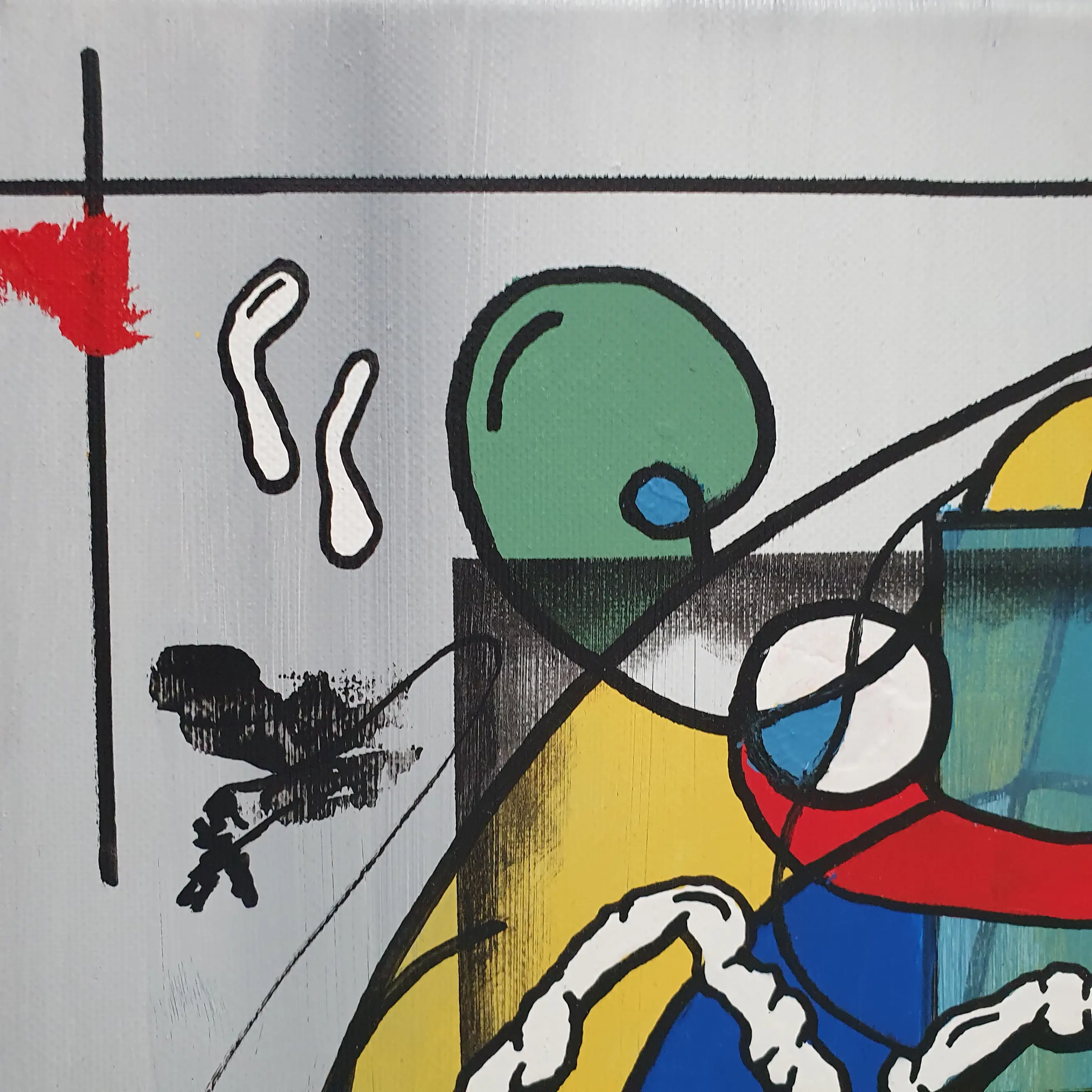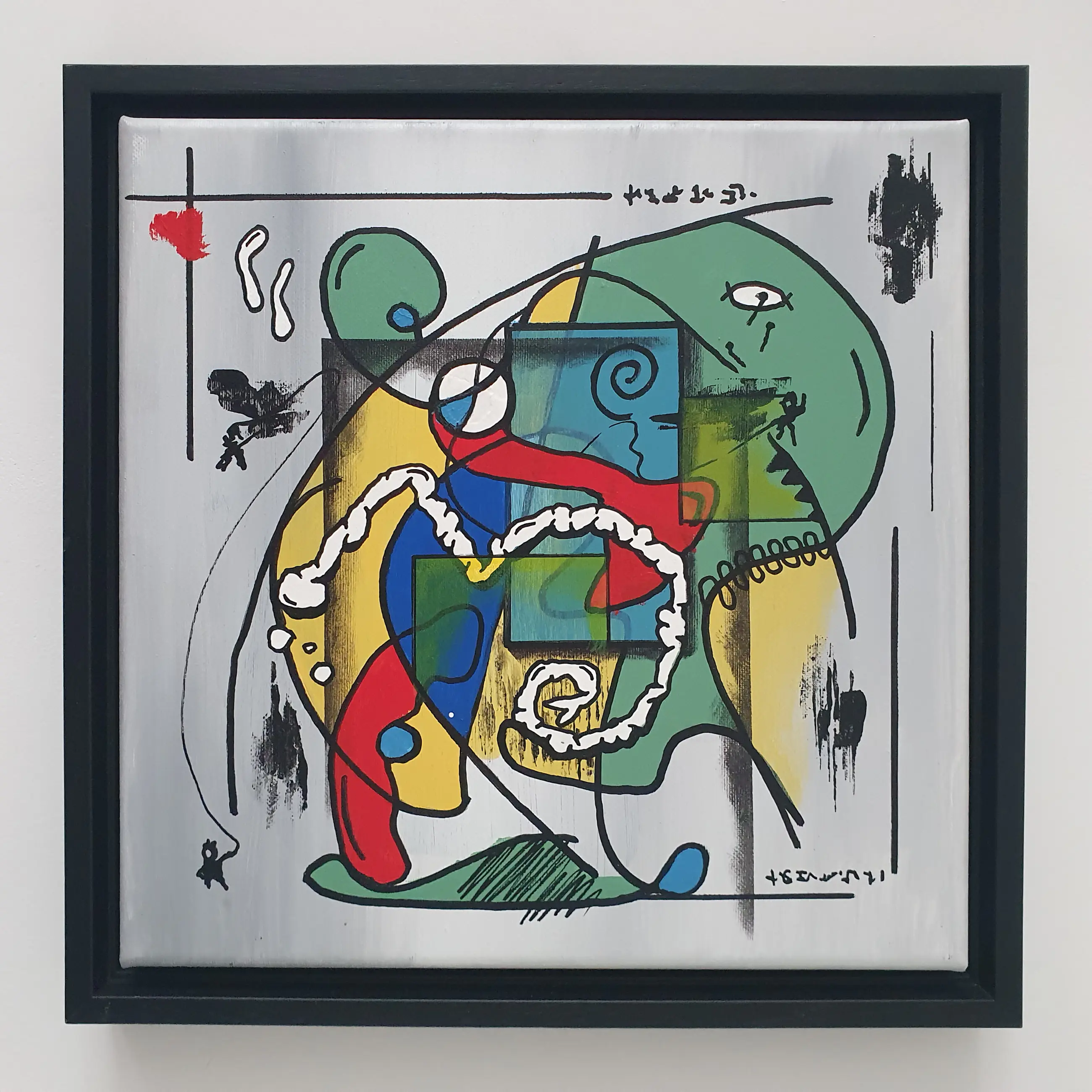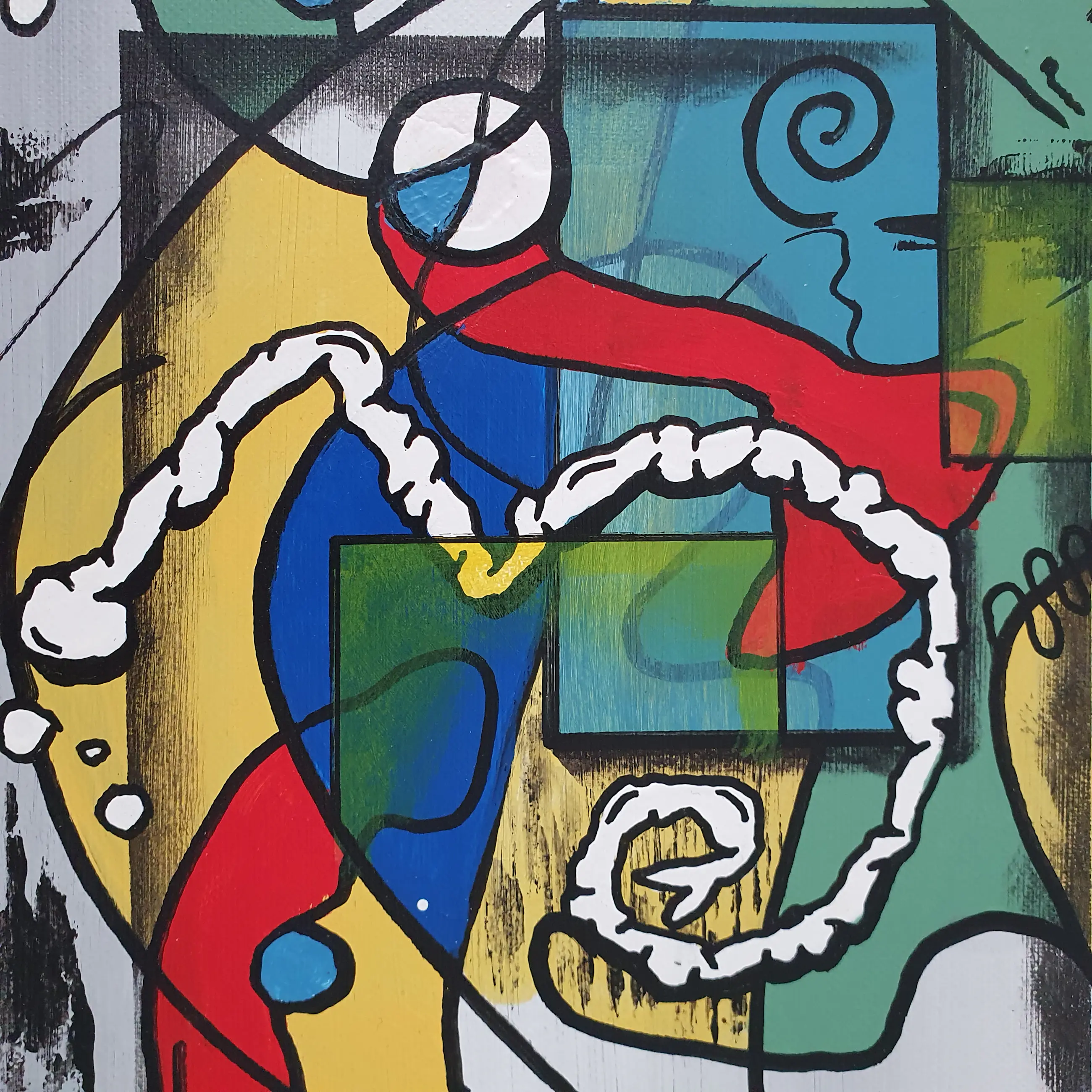Een explosie van kleur, lijn en emotie – What if I will jump is een verhalend schilderij dat het alledaagse leven op ongrijpbare wijze vangt. Het werk is opgebouwd vanuit gevoel, op een manier waarvoor woorden tekortschieten. Abstracte vormen, krachtige lijnen en verrassende details verbeelden emoties die vaak onuitgesproken blijven. De compositie lijkt voortdurend in beweging, alsof het schilderij zelf een sprong durft te overwegen – vol twijfel, hoop, en nieuwsgierigheid.