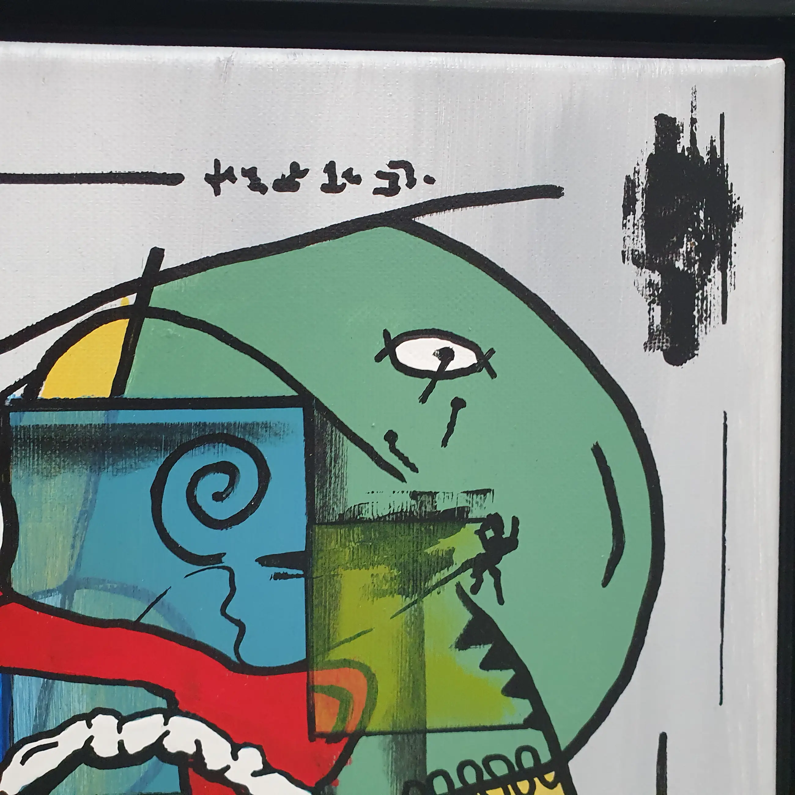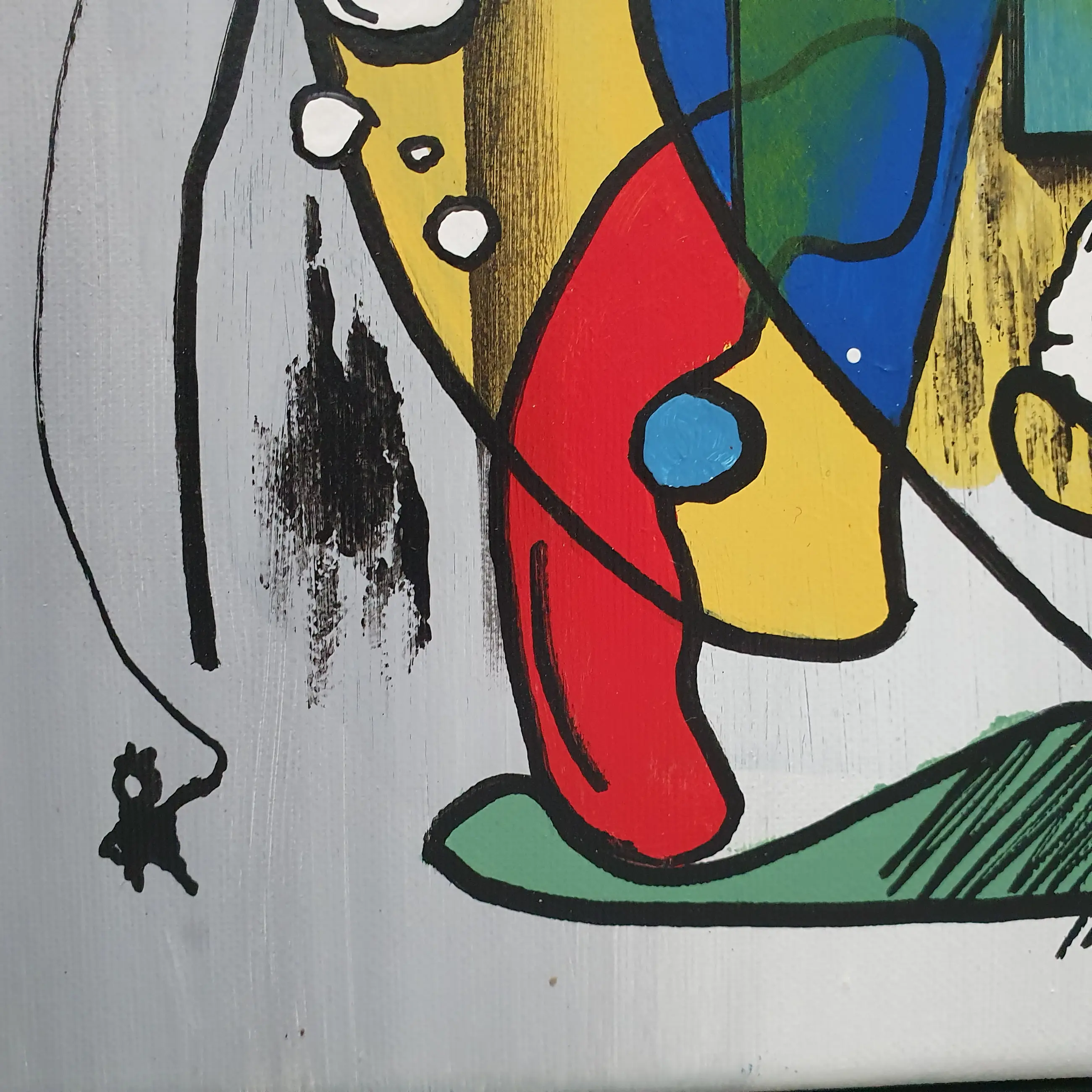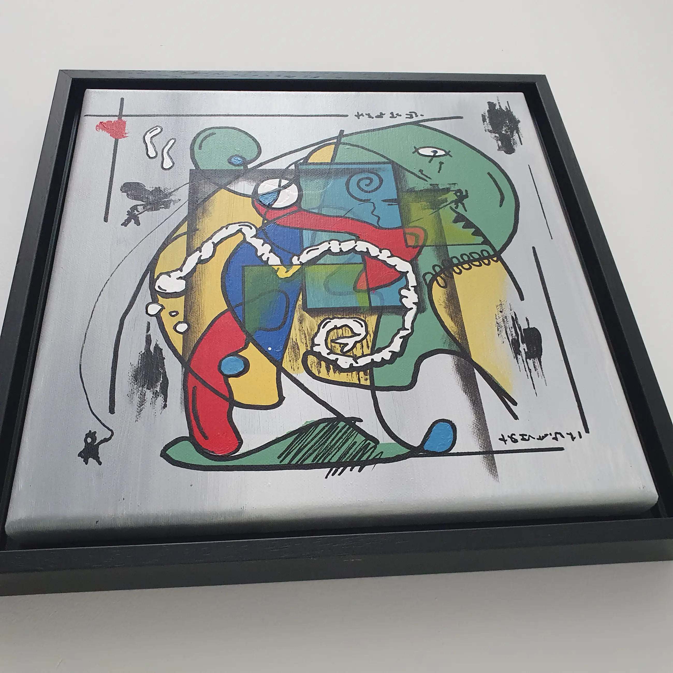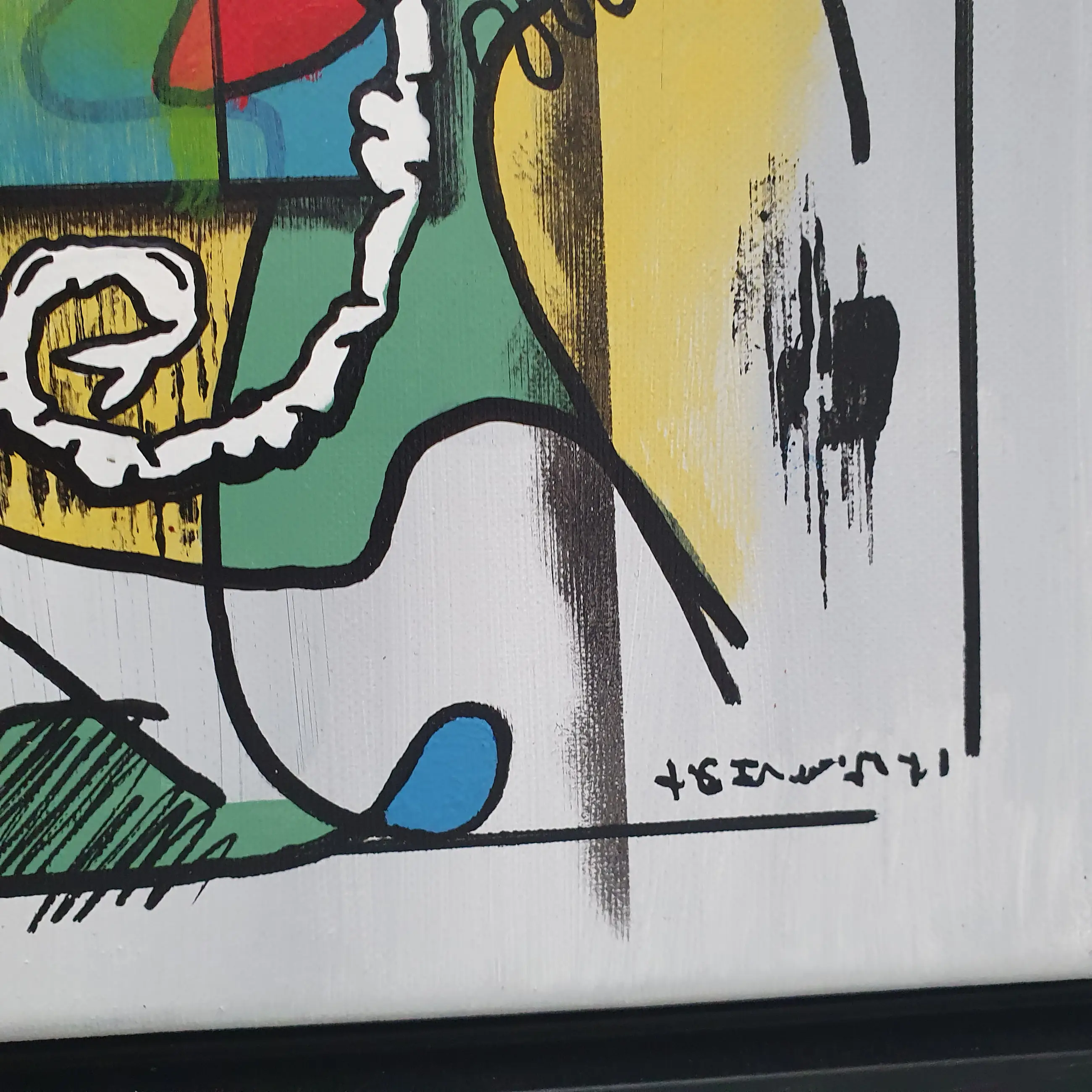 Een explosie van kleur, lijn en emotie – What if I will jump is een verhalend schilderij dat het alledaagse leven op ongrijpbare wijze vangt. Het werk is opgebouwd vanuit gevoel, op een manier waarvoor woorden tekortschieten. Abstracte vormen, krachtige lijnen en verrassende details verbeelden emoties die vaak onuitgesproken blijven. De compositie lijkt voortdurend in beweging, alsof het schilderij zelf een sprong durft te overwegen – vol twijfel, hoop, en nieuwsgierigheid.