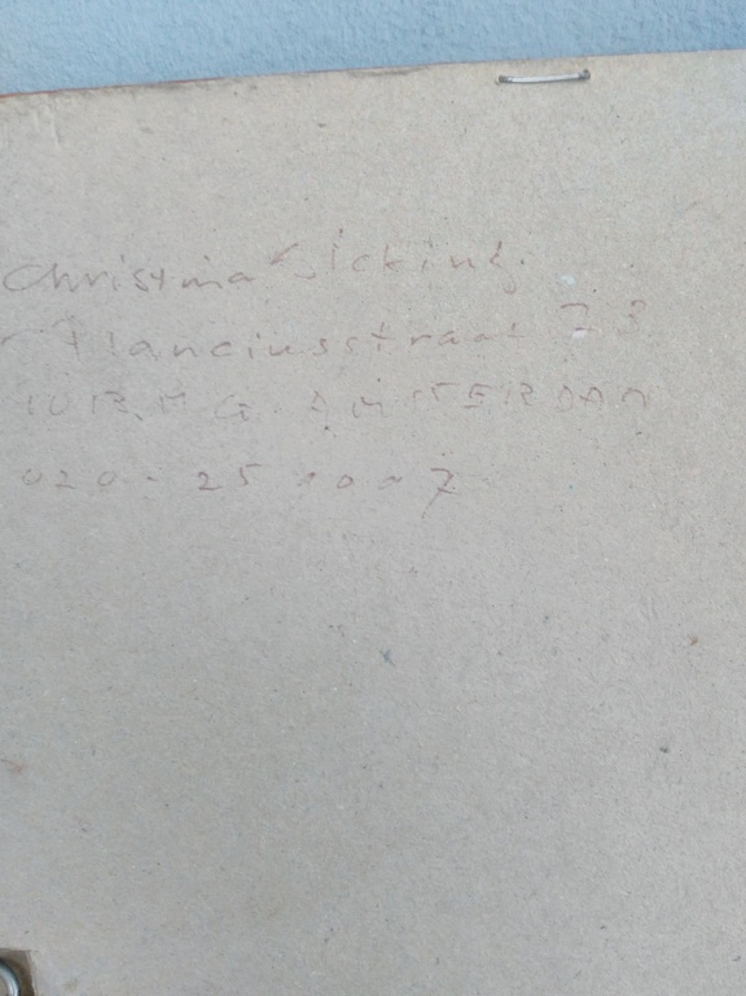 Christina sicking geboren in1929. Zij was gehuwd met Chris Heenemann. Deze aquarel is gemaakt in Amsterdam op de fracisicustraat. Het schilderij is in goede staat. De aquarel is 39 bij 16 cm. Met lijst is het 56 bij 41 cm. Deze aquarel is gemaakt in 1988 en gesigneerd. Het schilderij kan worden verzonden. Kosten hiervan zijn voor de koper.