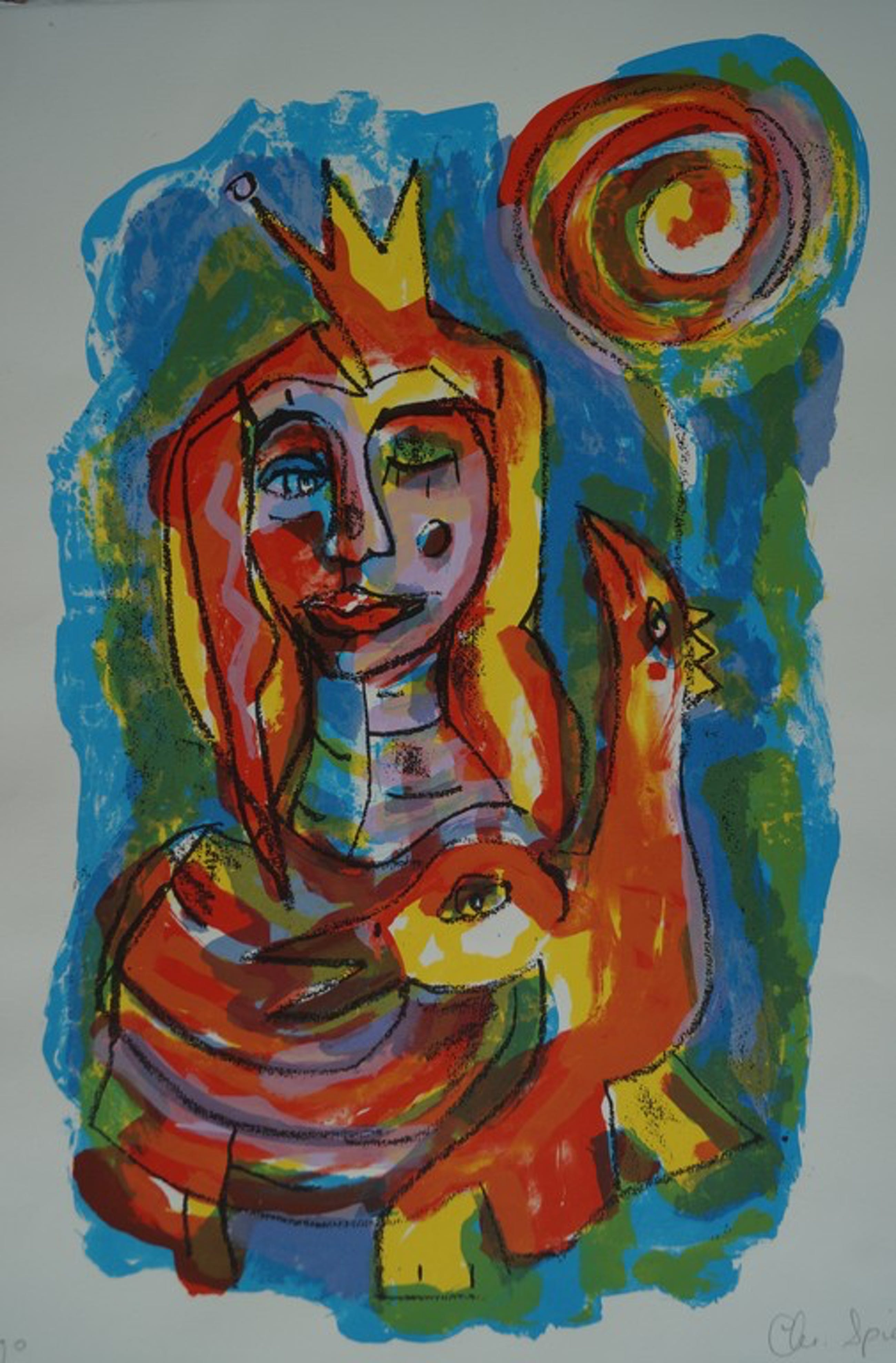 Expressieve gesigneerde zeefdruk van Christine Spierings