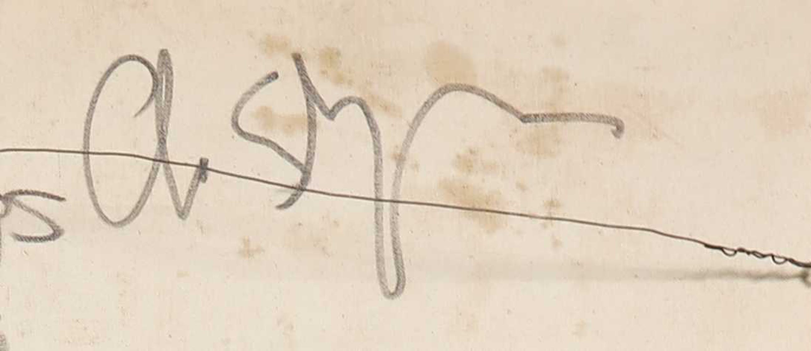 Het werk is gesigneerd op de achterzijde. Slijtage op hoeken en langs randen van het doek.
