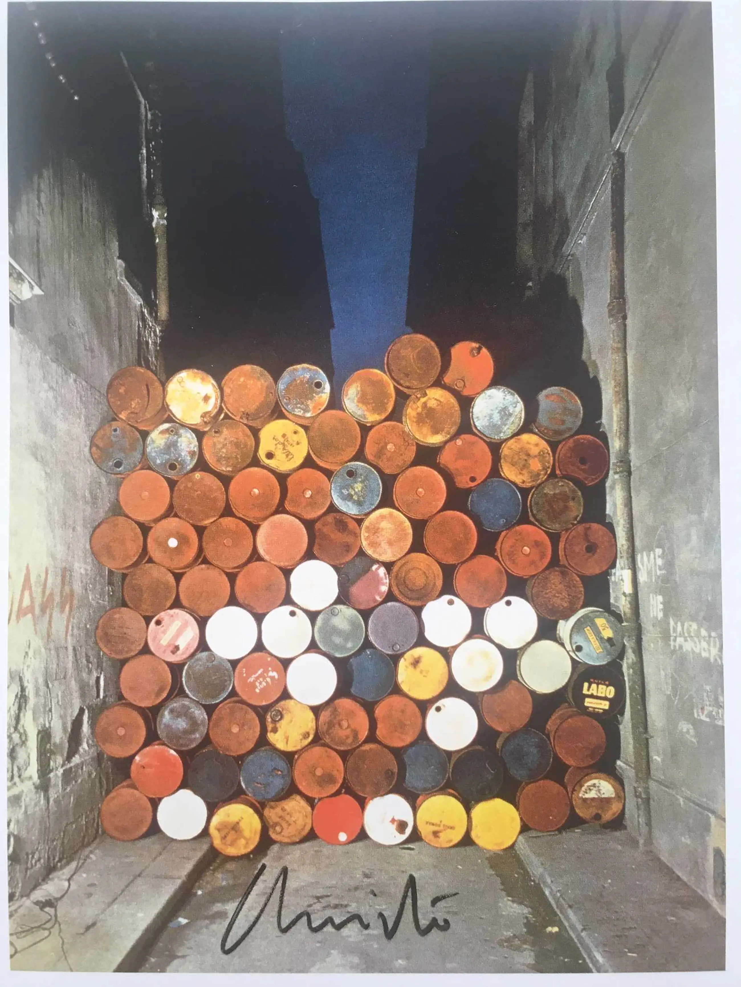 2 werken te koop in 1 deal 1 gesigneerde artcard 12x17 cm oil barrels 1 mooi ingelijst werk floating piers 30x40 cm ingelijst , niet gesigneerd, DIRECT KLAAR OM OP TE HANGEN.