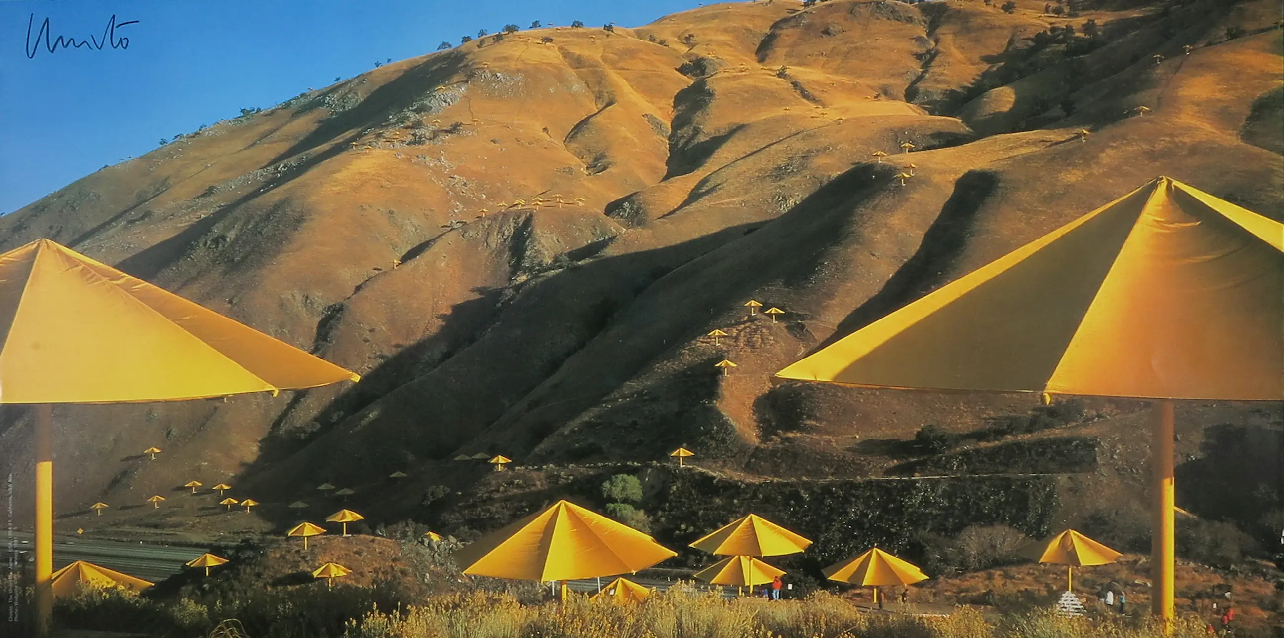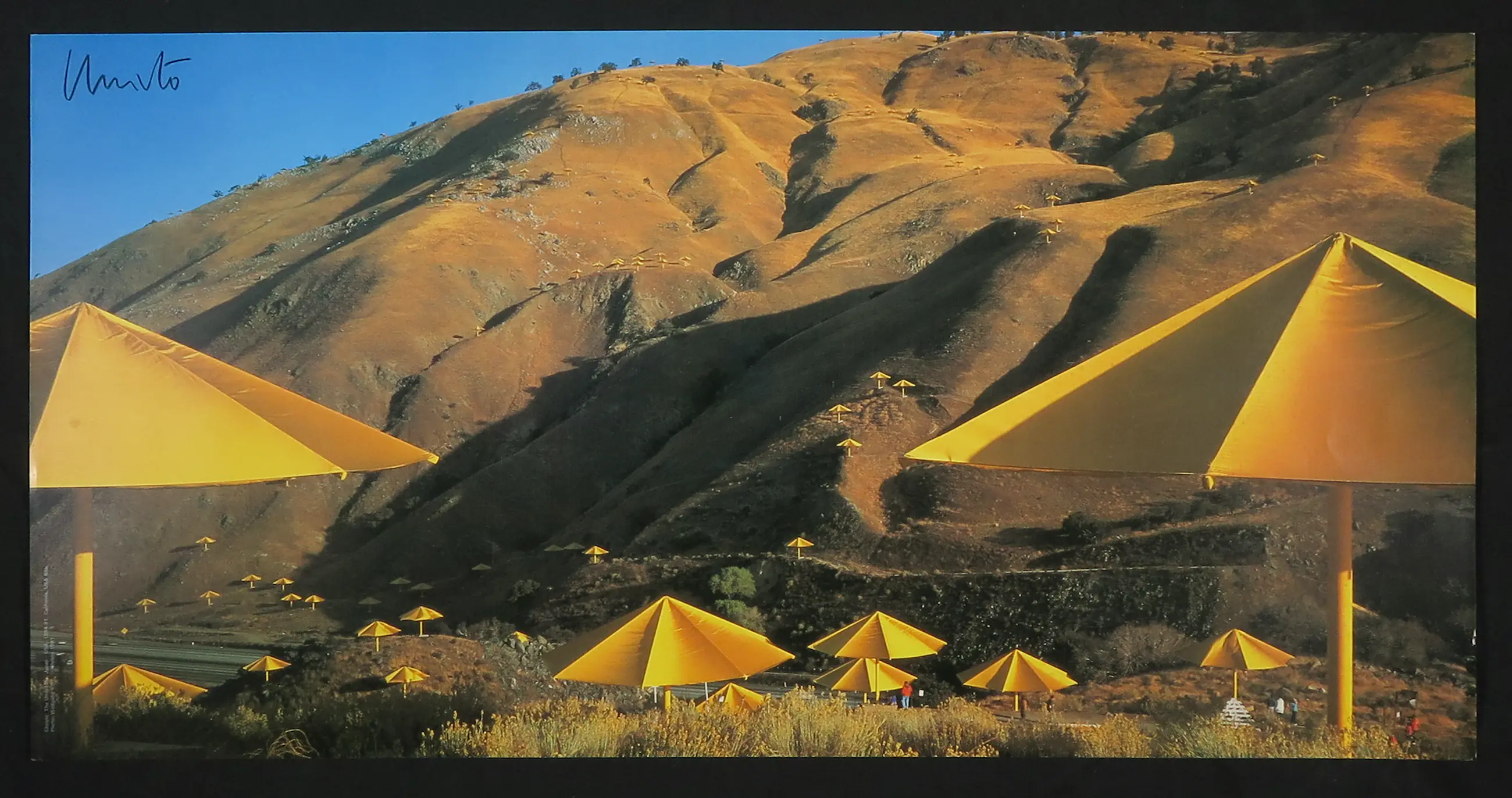 Foto van Christo van één van zijn legendarische grootschalige Land-Art projecten. Handgesigneerd.