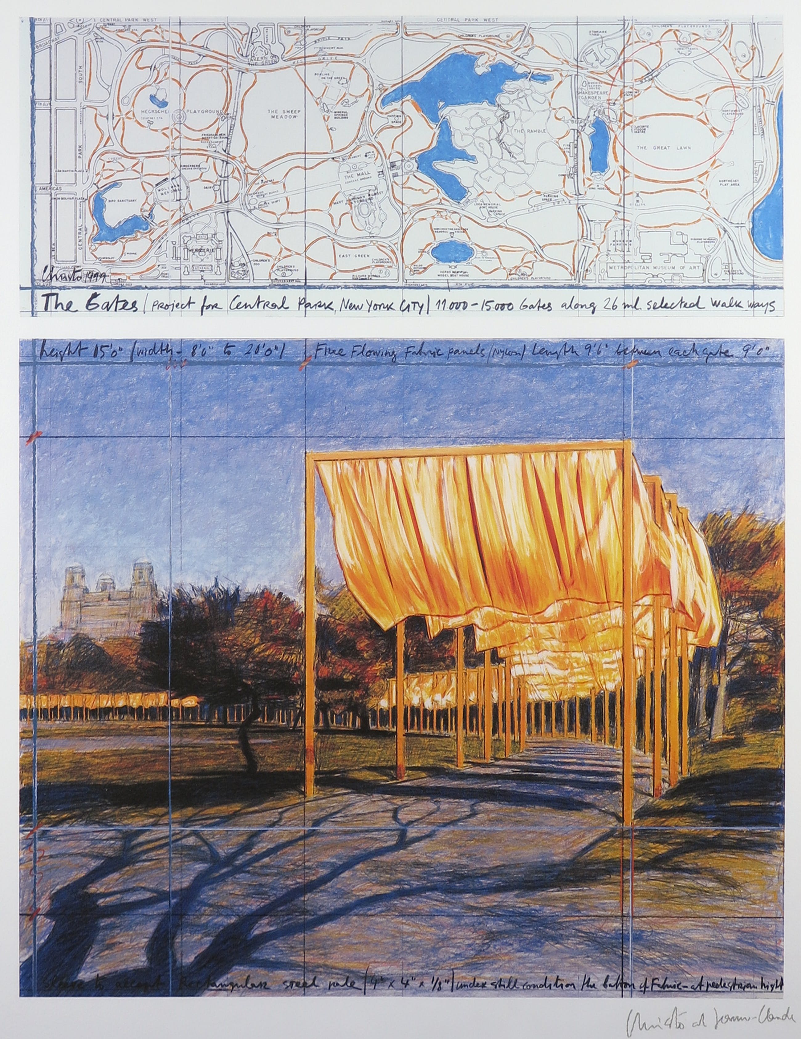 Handgesigneerd door Christo en Jeanne-Claude in potlood rechtsonderdaan.