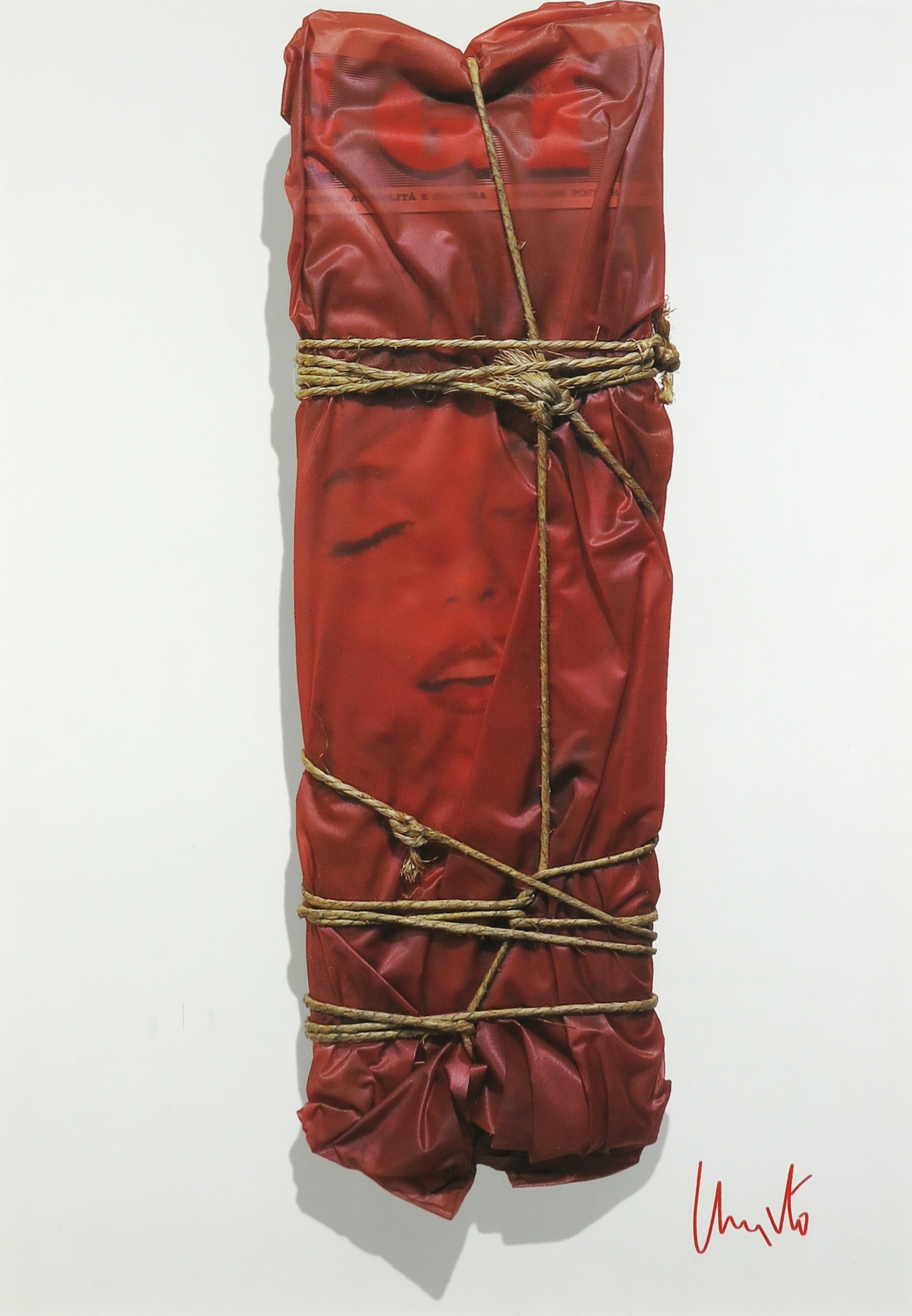 Wrapped Magazine werd in 1963 door Christo vervaardigd. Door het inpakmateriaal schijnt het magazine met coverfoto van Marilyn Monroe door. De iconische Monroe was een paar maanden voordat Christo dit werk maakte gestorven.