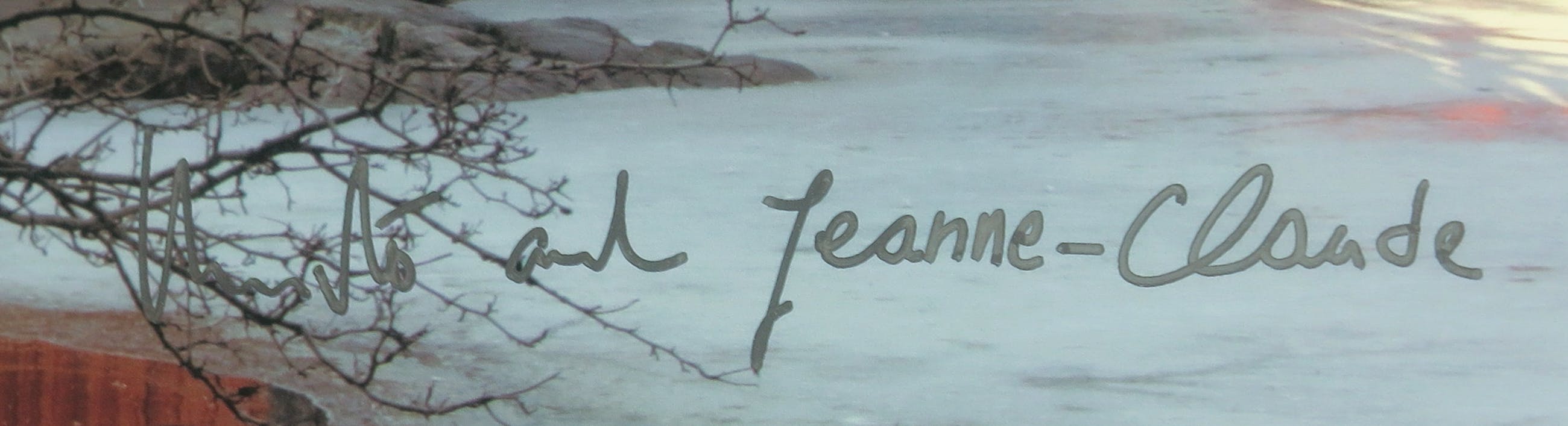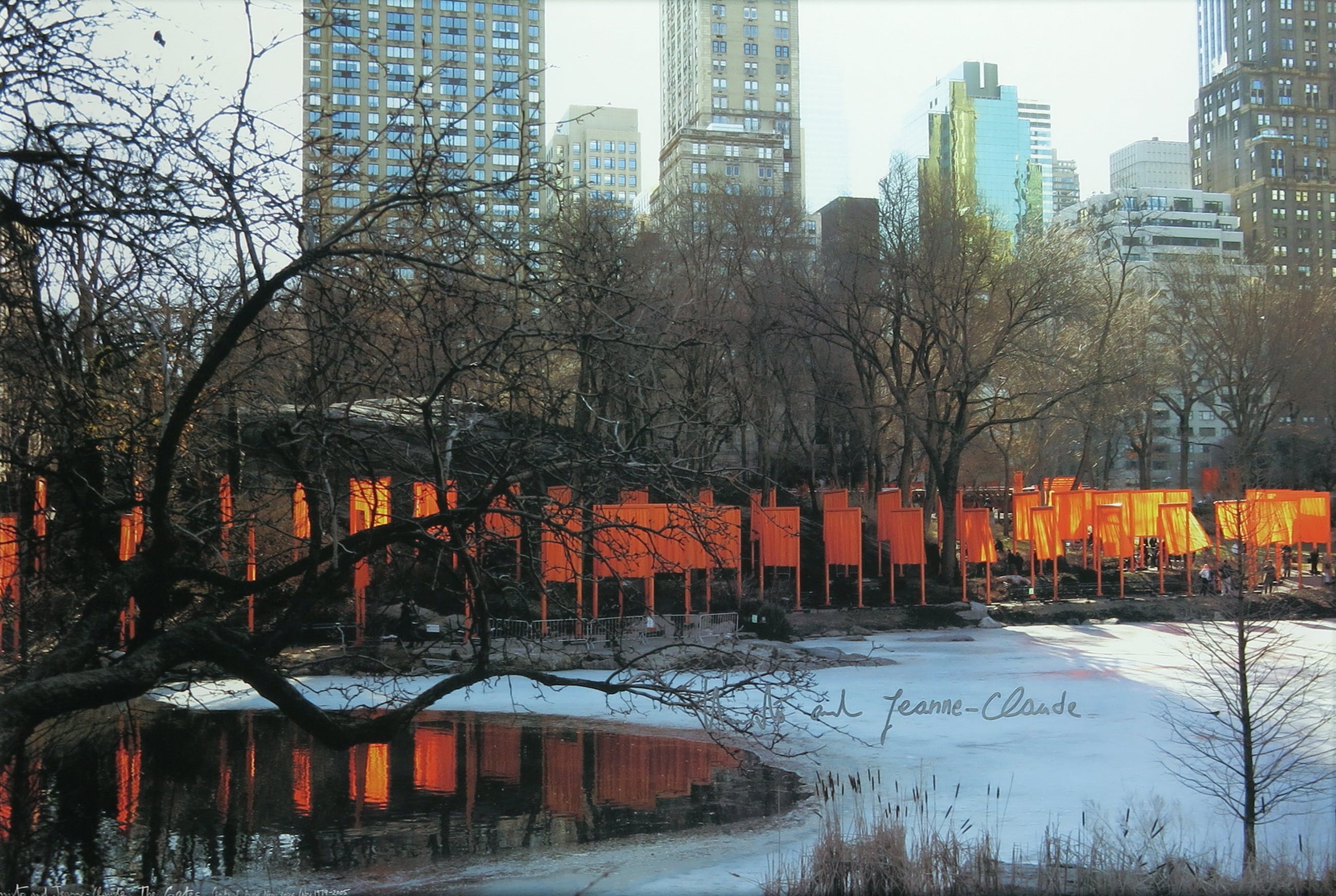 Deze door Christo en door Jeanne-Claude gesigneerde druk (offset) toont het kunstproject The Gates. Bij deze installatie werden meer dan 7500 panelen met vrij hangende oranje gekleurde stof - poorten - geplaatst op de wandelpaden in het Central Park in New York.