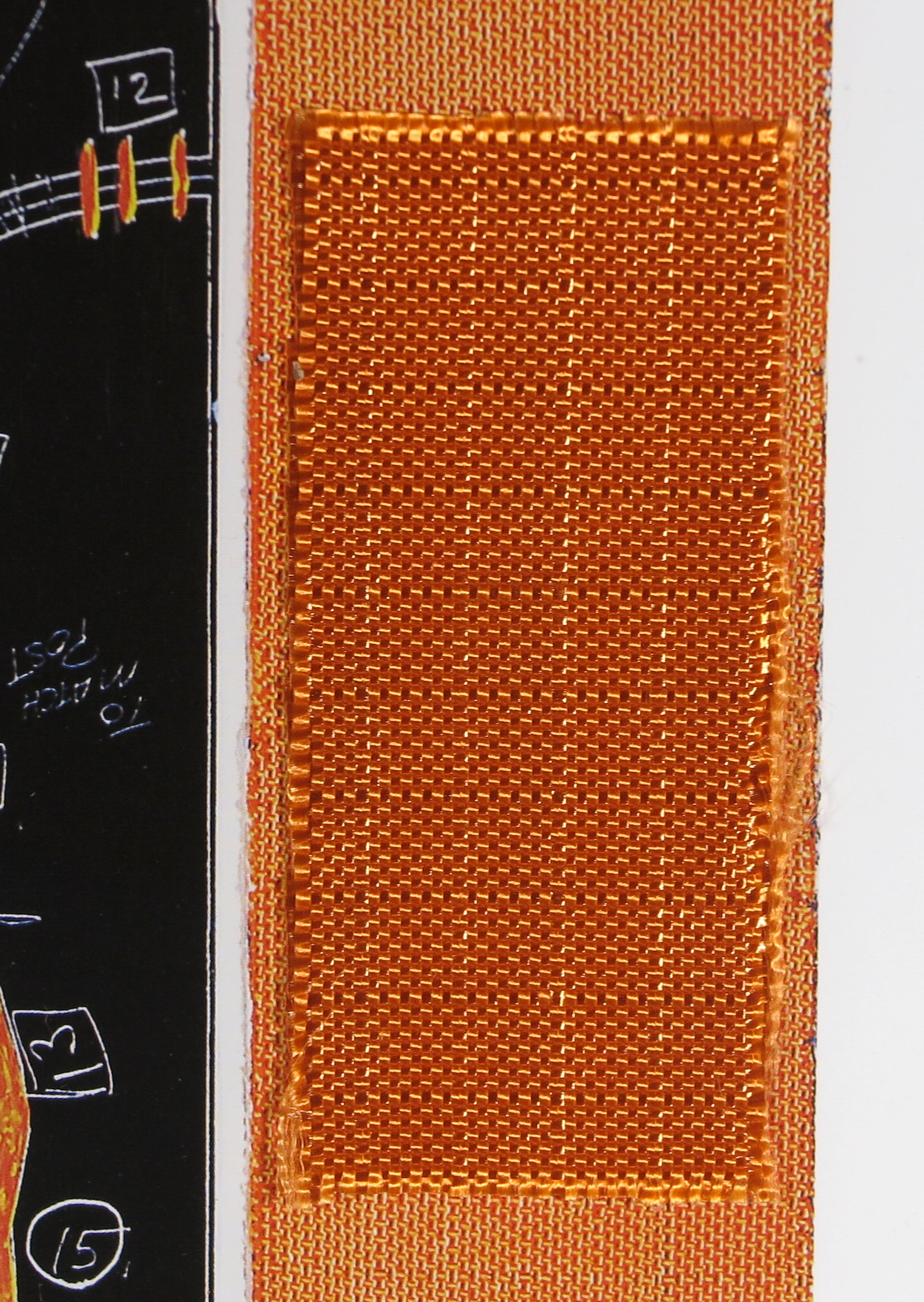 Met rechtsboven een stukje stof, zoals gebruikt in het project.