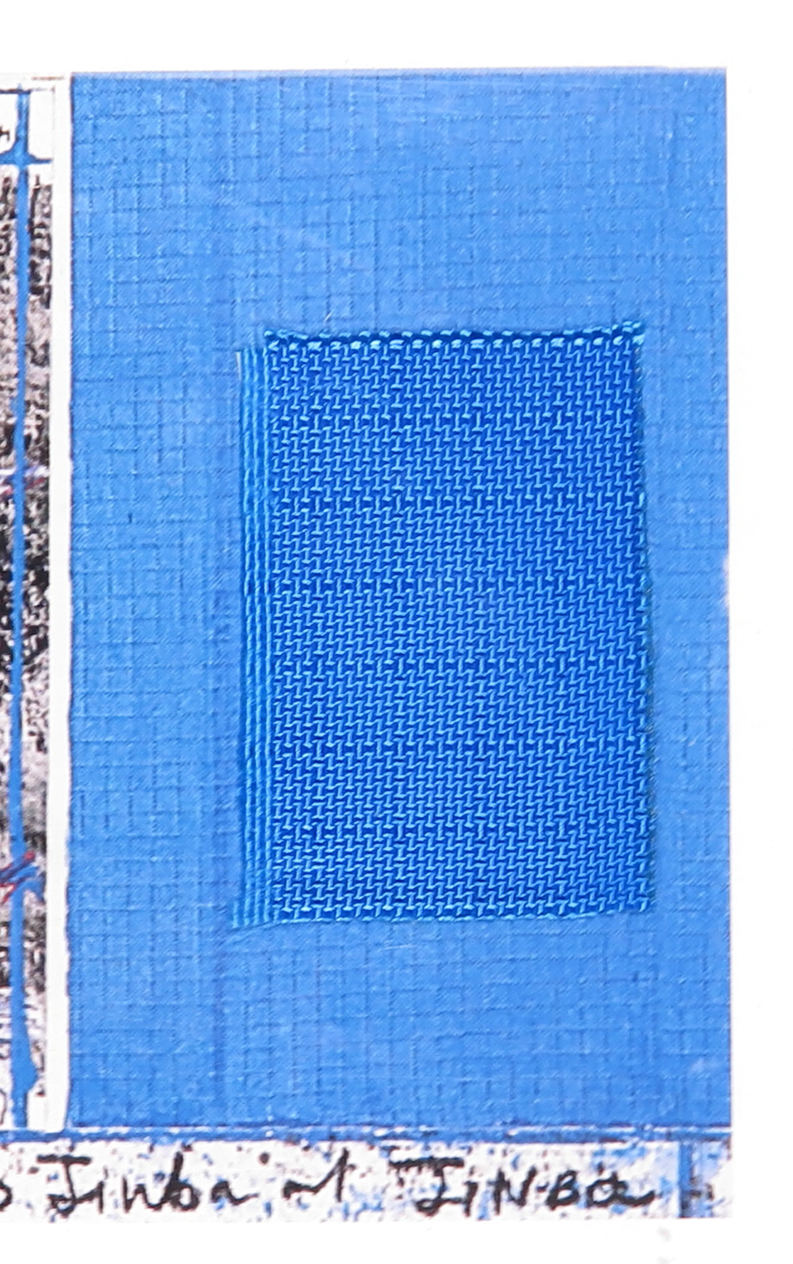 Handgesigneerd door Christo. Rechtsboven een stofmonster, van de stof die is gebruikt in het project.