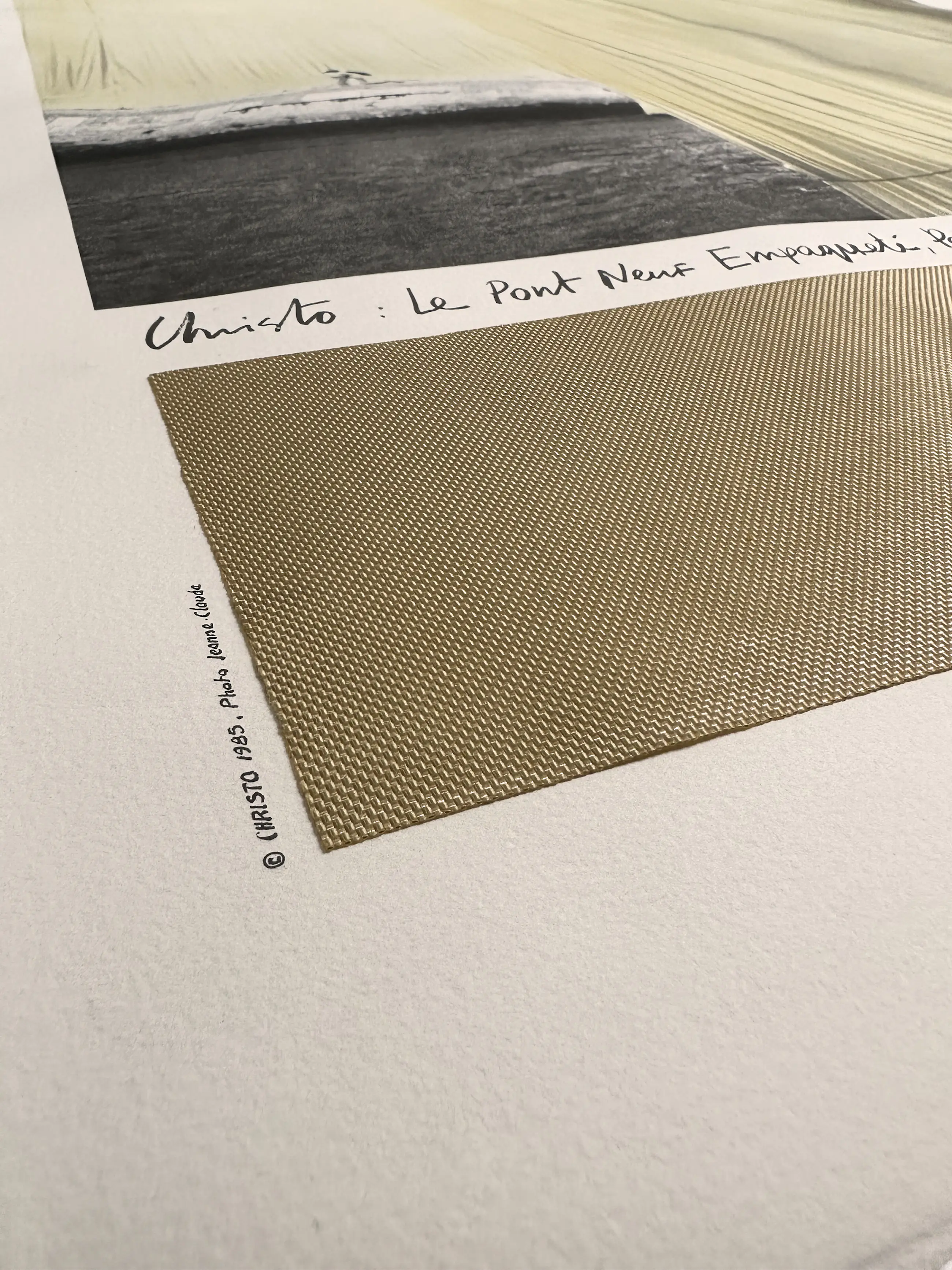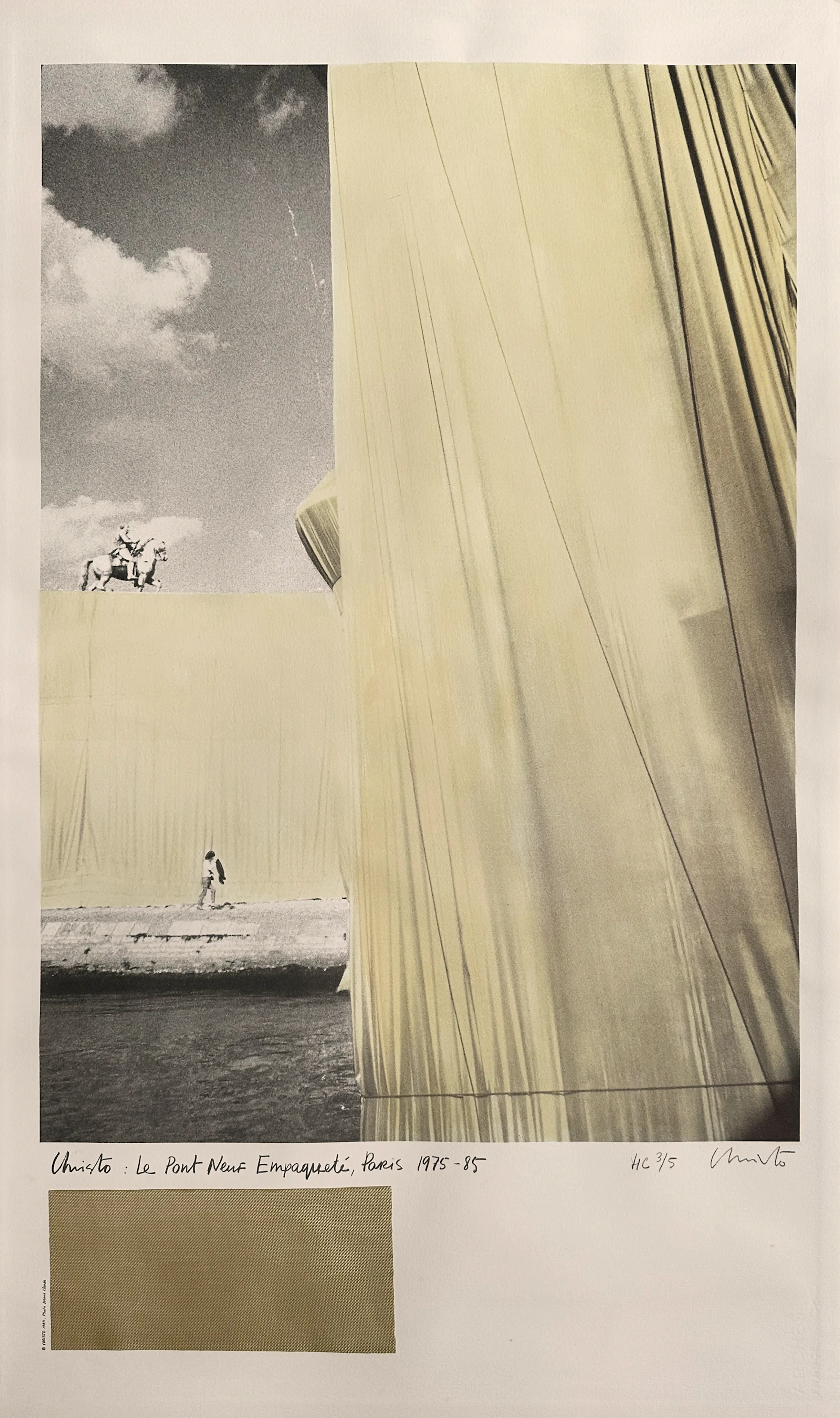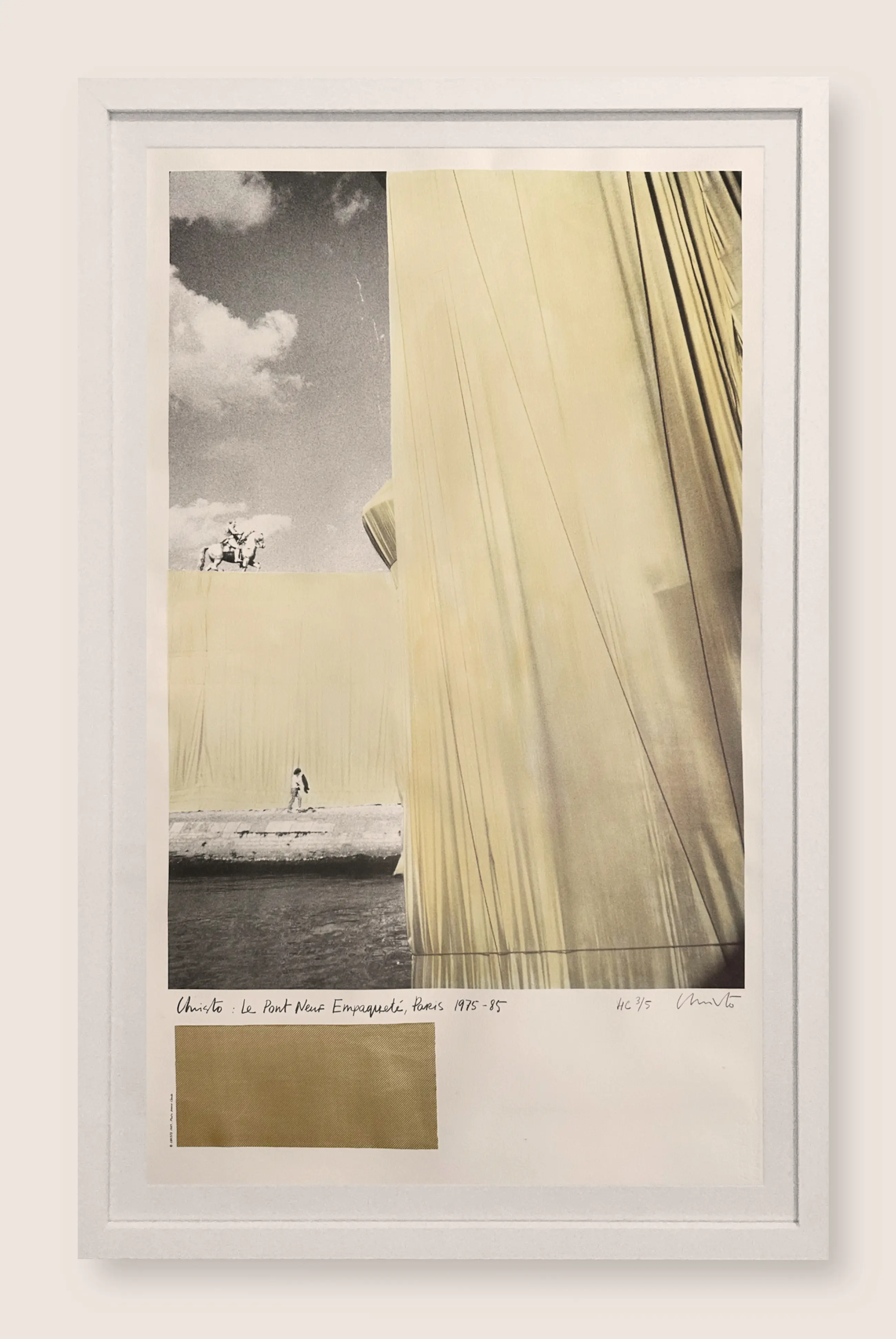Signed HC 3/5 color photolithography and textile collage on Arches. Atelier Graph 2000, imprimeur, Cagnes sur mer Fondation France Liberté, éditeur, Paris / Provenance Cornette De Saint Cyr Paris / Framed in white oak