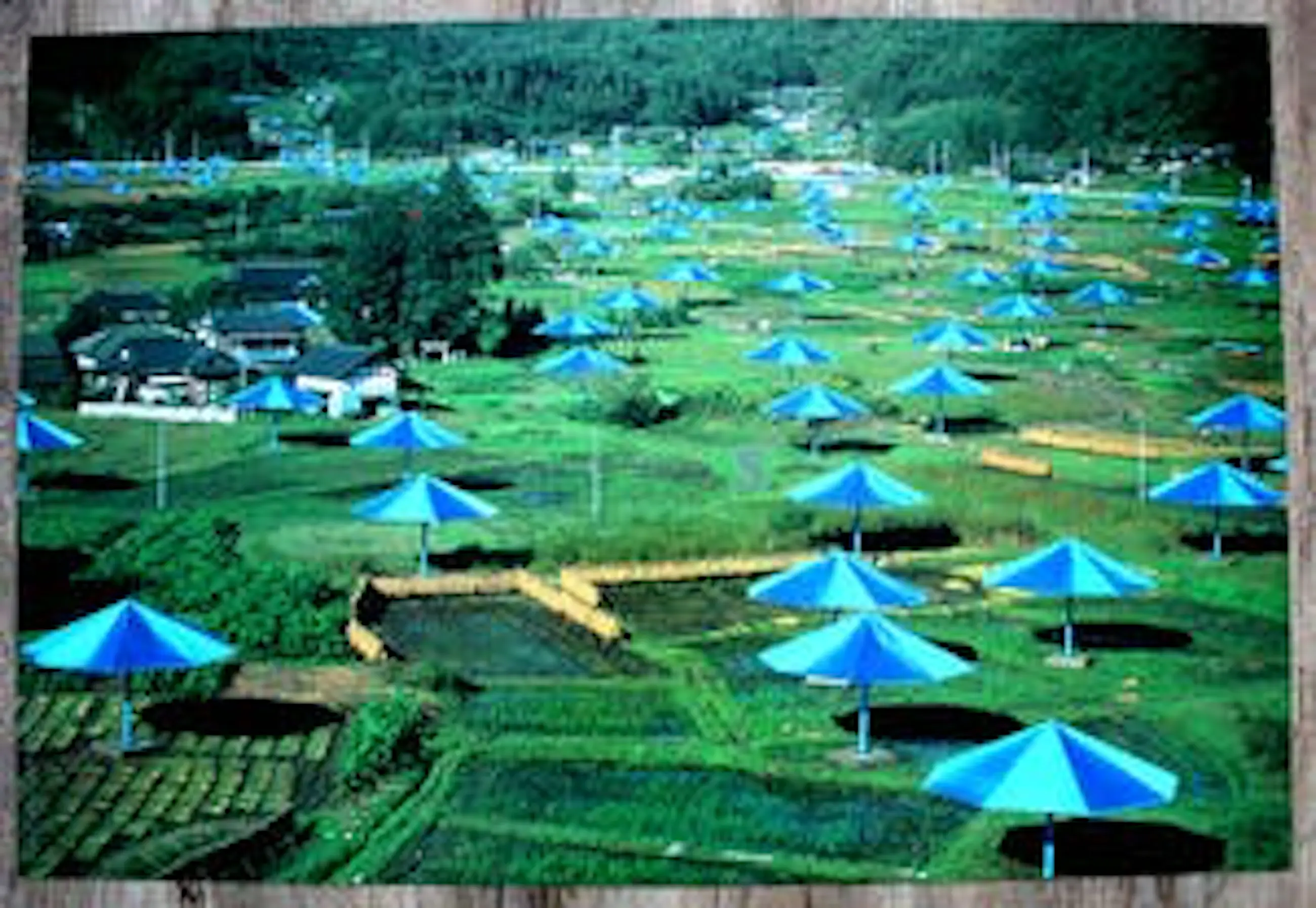 Ongesigneerde fotolitho uit 1991 van Christo. Titel: The Umbrellas, Japan (Ibaraki) - USA 1984 -
