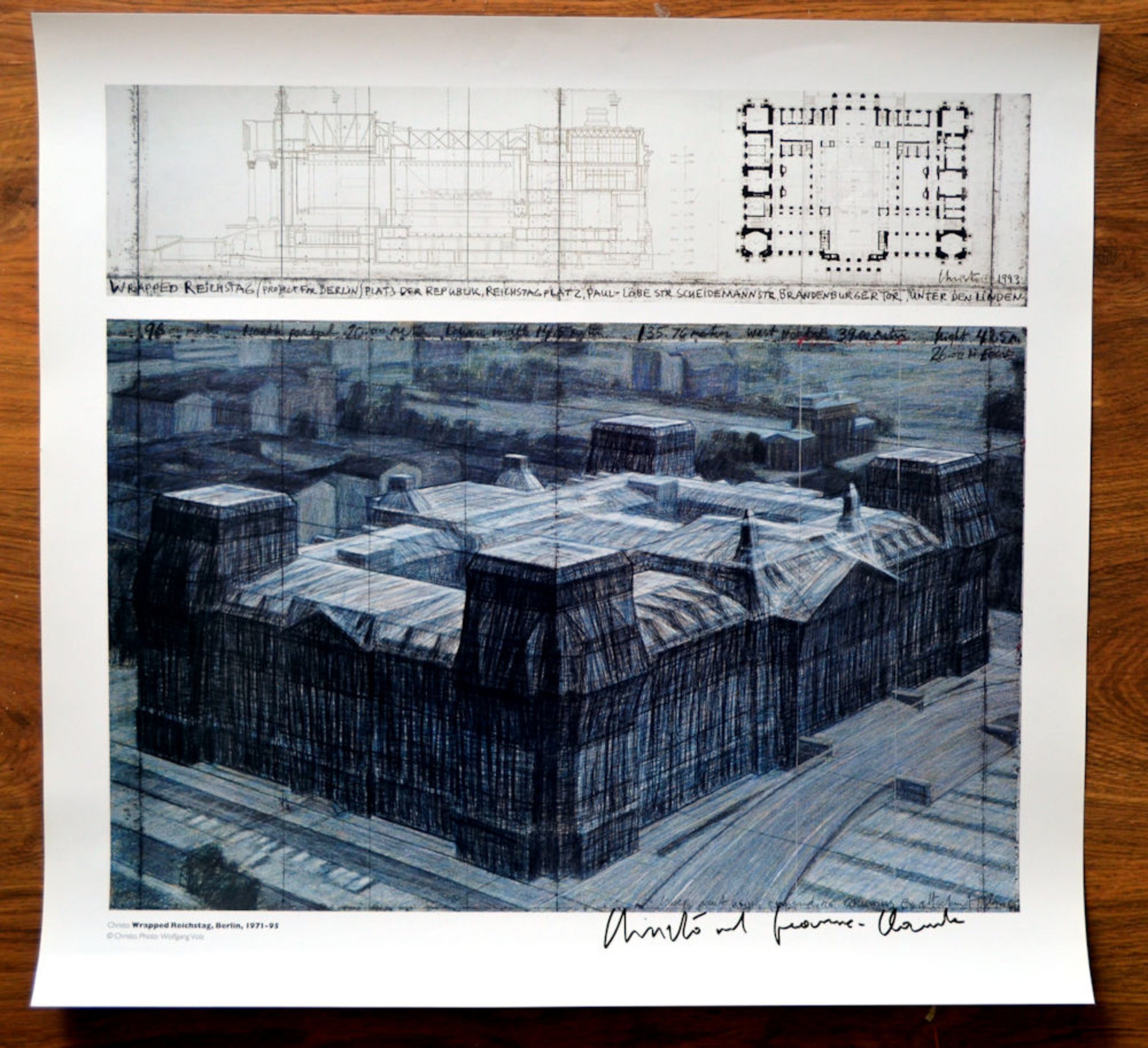 Een offset op glanzend papier en gedrukt in 300 exemplaren ( waarvan een aantal in mijn bezit )Dit werk bevat het beroemde project van Christo And Jeanne Claude: WRAPPED REICHSTAG. Mooi handgesigneerd door Christo and Jenanne Claude. Is nooit ingelijst geweest en komt uit mijn stock van Art Gallery.De afmeting bedraagt: 45 X 48 cm. Zoals steeds bied ik het aan de voordeligste prijs!!!!Wordt aangetekend verstuurd