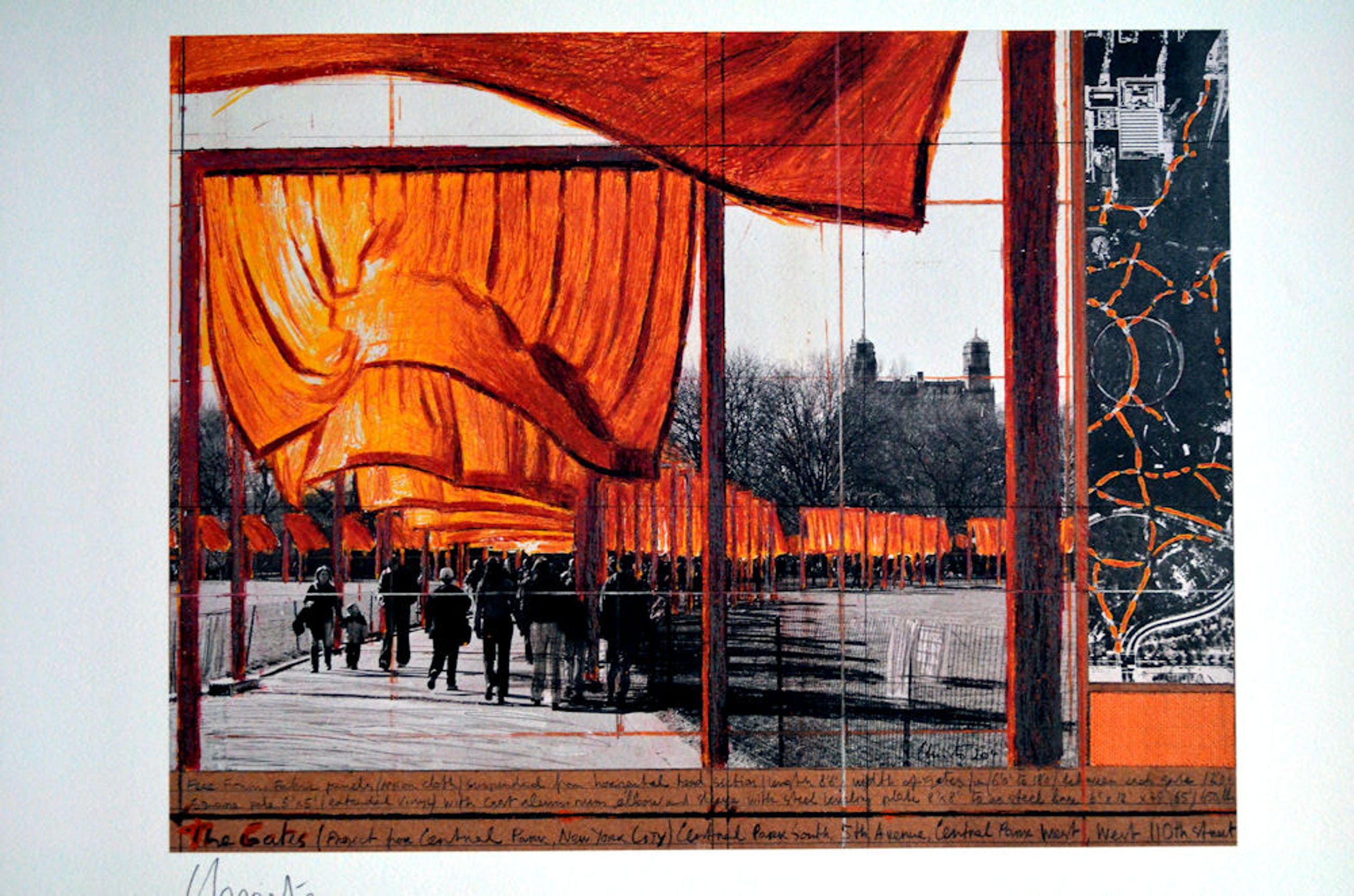 Prachtige offset op gehamerd papier ( karton ) van het projectThe GATES van CHRISTO AND JEANNE CLAUDEIn nieuwstaat/ wegens stopzetting van mijn Art Gallery in het buitenland Formaat: 52 x 62 cm met de hand gesigneerd Prachtig werk gallery prijs schommelt tussen 600 a 800 euro lage startprijs