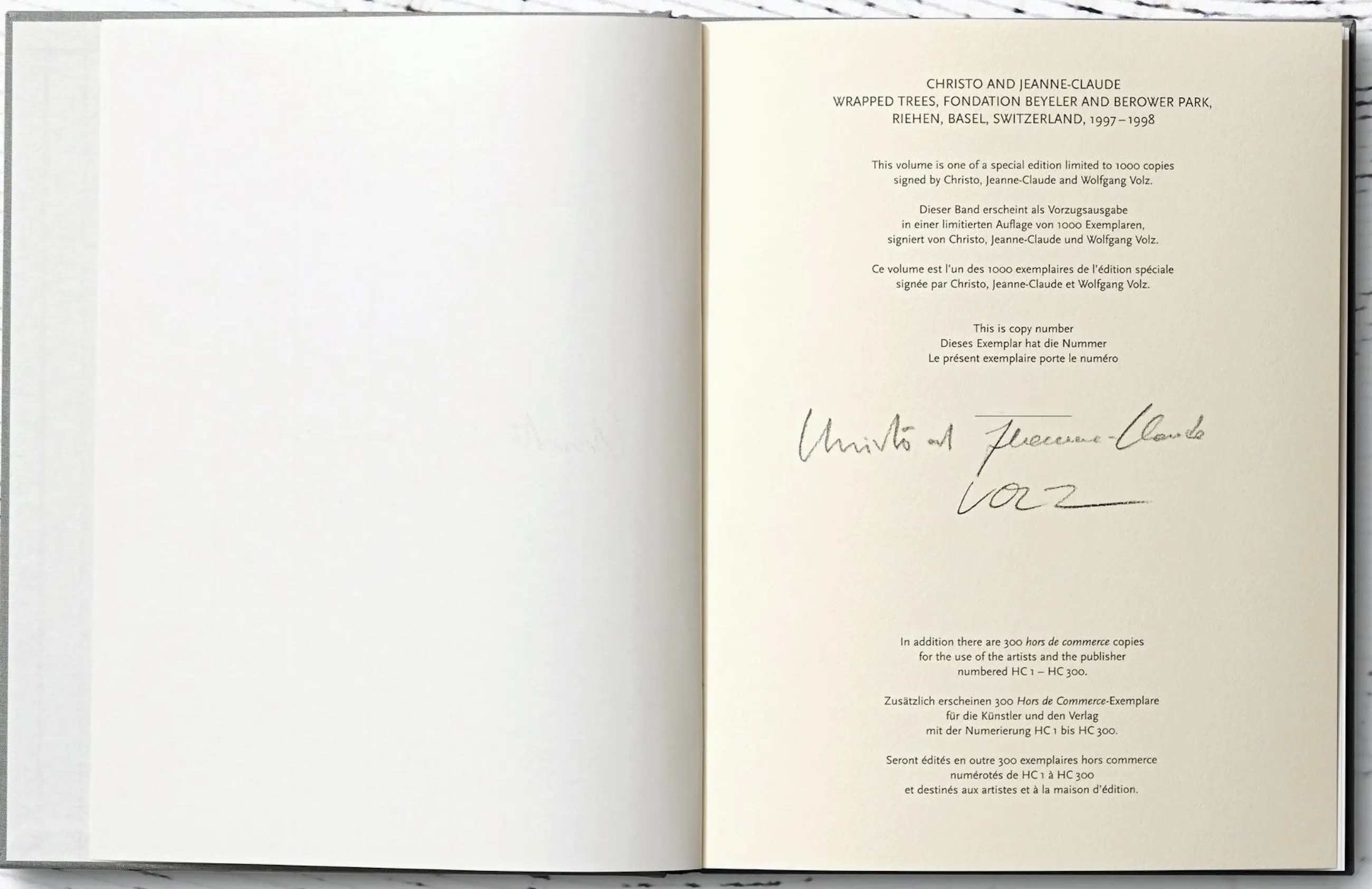 Beperkte oplage van 1.000 exemplaren wereldwijd, genummerd en ondertekend door Christo en Jeanne-Claude en hun projectdirecteur Wolfgang Volz.