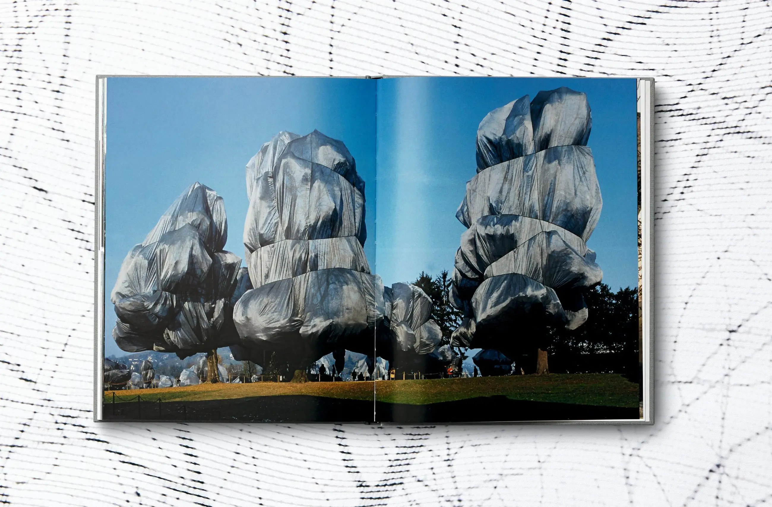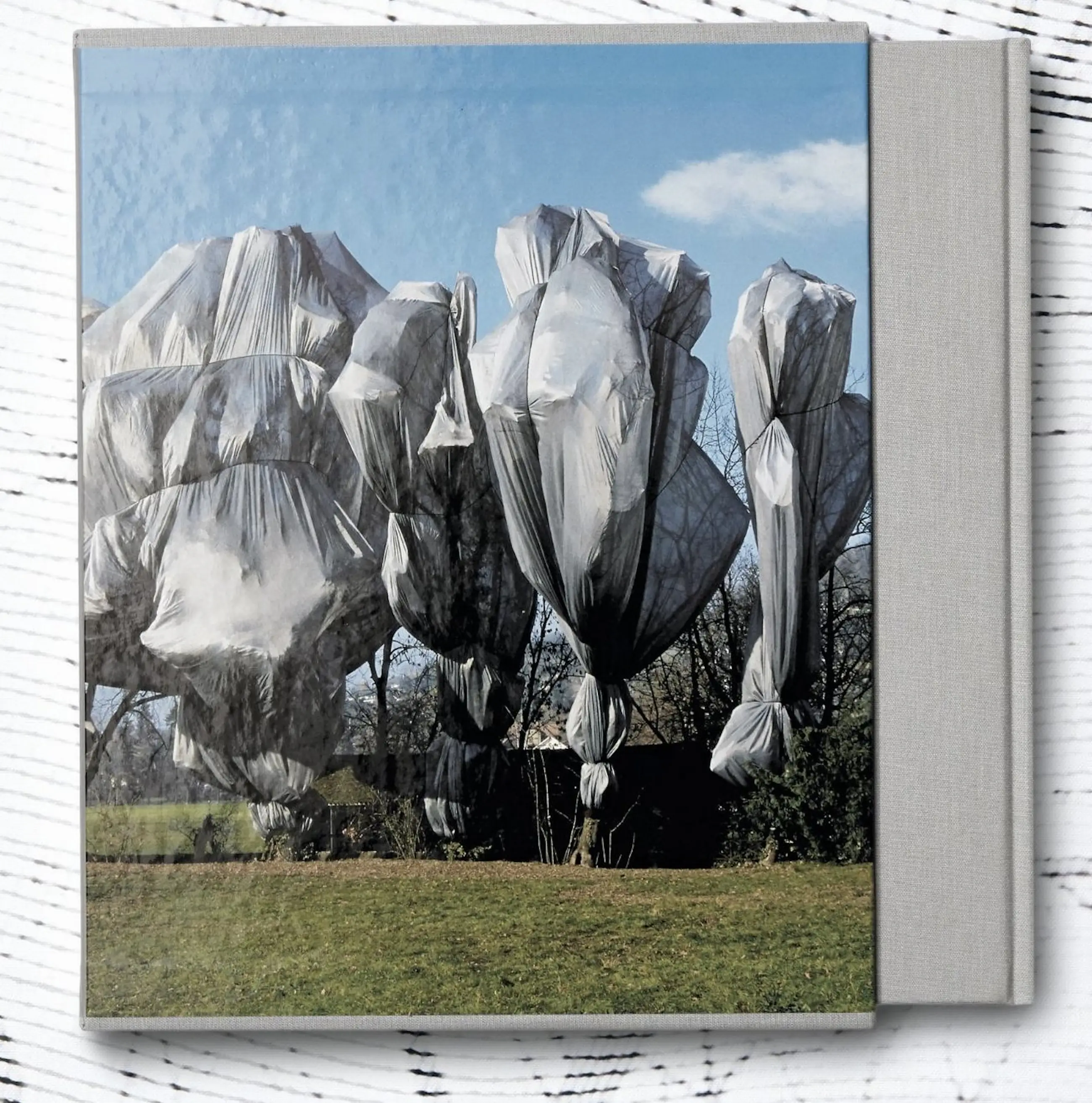 Dit prachtige boekwerk laat zien hoe het project werd geconceptualiseerd en gerealiseerd aan de hand van schetsen, collages en plannen, en ook foto's van de ingepakte bomen.