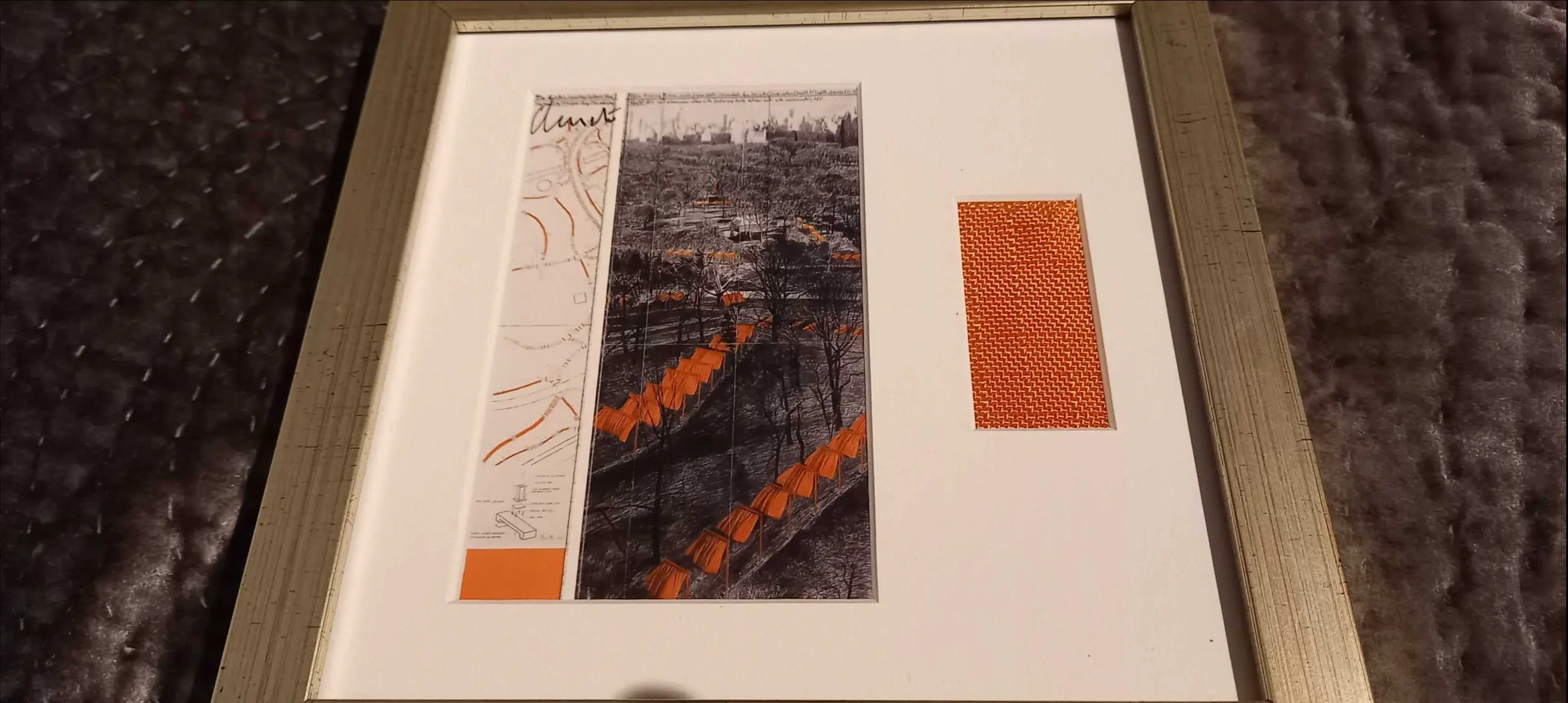 met een origineel stuk stof van de actie in New York in de maat 3 x 6.5 cm Hoogwaardige ingelijst in een stofdichte, zilveren galerijlijst