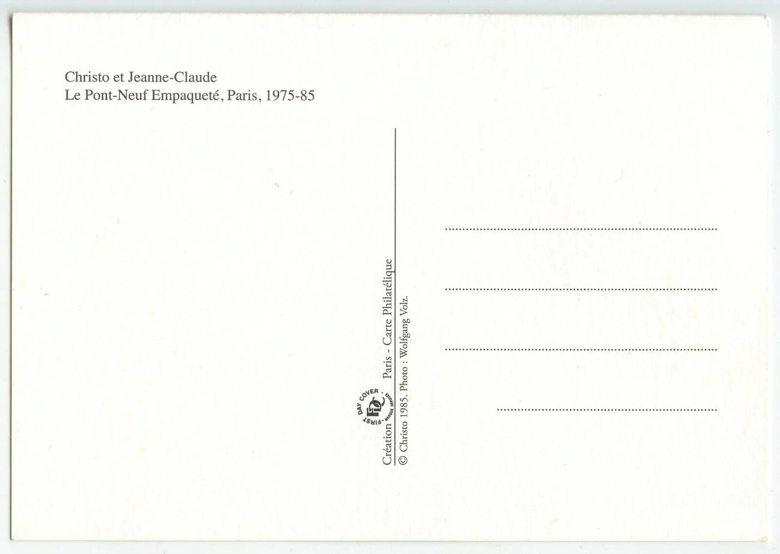 Kunstkaart met foto Wolfgang Volz gesigneerd door Christo en Jeanne-Claude en de Christo-fotograaf Wolfgang Volz plus de bijbehorende postzegel van het Franse postkantoor met hetzelfde motief voor de campagne en de zeldzame annulering op de eerste dag door het Franse postkantoor voor de opening van de actie