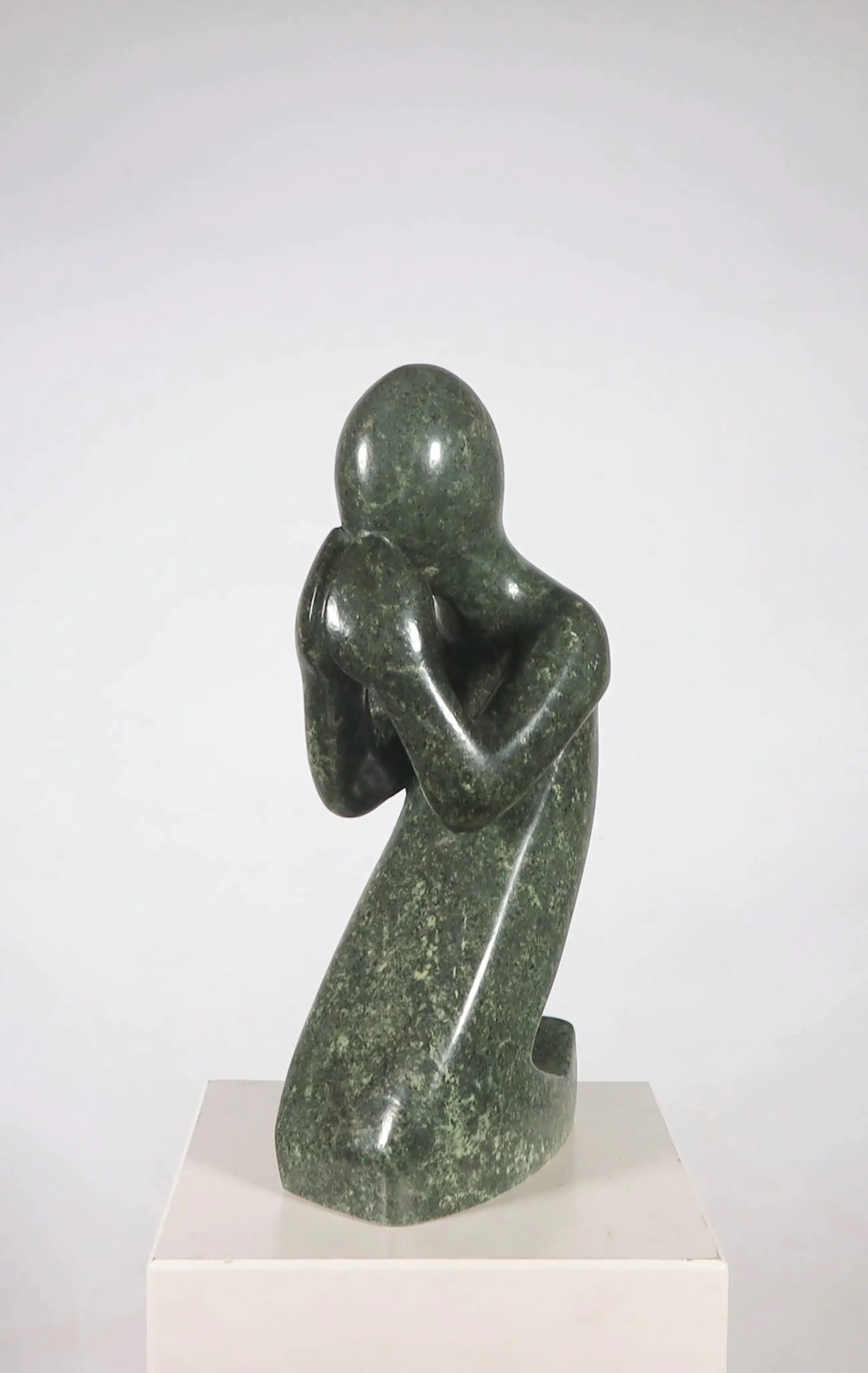 Het kleine zwartstenen beeldje heeft wat oppervlaktekrasjes met name aan de achterzijde. Het grote knielende beeld heeft aan de rechterzijde zeer minimale oppervlaktekrasjes, | |