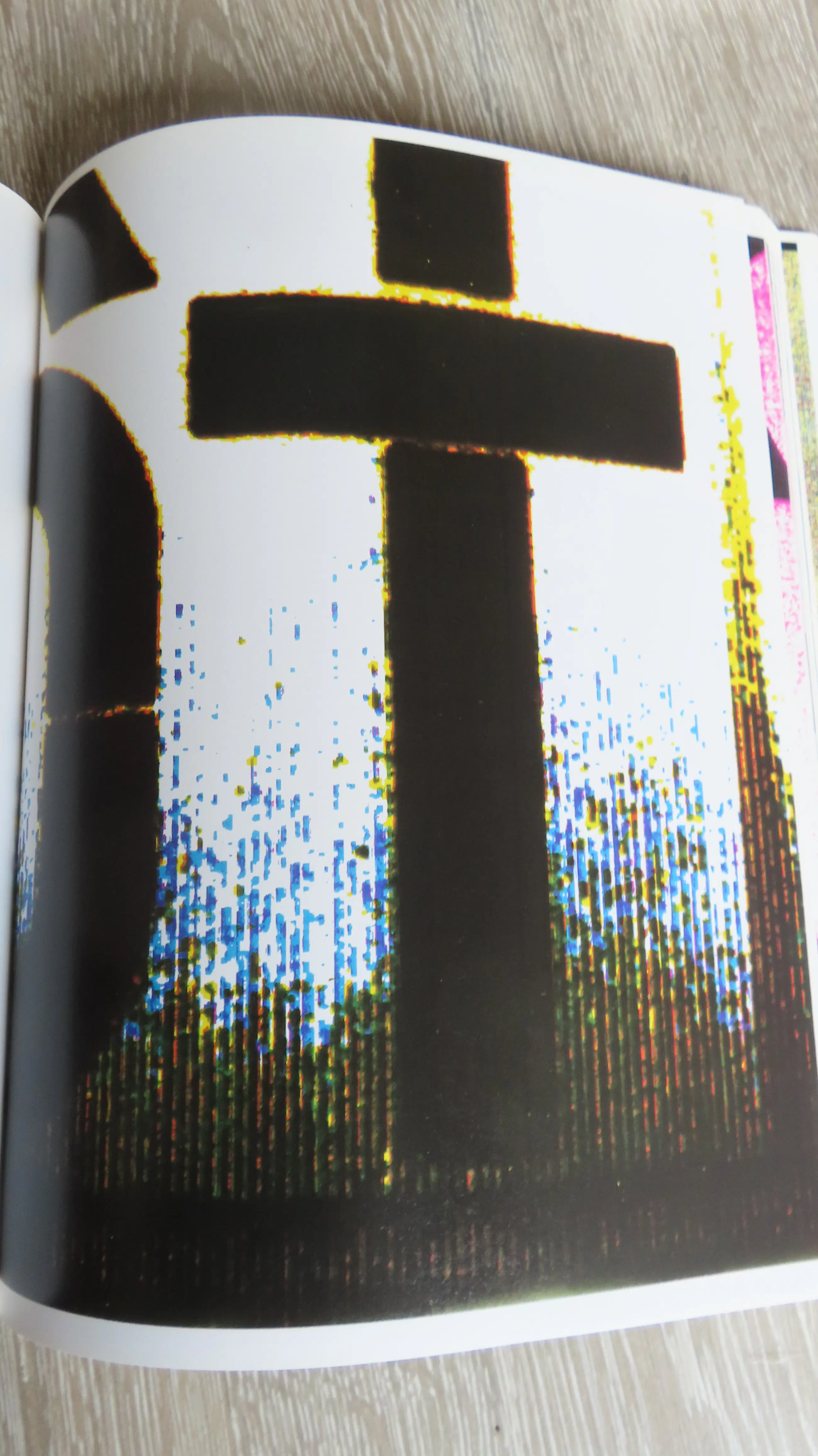 Innovatieve tentoonstellingscatalogus bestaande uit Wool's woord- en patroonschilderijen gefotografeerd en vervolgens gefotokopieerd voor verschillende effecten; vergroot, overbelicht, neonkleurig, onscherp.