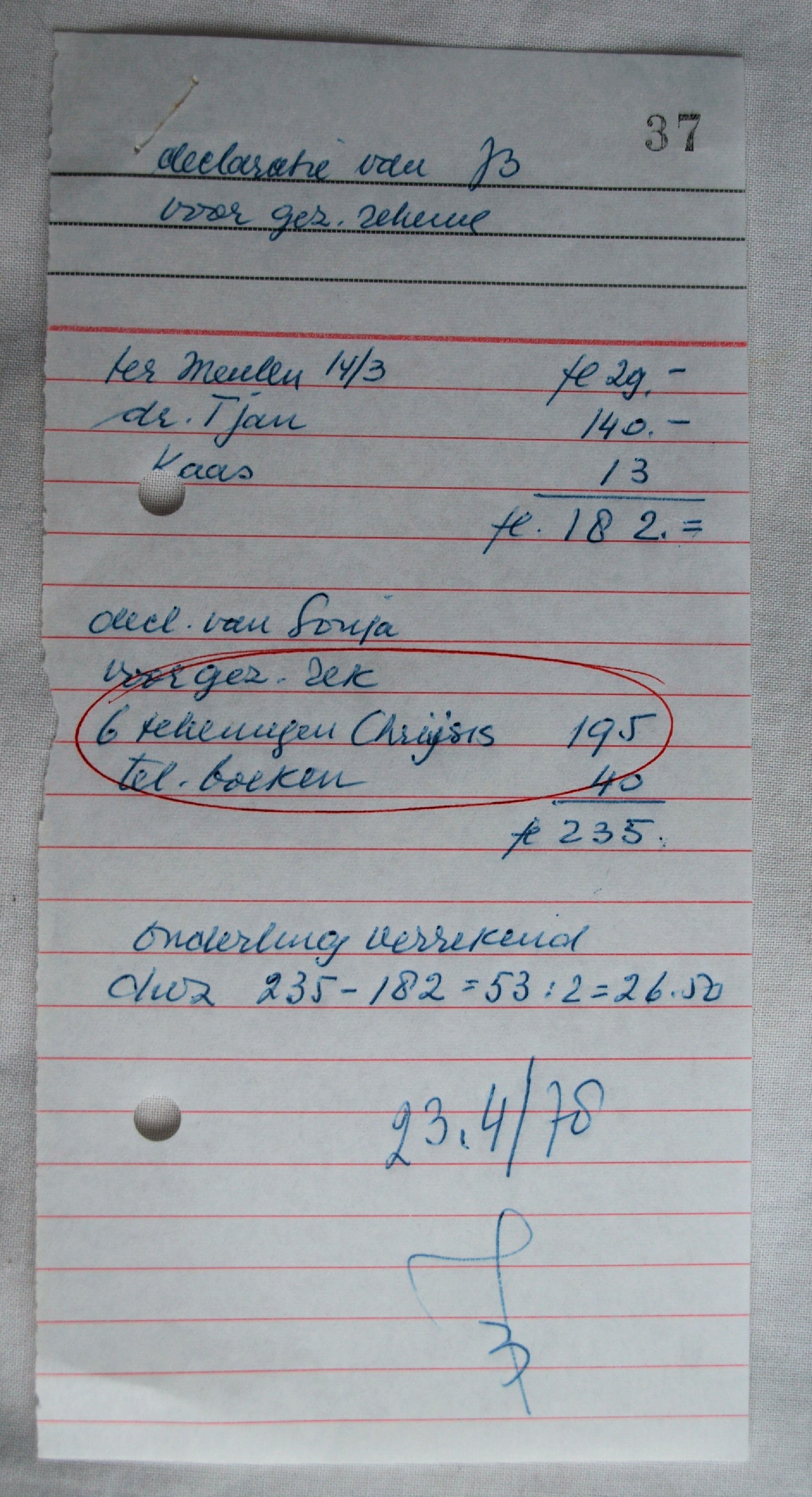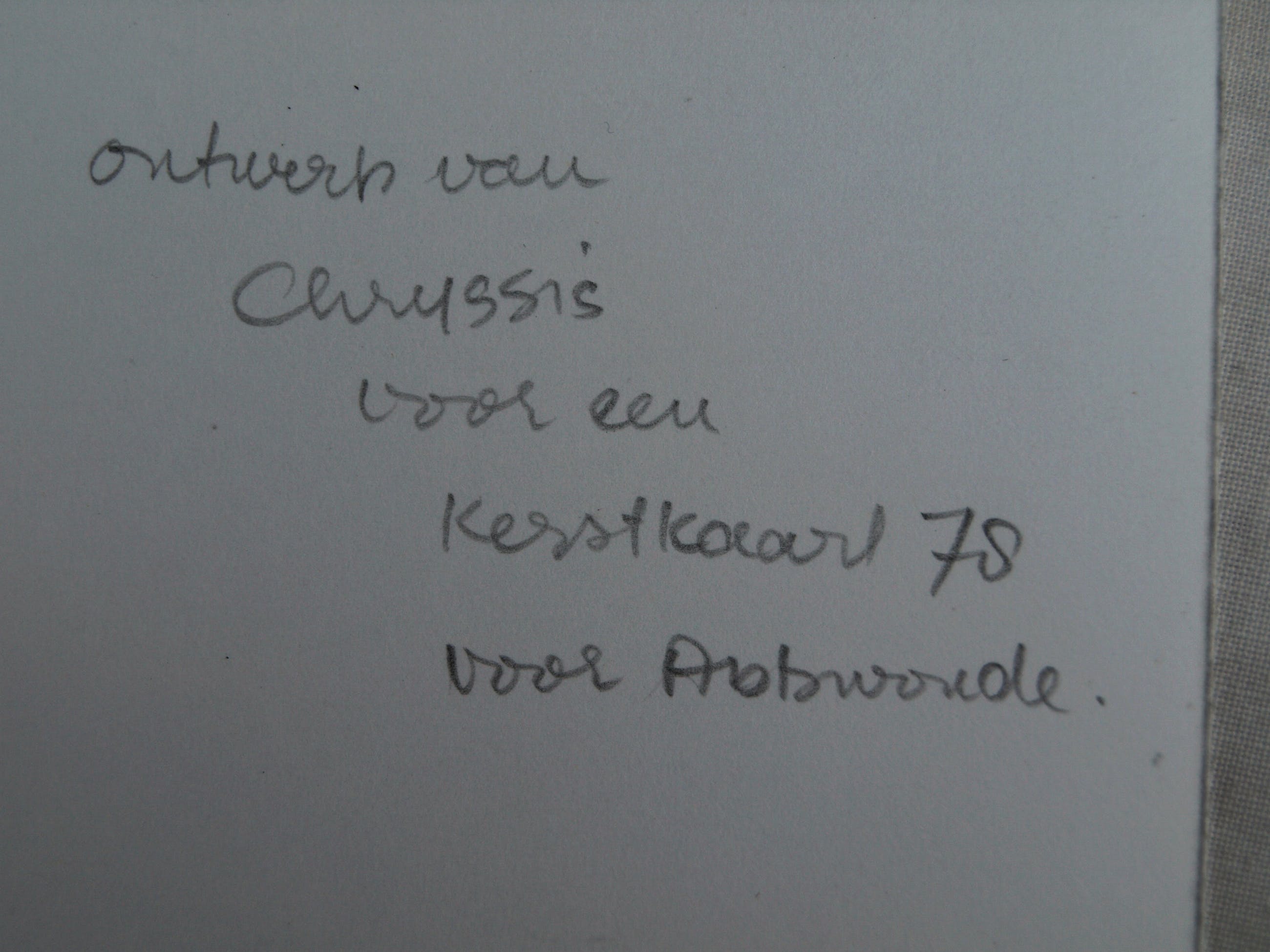 -Herkomst: Uit de inboedel van een kunstverzamelaar. Hij of zij kocht deze tekening samen met nog 5 tekeningen van Chrysiis op 23 april 1978. Dit is op te maken uit een notitie op papier (zie de laatste foto).