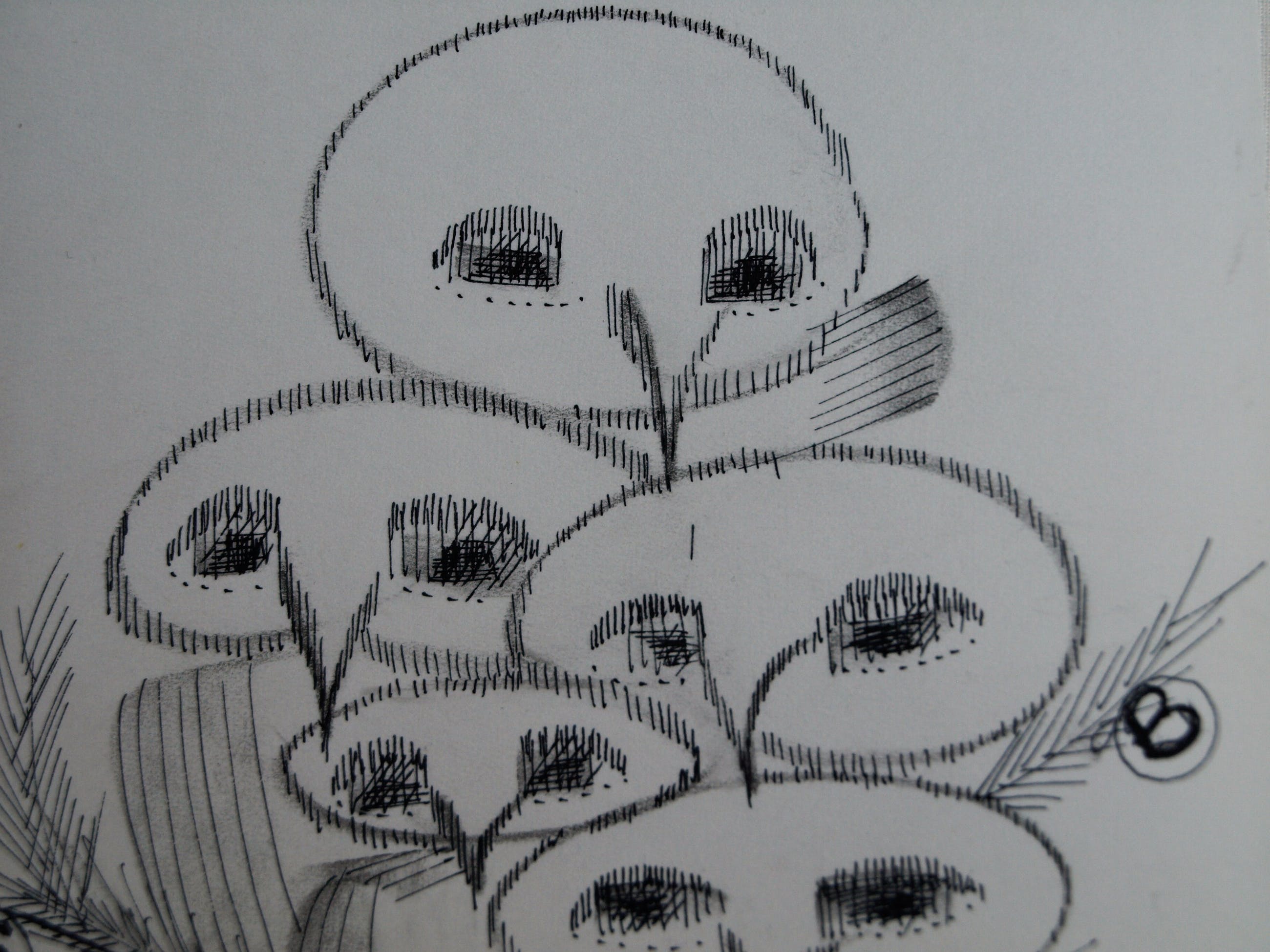 Een inkttekening uit 1978 van de Grieks / Nederlandse kunstenares Chrysiis (1938).