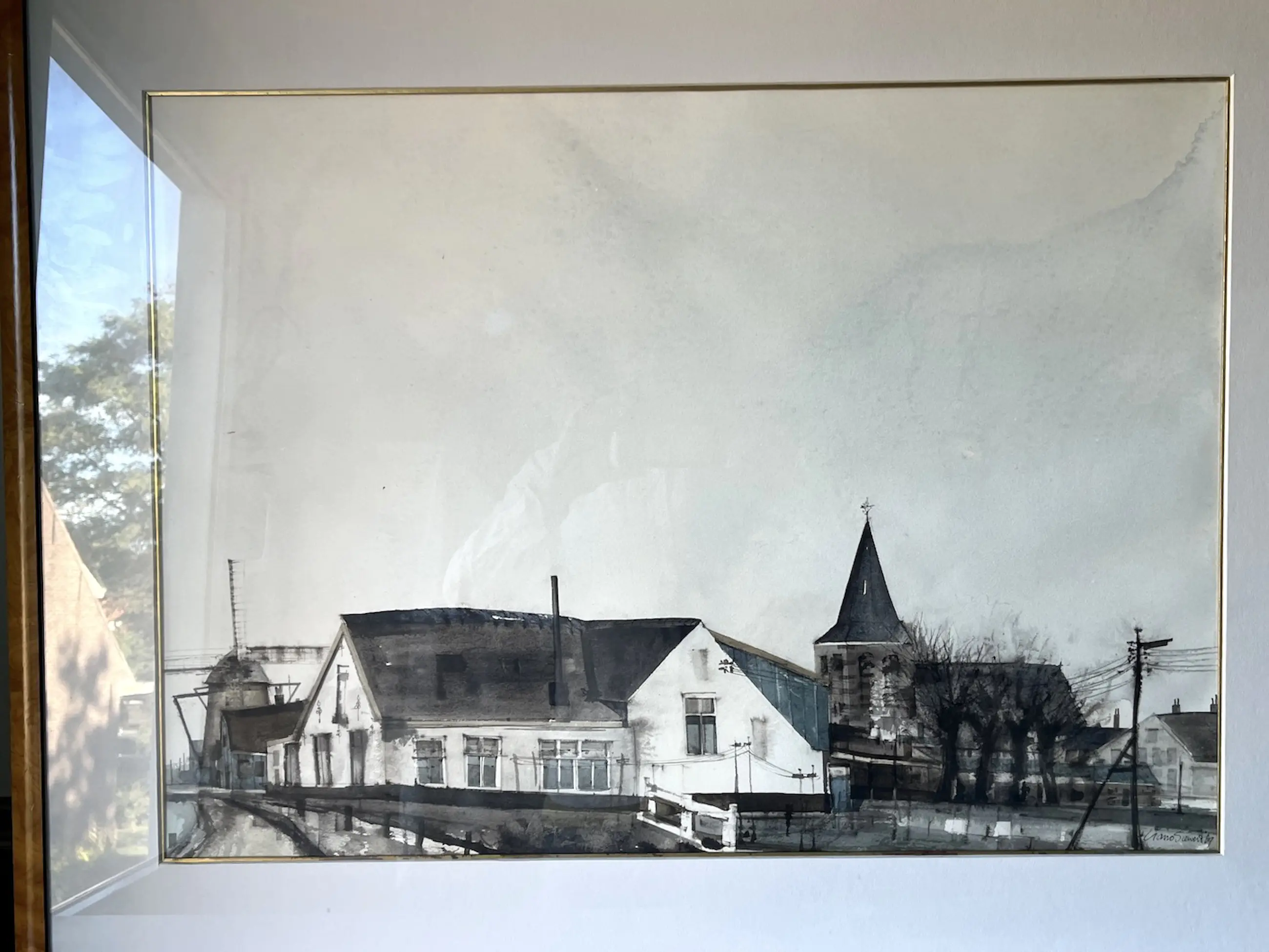 JC 664 SCH Ciano Siewert Dorpsgezicht Aquarel 1969 52 x 72 cm 73 x 92 cm Prachtig ingelijst