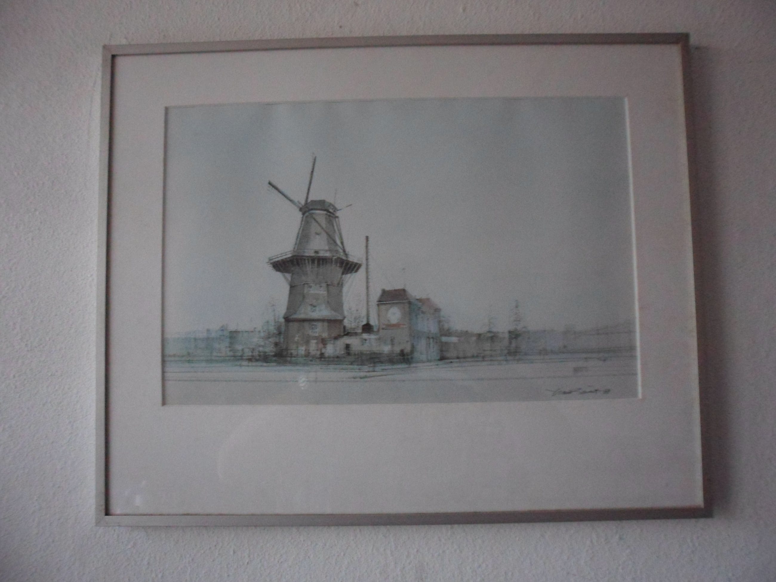 Ciano Siewert, een mooie litho van de Amsterdamse Korenmolen.