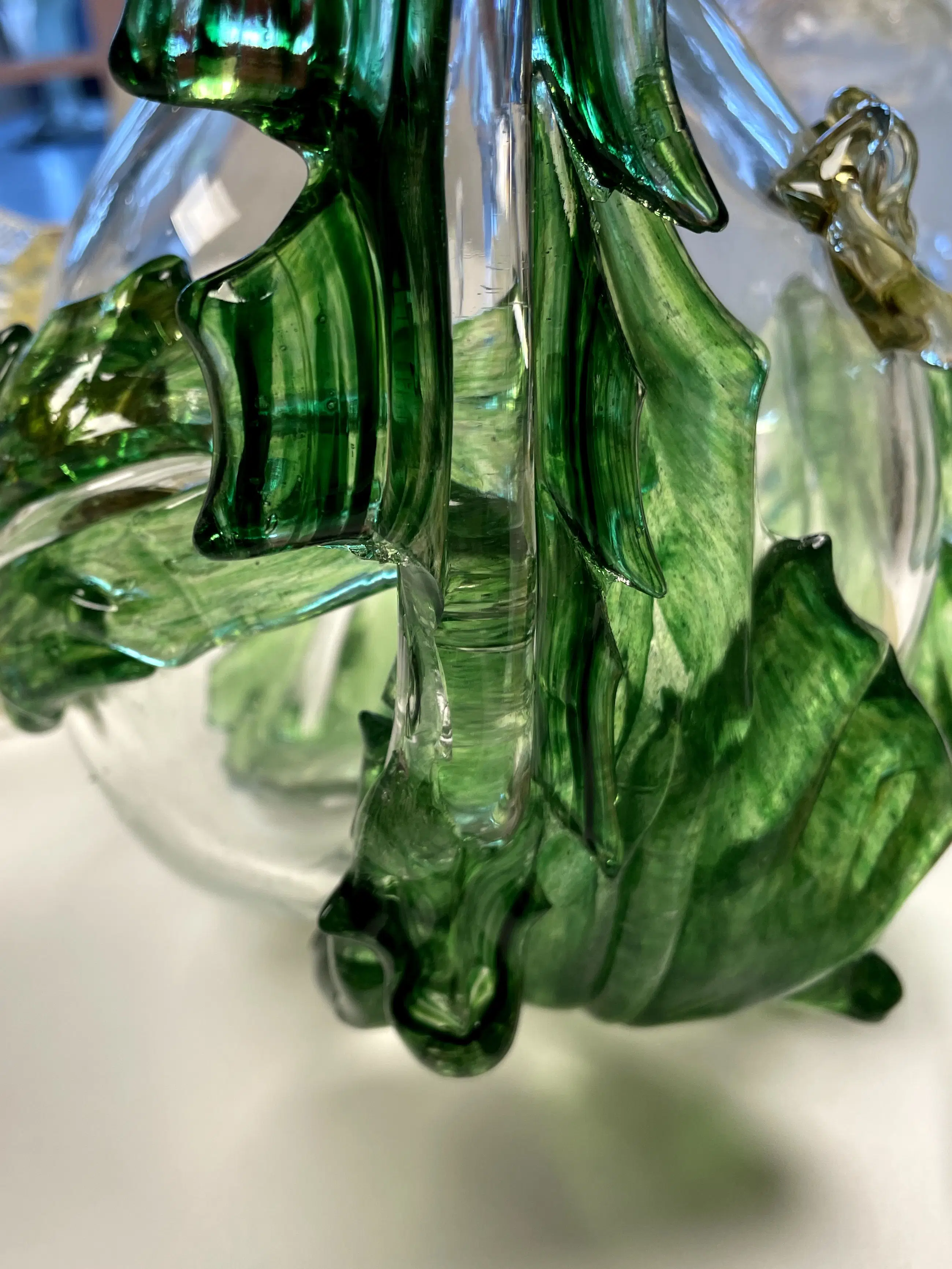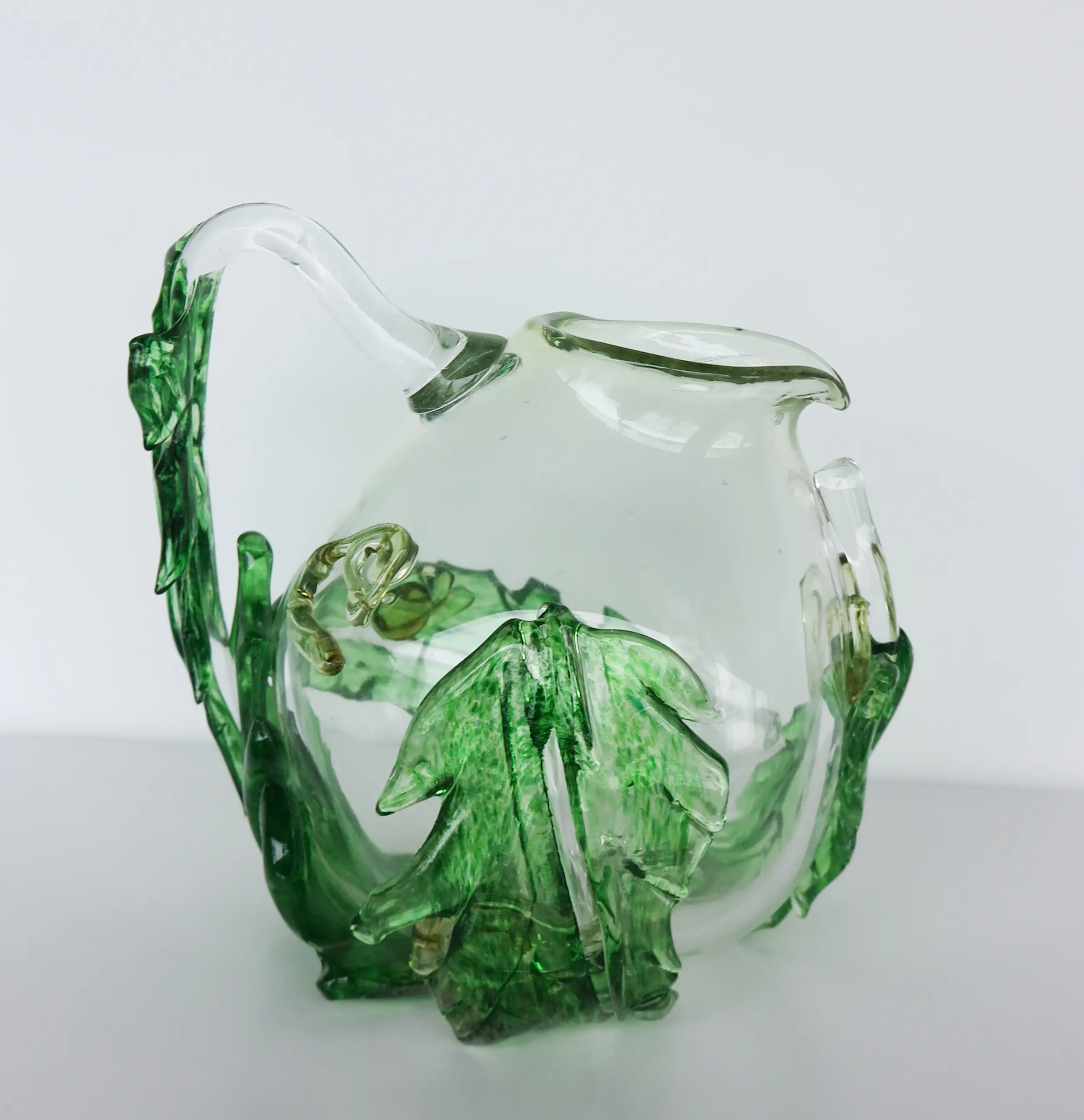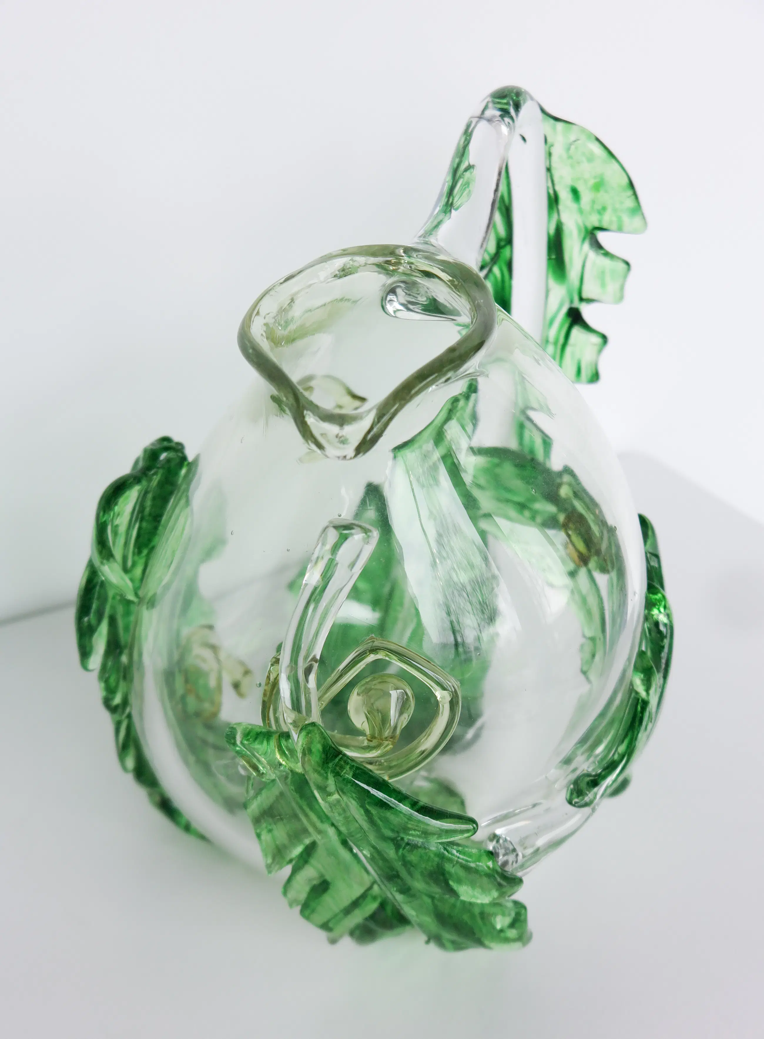 | Van het handvat lijkt een stukje groen 'blad' afgebroken aan de onderzijde. | |
