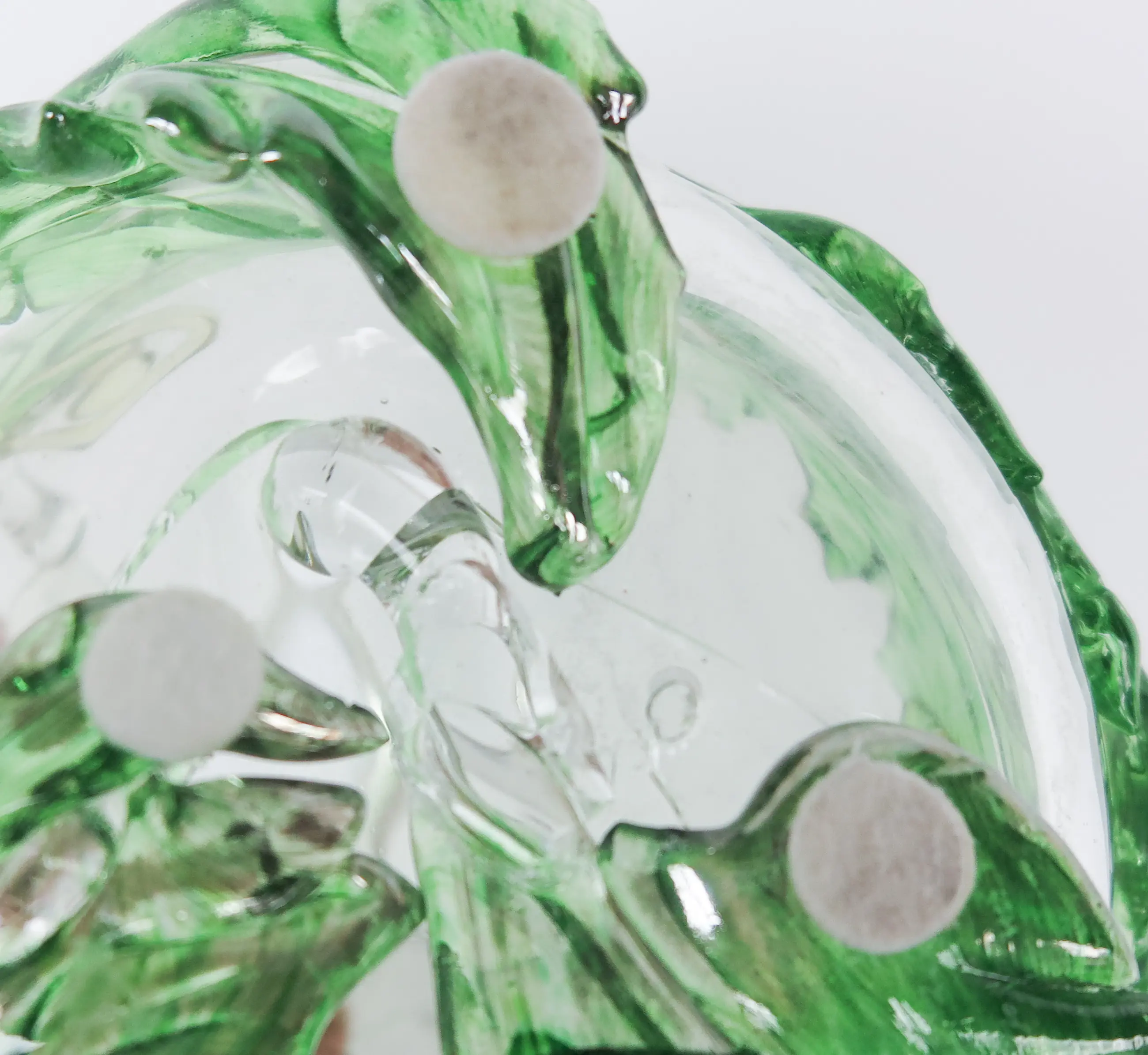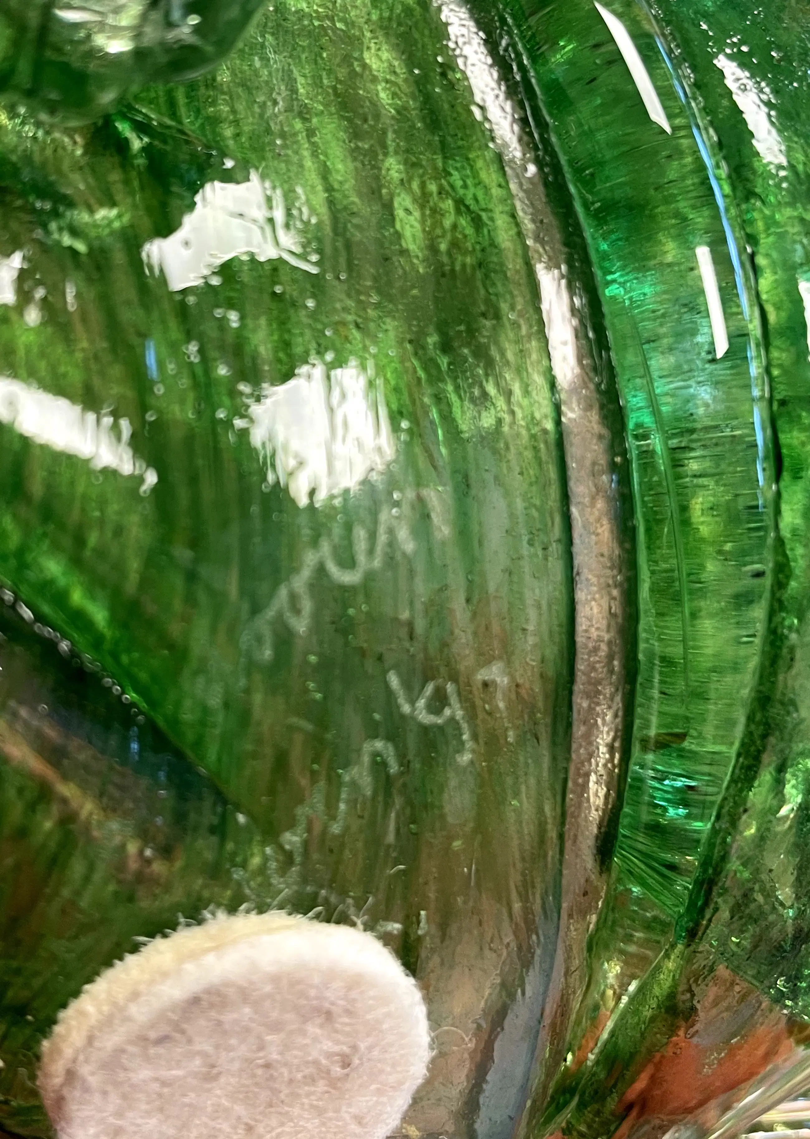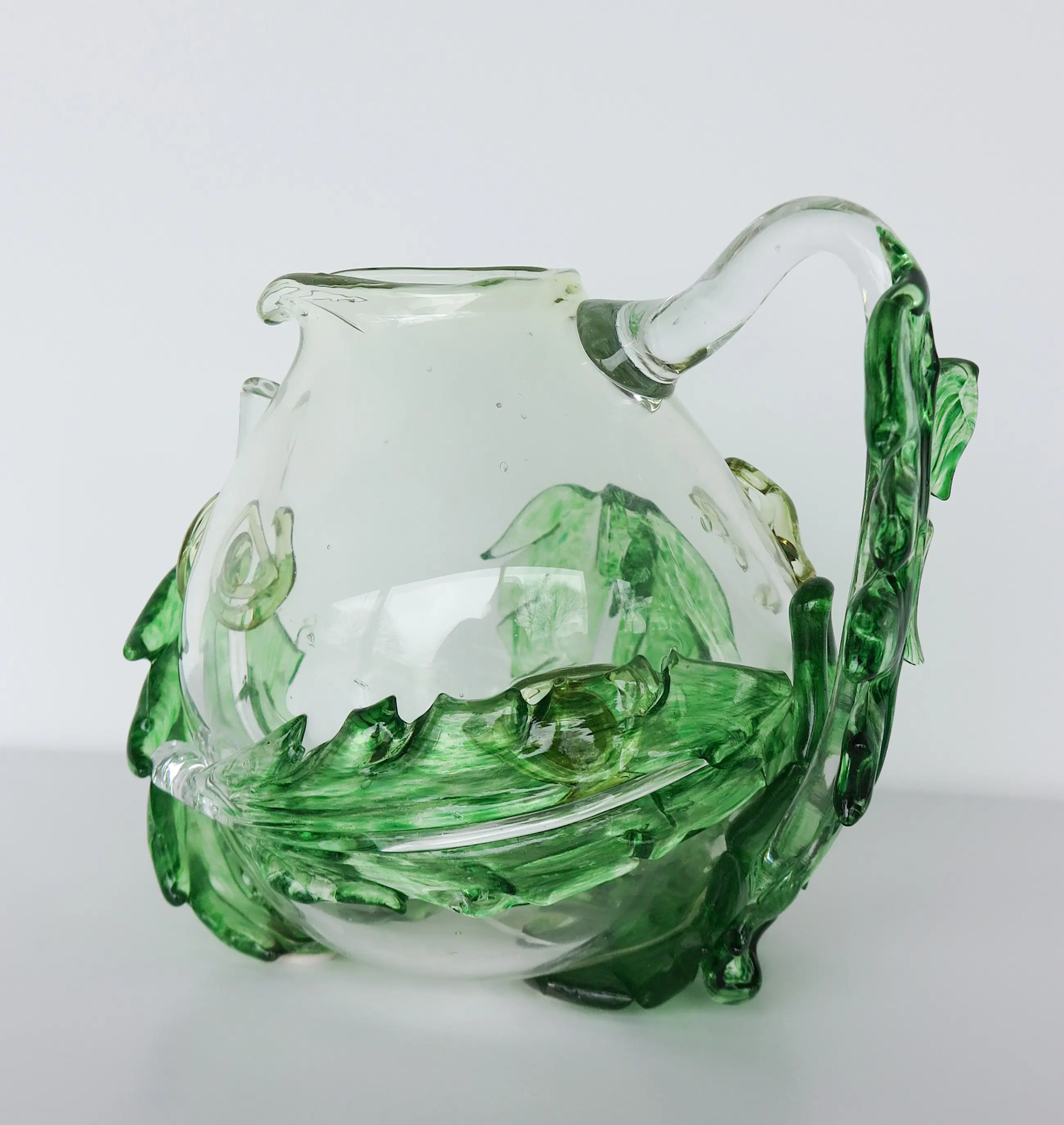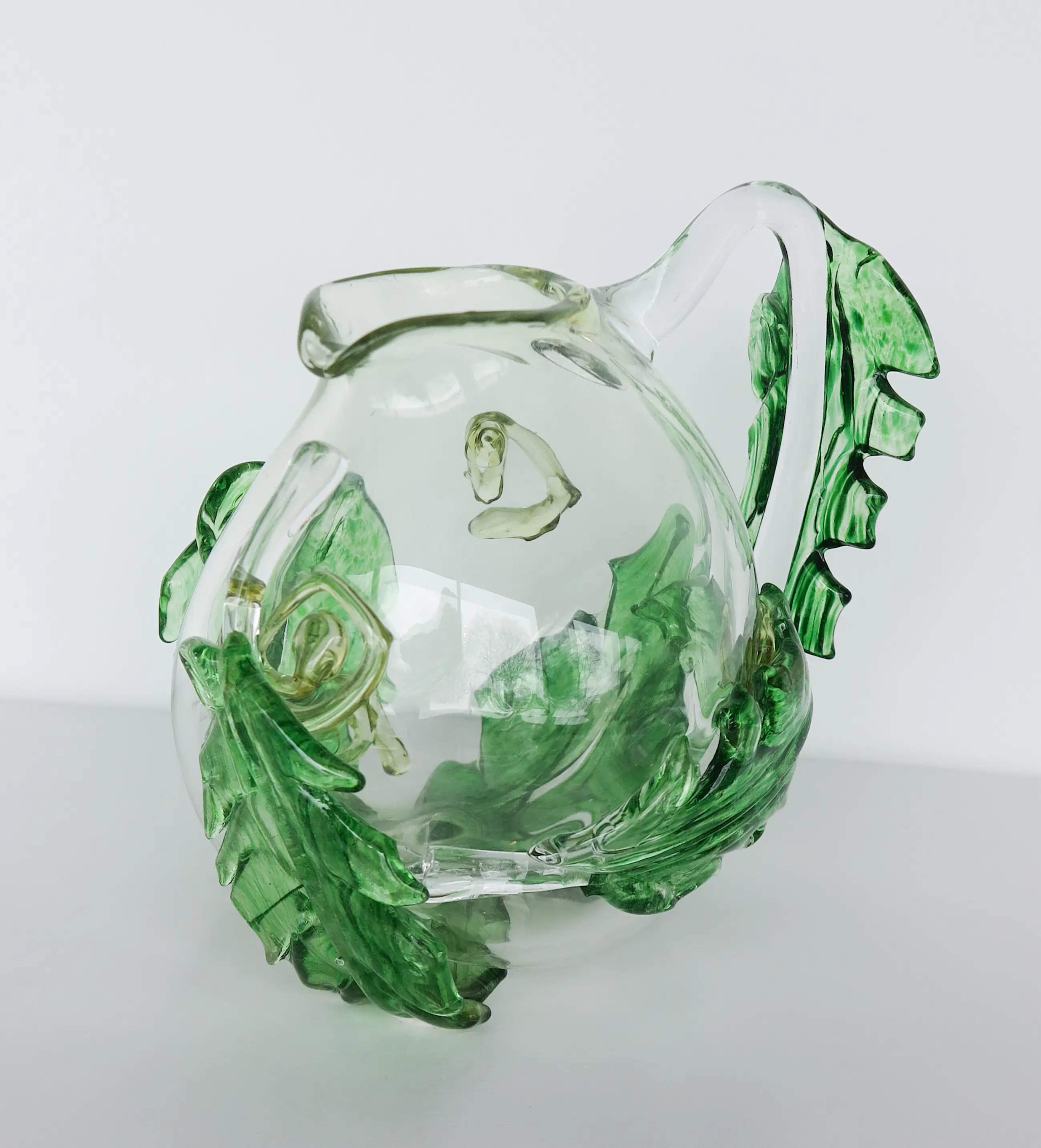 | Van het handvat lijkt een stukje groen 'blad' afgebroken aan de onderzijde. | |