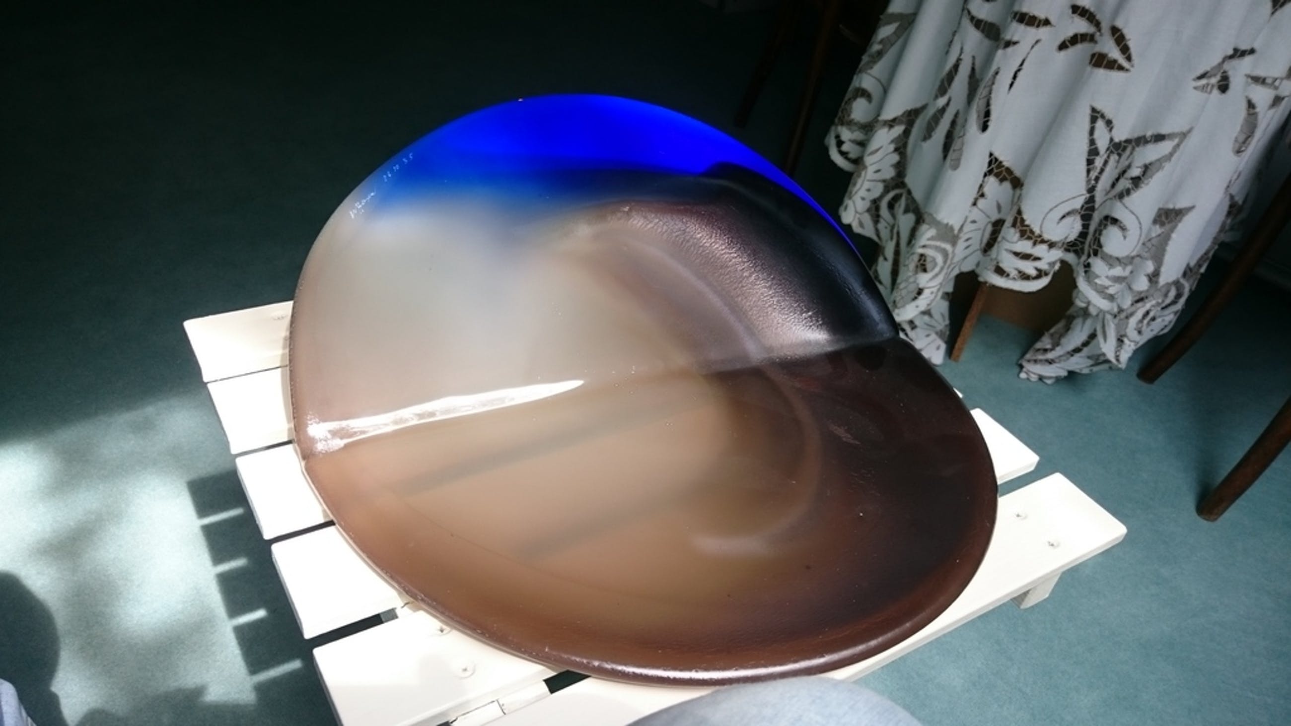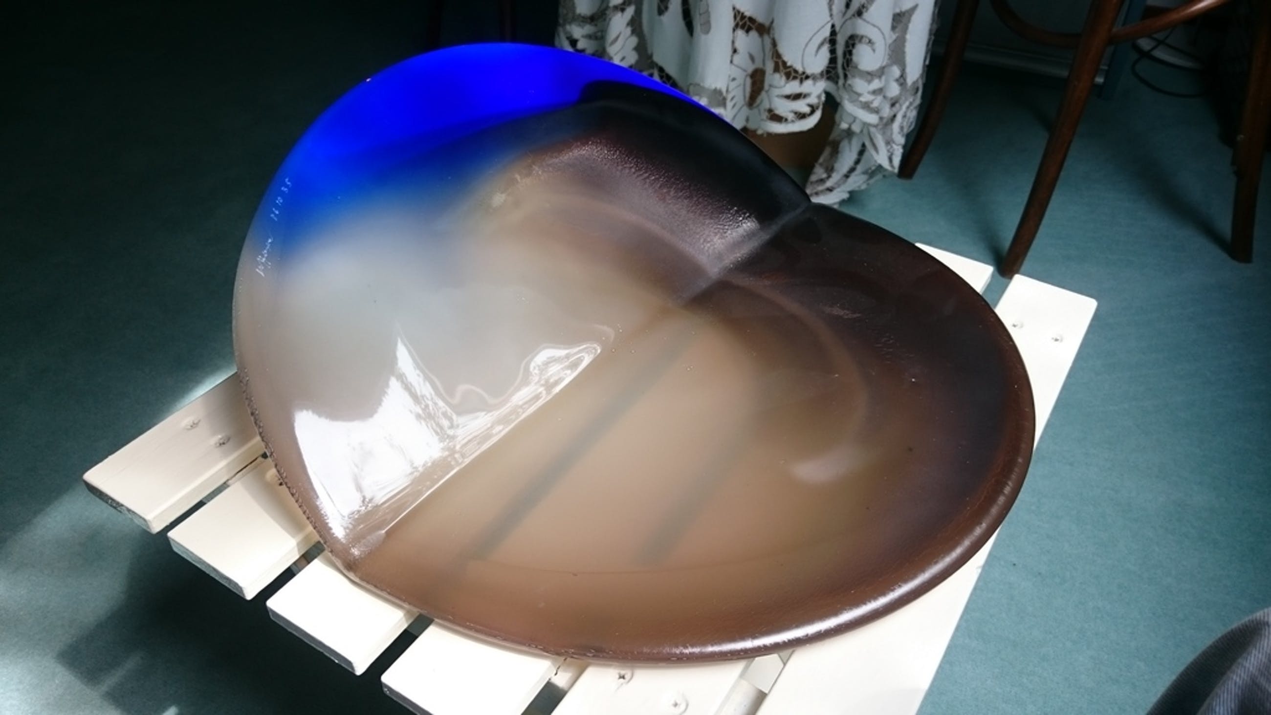 Half geknikte cirkelschaal, zwaar glas, diameter 42 cm